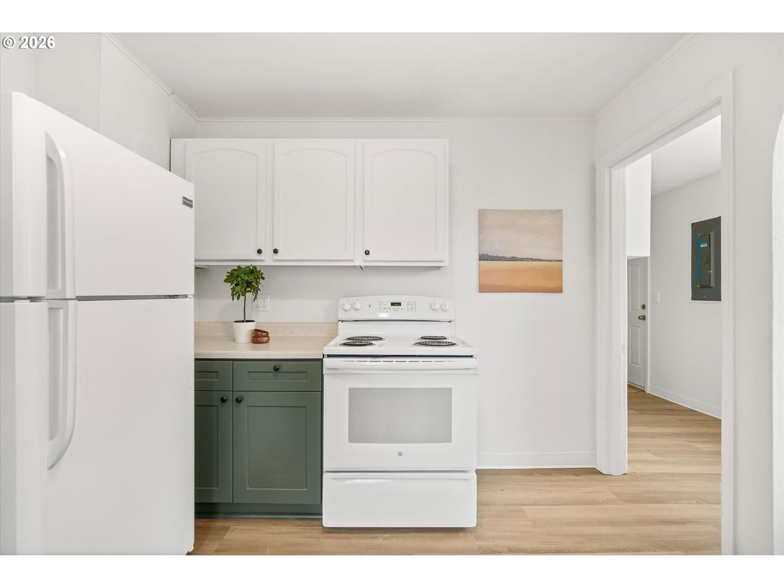 Tucked in the heart of SE Portland, this 1941 ranch is full of warmth, original character, and thoughtful updates. Fresh interior paint, flooring, and kitchen cabinets create a bright, inviting feel throughout, making it easy to move right in and make it your own.One level featuring three bedrooms and one bathroom, the layout lives comfortably. Outside, the oversized 7,400 sq ft lot offers plenty of space for gardening or entertaining. Along the side of the home is a detached garage and large driveway adding flexibility.Located close to Brentwood city park, Mt. Scott Community Center, and the charming Woodstock business district with cute shops, great food, coffee, and character that make SE Portland so loved! [Home Energy Score = 3. HES Report at https://rpt.greenbuildingregistry.com/hes/OR10246097]