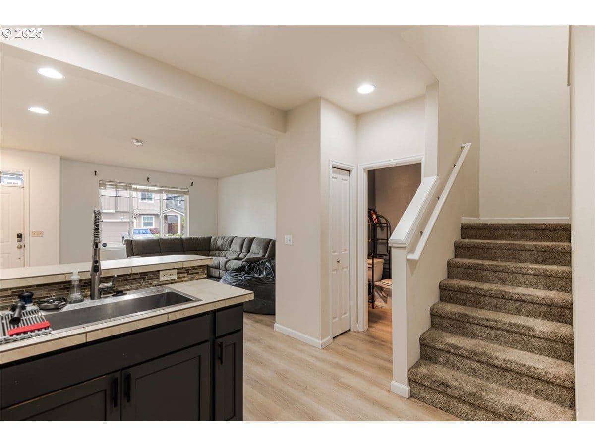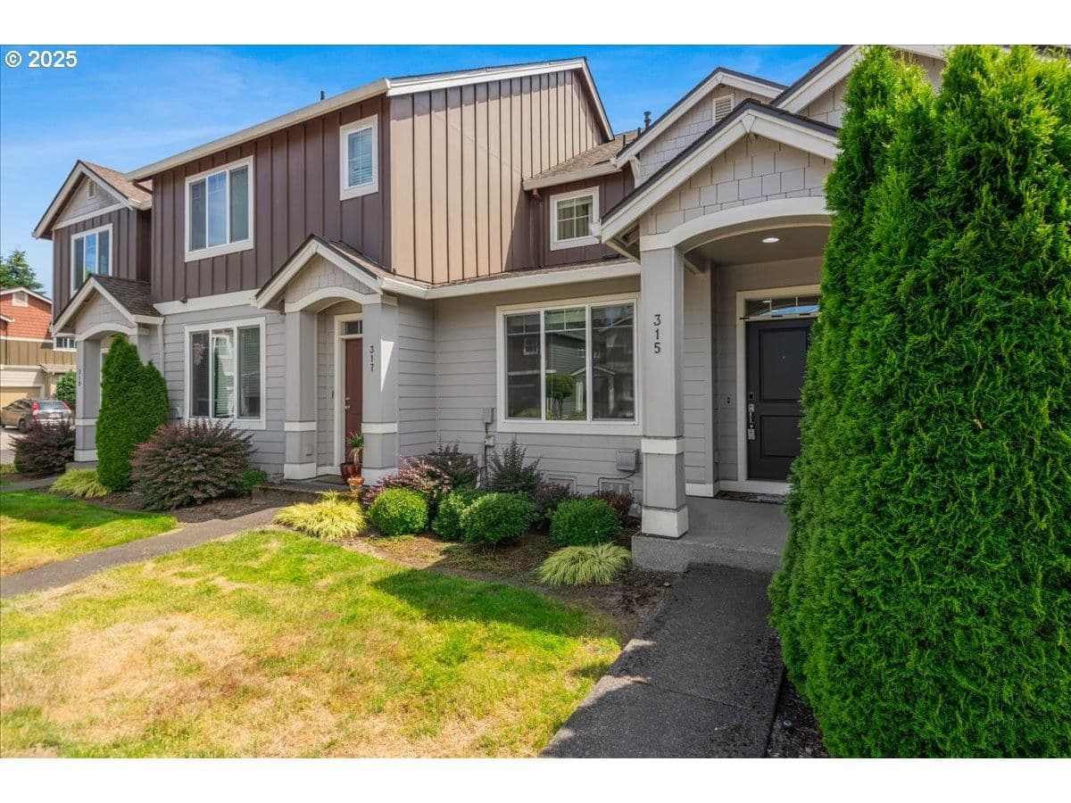 Welcome to this charming two-story townhome nestled in a quiet, well-kept neighborhood in the heart of Vancouver. Built in 2014, this 3-bedroom, 2.5-bath home offers 1,384 square feet of thoughtfully designed living space. The open-concept main level features high ceilings, durable laminate flooring, and a spacious living and dining area perfect for both relaxing and entertaining. The kitchen is equipped with tile countertops, an eat bar, pantry, and all major appliances, including a dishwasher, microwave, fridge, and range. Upstairs, you’ll find all three bedrooms, including a generous primary suite with walk-in closet and en-suite bath, along with a conveniently located laundry room. Enjoy year-round comfort with central heating and cooling, plus energy efficiency with a tankless water heater. The exterior offers low-maintenance landscaping with a sprinkler system, a covered front porch, and an attached two-car garage. Located just minutes from I-205, Vancouver Mall, shopping, restaurants, and local schools, this home also benefits from a monthly HOA that covers front yard landscaping and exterior maintenance. A perfect blend of comfort, convenience, and community. Don’t miss your opportunity to make this your next home!