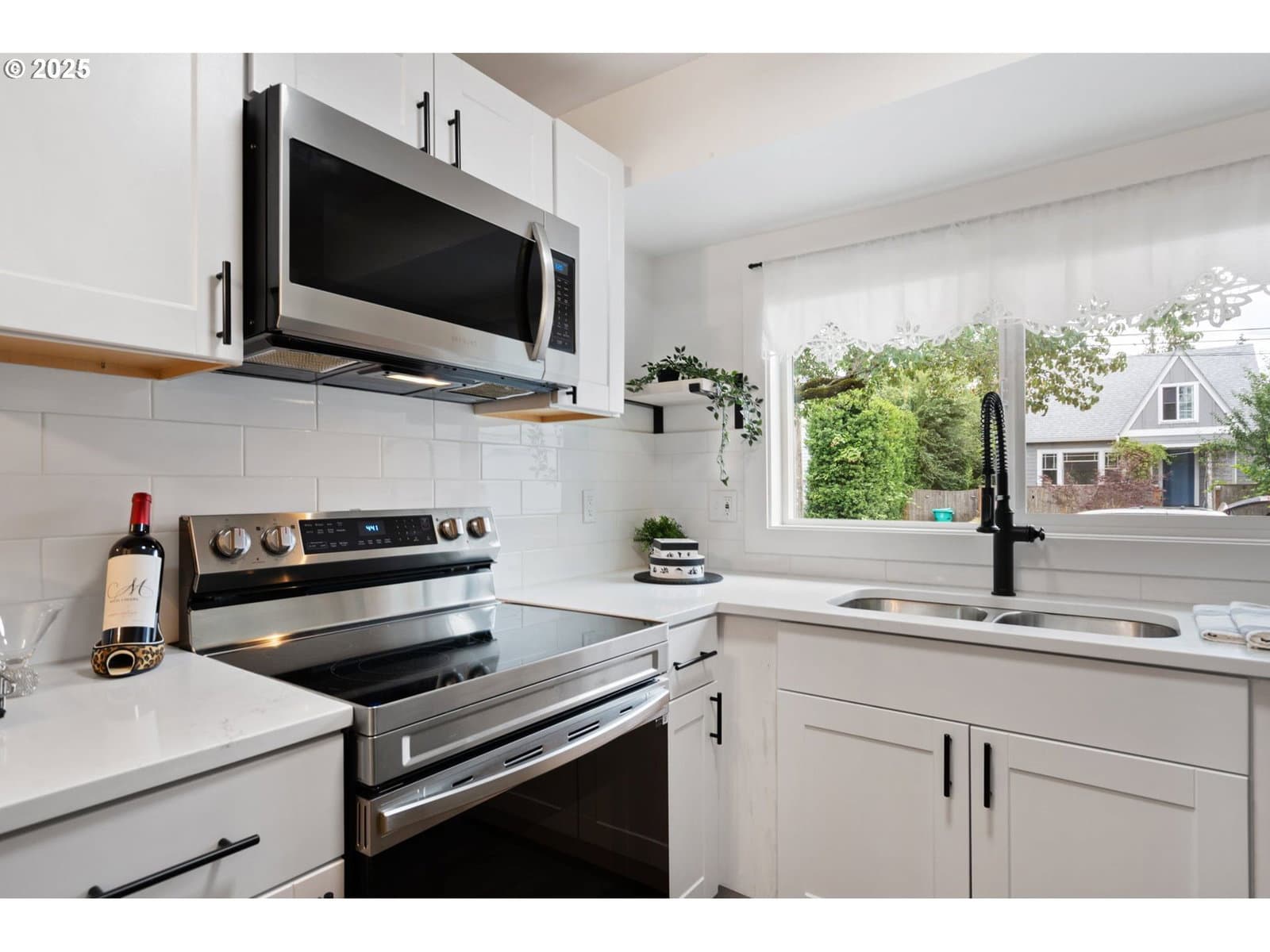 This Mid-century 1953 Ranch w/Full Lower level in Portland's FoPo (Foster-Powell) neighborhood was fully renovated in 2023 with loads of upgrades including new Roof/Gutters, Siding, Electrical Panel, Wiring, Gas Furnace & Hot Water Heater. Kitchen and two Full Bathrooms are fully and beautifully renovated! Fully fenced front yard & backyards ideal for pets and little humans. The very spacious back yard features a large detached covered patio for year-round outdoor enjoyment, a storage shed, gardening space and your very own apple tree! The renovated kitchen features beautiful granite slab countertops, tiled backsplash, stylish white shaker cabinetry, and stainless steel appliances. Lower level offers great open hangout space, Laundry Room, storage, and Bonus Room, and non-conforming 4th Bedroom or Office! Great potential to convert lower level to ADU/Separate Living area or Multi-generational use. Convenient location located just 3 blocks to Essex park with Tennis/Pickelball & Basketball courts, 11 blocks to Portland Pickles Baseball Games, FoPo commercial district eats and drinks(Pizza Otto & many more!), and 1 block to Eastport Plaza with Cinema, sushi, ramen, dim sum, and the newly opened Hong Phat Asian Supercenter & Food court! Loads of bonus space and ideal for multi-generational buyers and ADU possibilities. Great little neighborhood with tight community and annual Block Party! Don't let proximity to 82nd Avenue fool you, Home is 1 full block away and 82nd "activity" is very low-impact in this location! Check low crime rate stats online at ! Also, Portland's 82nd Avenue Improvement Project is currently in full-swing and the improvements to the 82nd Avenue Corridor are already obvious! Life change has forced the a sale...Seller's loss is your gain! Make it yours!!