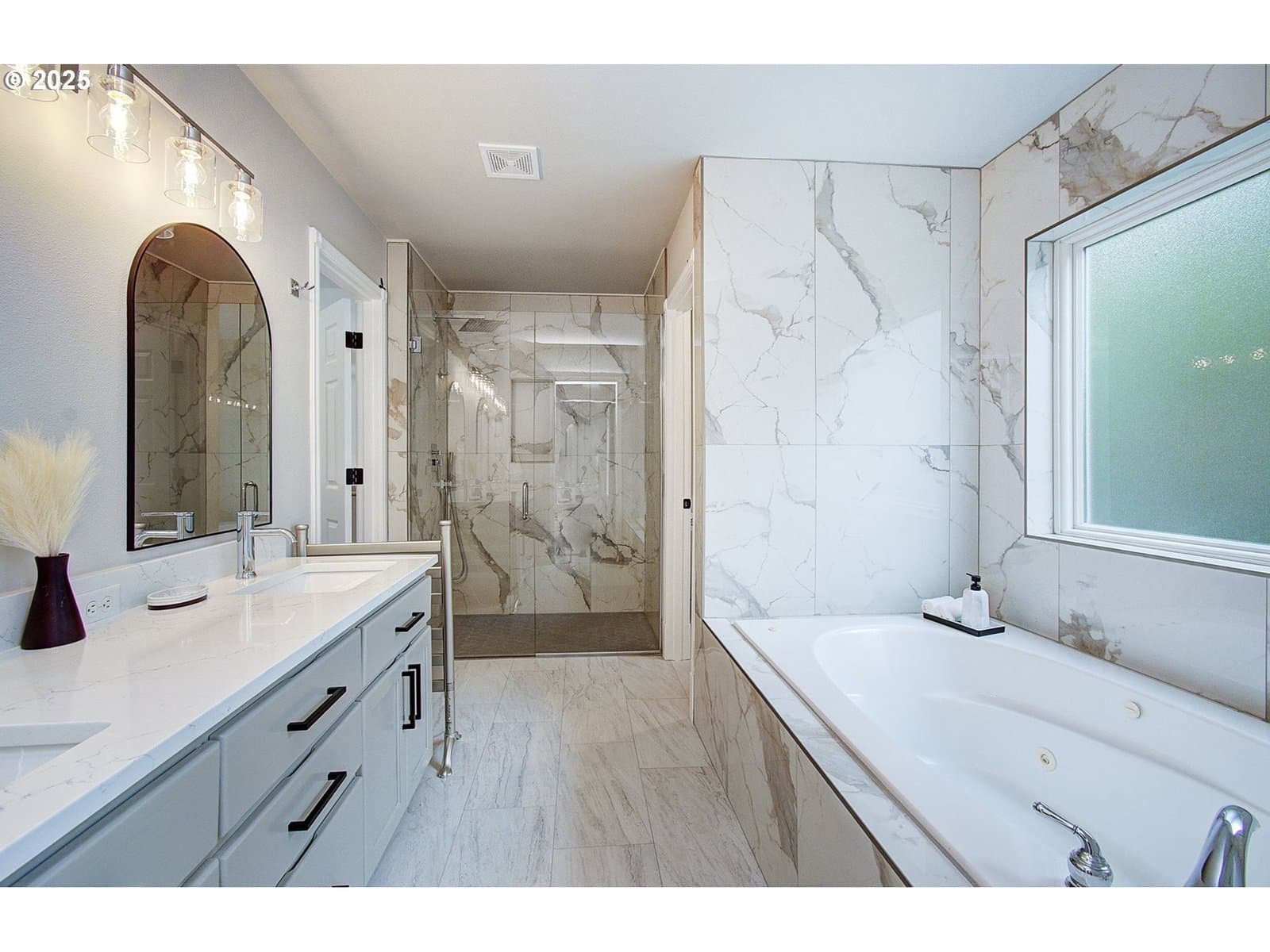 Make us the best offerAsk about potential sellers contribution. It’s that unmistakable feeling the moment you walk in, the quiet certainty that you’ve found the one that fits just right. Nestled in the heart of Salmon Creek’s long-cherished neighborhood, opportunities like this are rare. Every detail here has been updated with care, and the list of improvements is extensive and purposeful. Major upgrades include a new widened driveway and a no-step entry path for effortless access, perfect for children, grandparents, and guests alike. A new concrete walkway wraps around the home to the backyard, complemented by new fresh fencing and premium windows. Inside, a full remodel showcases premium finishes that balance elegance with everyday comfort. Both bathrooms are beautifully redone, with the primary featuring a spa-inspired, curbless shower and Jacuzzi tub. Throughout the home you’ll find new fixtures, countertops, flooring, carpet, central vacuum, and vaulted ceilings. The roof, exterior Hardie siding, and paint have been recently refreshed for years of worry-free living. Professionally designed landscaping includes zoned sprinklers, irrigation, and soft evening lighting, creating a tranquil outdoor retreat with a fire pit and plenty of room for a large shed or workshop. Inside, warm caramel-toned floors ground the single-level layout, while high ceilings and natural light open the space beautifully. The two-car garage includes an EV-charger outlet and flexible room for storage or conversion. Currently featuring three bedrooms, the layout easily allows for expansion for two additional rooms can fit inside, and two more within the garage offering excellent potential for an adult family home or multigenerational living. With no HOA or CC&Rs, possibilities here are wide open. Homes that combine this level of comfort, thoughtful design, and quiet luxury at this price point are rare; come see why this one stands apart. It’s not just a house-it’s a home, where life unfolds