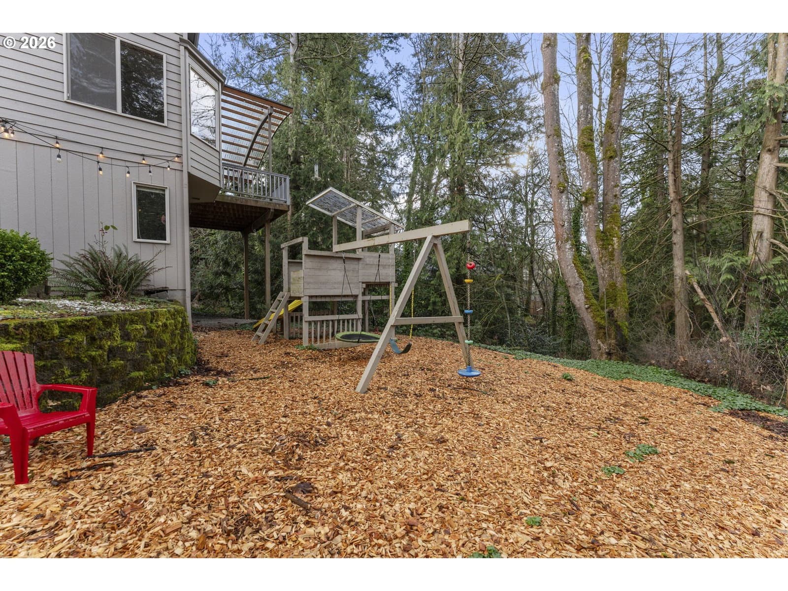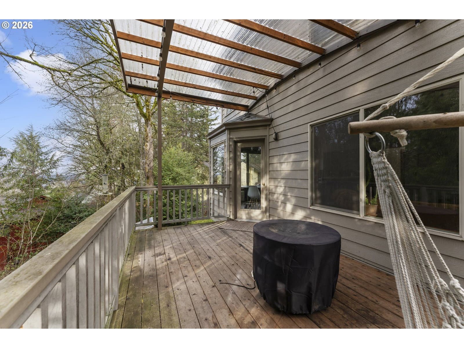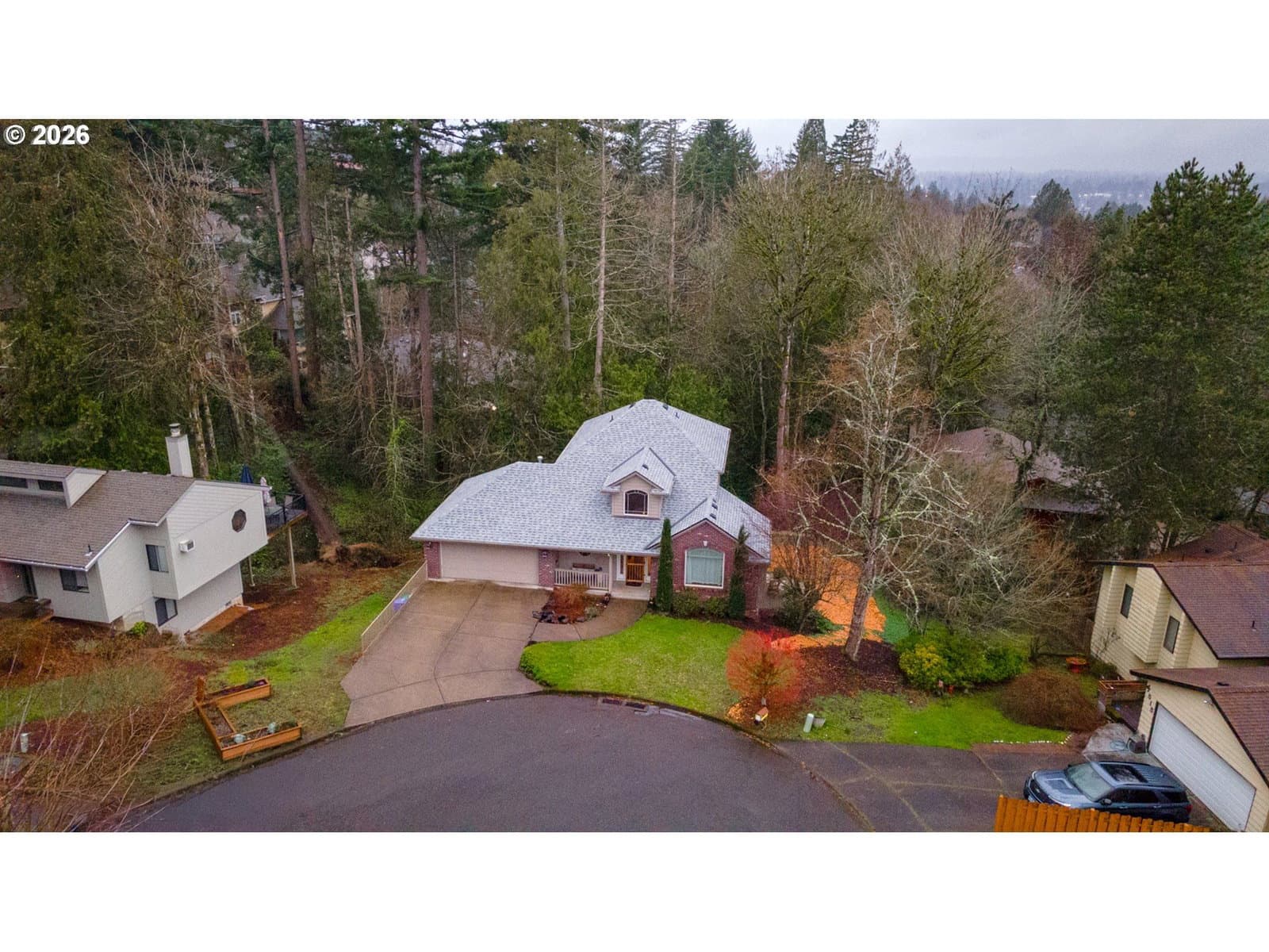 Tucked away on a quiet cul-de-sac, this warm and welcoming home offers true treehouse vibes. It is surrounded by mature trees and the soothing sounds of chirping birds. Large windows invite in abundant natural light and frame peaceful forest views from nearly every room. You’ll feel tucked away in nature, yet you’re just minutes from amenities, shopping, and dining. A grand entry greets you upon arrival, setting the tone for the warmth and charm found throughout. At the top of the stairs, the private primary suite offers a peaceful retreat featuring a large walk-in closet and an en suite bath, providing comfort and privacy above the main living areas. The kitchen is open and inviting, flowing seamlessly into the family room and dining area. Just off the kitchen, a covered walk-out deck overlooks the trees, an ideal spot for morning coffee or evening relaxation. Designed with flexibility in mind, the home offers 3 bedrooms, with an easy option to create a 4th on the main floor with its own cozy gas fireplace. With three separate living rooms in total, the layout provides versatility for entertaining, working from home, creating a playroom, or simply giving everyone space to spread out and relax. The walk-out basement extends the treehouse feel. It opens onto a serene paver brick patio that feels wonderfully private. This level includes two bedrooms, a full bathroom, and an additional living room. It is an ideal setup for guests, multigenerational living, or a private lower-level retreat. Don't miss the nearly 450 sq ft basement workshop, it is perfect for an art studio, woodshop, or hobby area. It could also be finished to add a second kitchen or separate entrance apartment. Lovingly maintained and full of charm, this home blends natural beauty, light-filled spaces, and a highly functional floor plan. It offers the rare opportunity to live among the trees while staying close to everything you need. Check out the floor plan in the photos. Brand new roof! [Home Energy Score = 7. HES Report at https://rpt.greenbuildingregistry.com/hes/OR10244106]