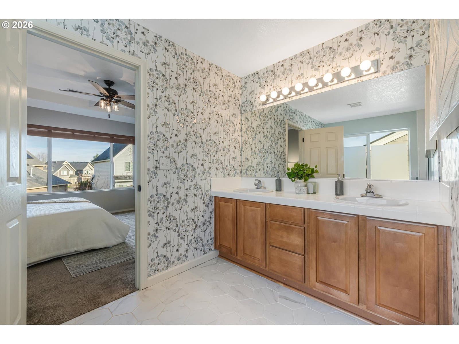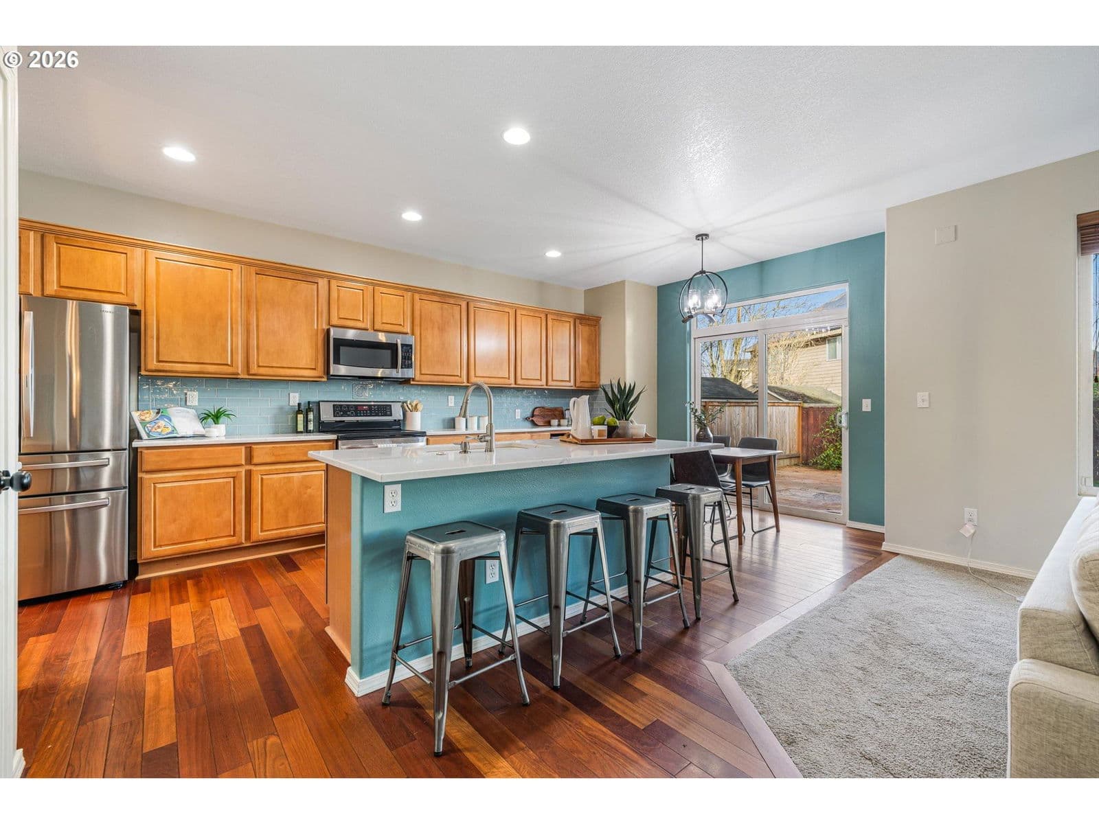 Welcome home to this beautifully updated residence in a highly desirable Sherwood neighborhood! Offering over 2,300 square feet of thoughtfully designed living space, this home features stunning hardwood floors and a functional floor plan ideal for today’s lifestyle. The main level includes a versatile bedroom that can easily serve as a home office or guest space. The kitchen is well-appointed with updated quartz countertops and stainless steel appliances, opening to comfortable living and dining areas perfect for everyday living and entertaining.Upstairs, the spacious primary suite is a true retreat with a tastefully updated ensuite bath featuring double sinks, a relaxing garden tub, and a walk-in tile shower. Additional updates include new carpet and fresh interior paint throughout. Step outside to a private backyard designed for entertaining, offering the perfect space to relax or gather with friends. This move-in-ready home combines comfort, style, and location...don’t miss this exceptional opportunity!