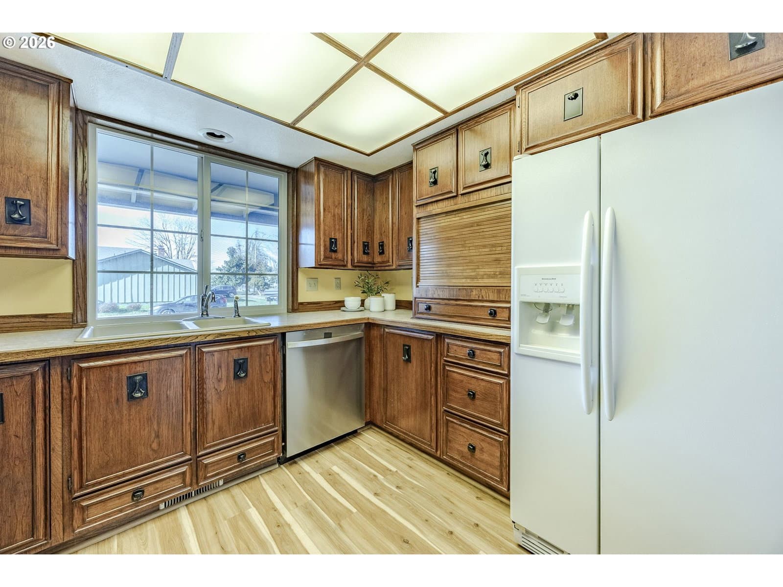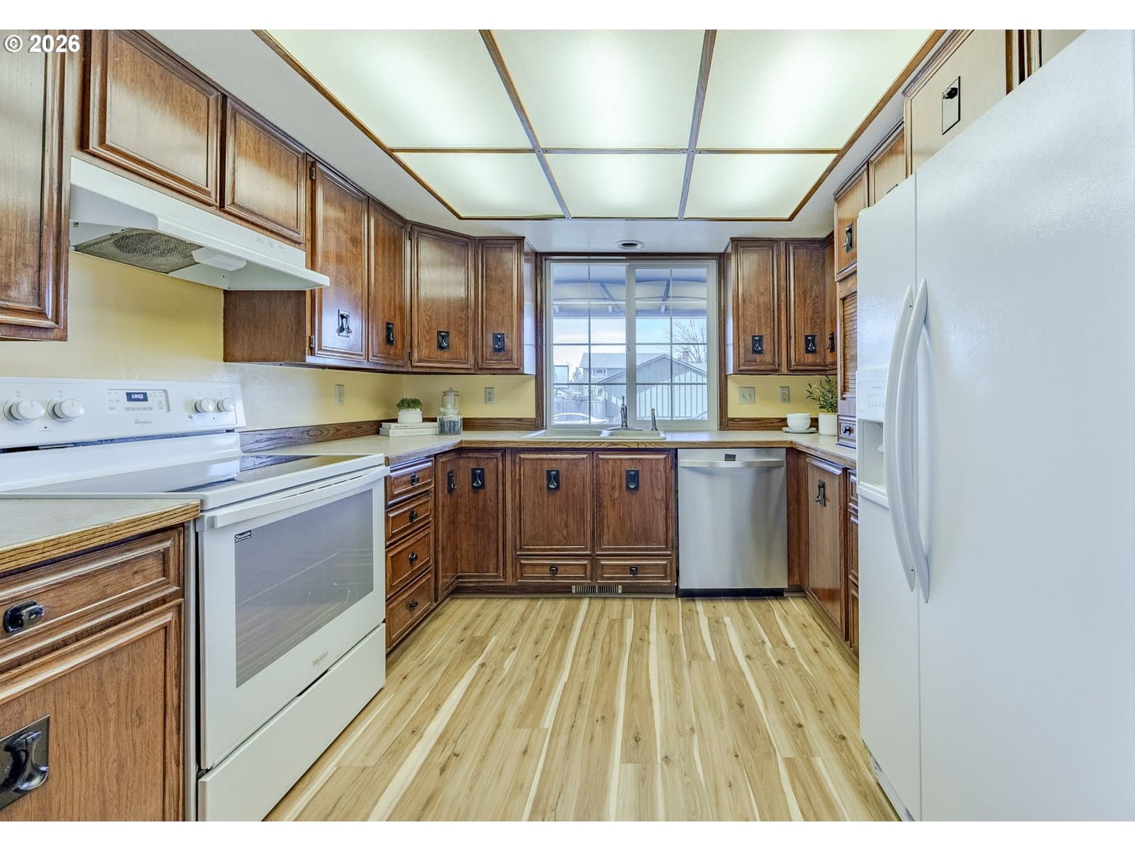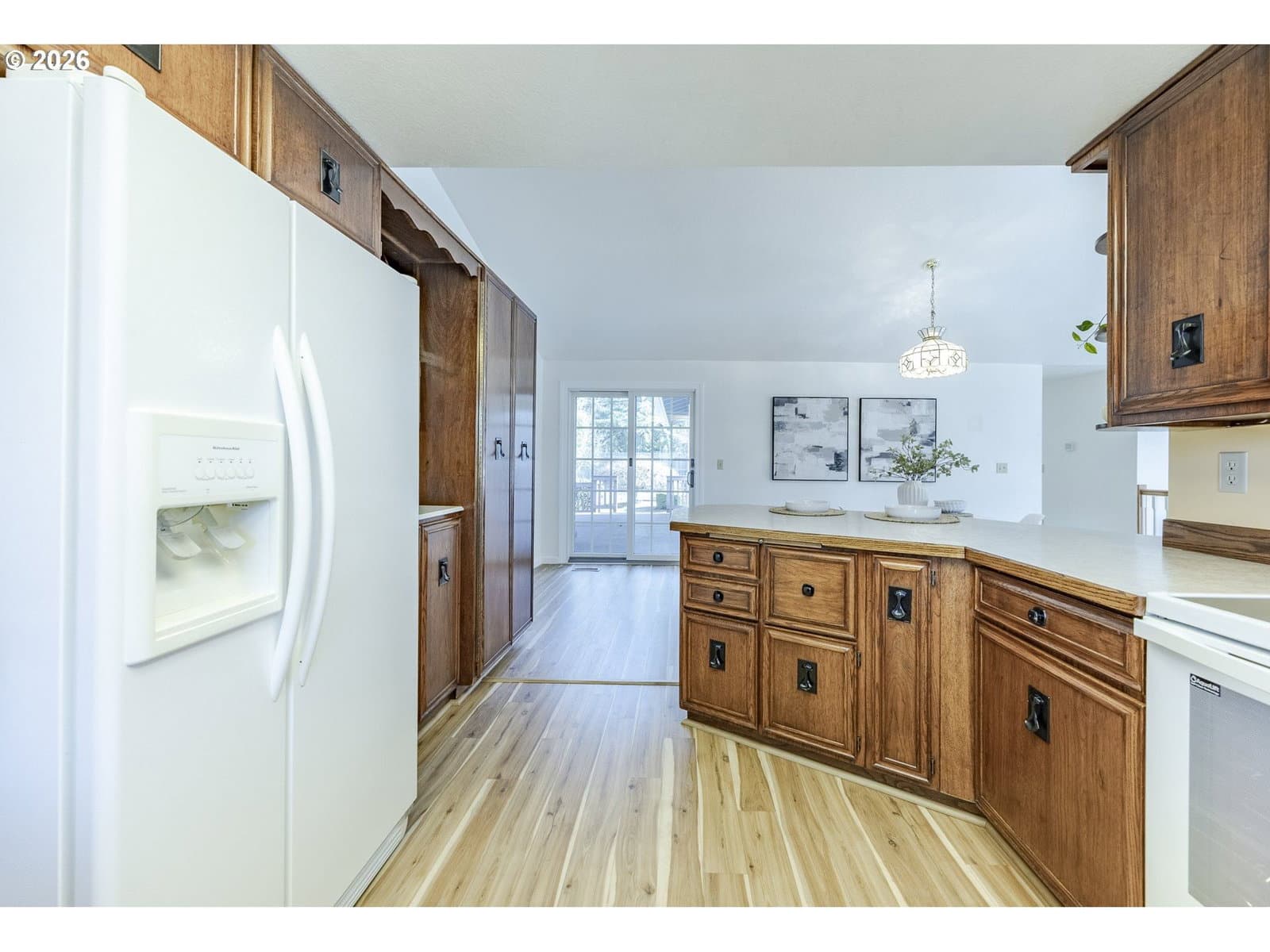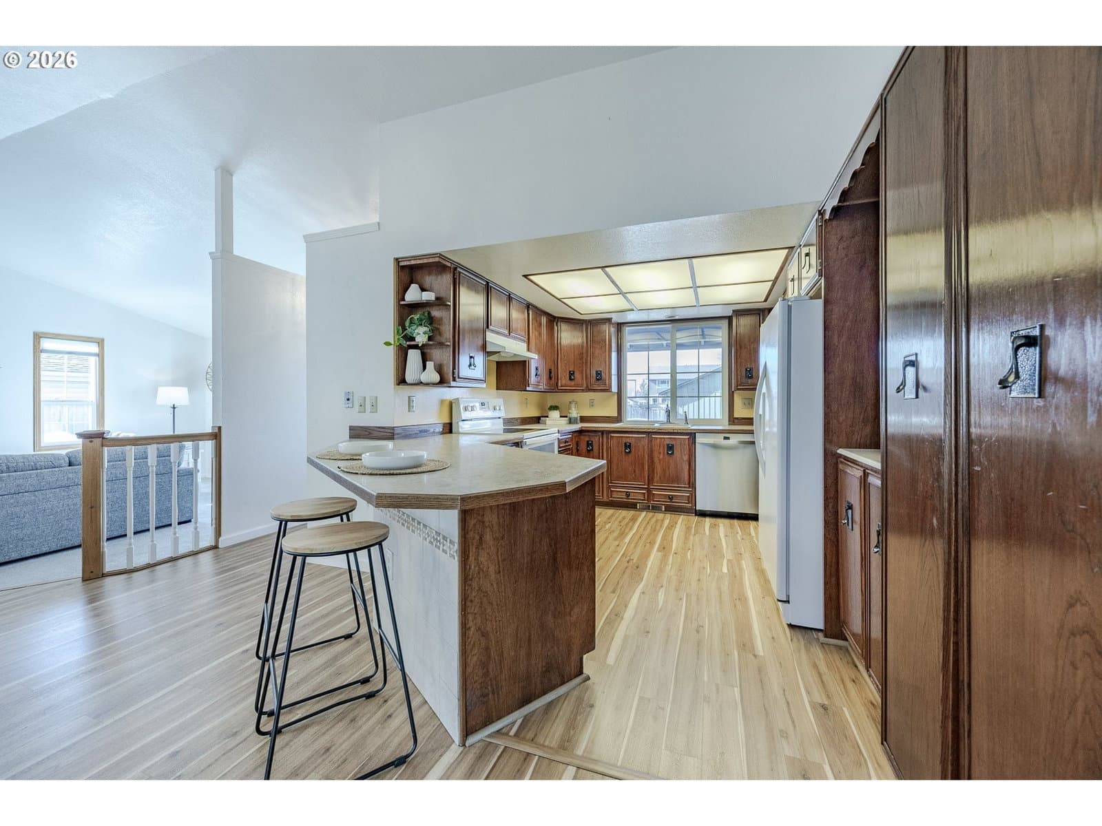 Welcome to a charming 3-bedroom, 2-bathroom home in a great location. This inviting single-level residence offers a spacious and functional layout, perfect for comfortable living. Step inside to discover a bright family room featuring fireplace, bay window and vaulted ceiling perfect spot to relax and a separate dining area with a sliding door that leads to the private deck and oversized, fully fenced backyard ideal for entertaining. The kitchen has an eat at bar and plenty of storage. A dedicated laundry room with a sink and exterior door adds convenience, and the attached two-car garage offers ample storage, including pull-down attic access. Don’t miss the primary suite, two additional bedrooms and full bathroom. Located in a quiet desirable neighborhood - close to schools, shops and restaurants, this home provides both tranquility and accessibility. Don't miss this wonderful opportunity to make this home your own. Schedule your showing today!