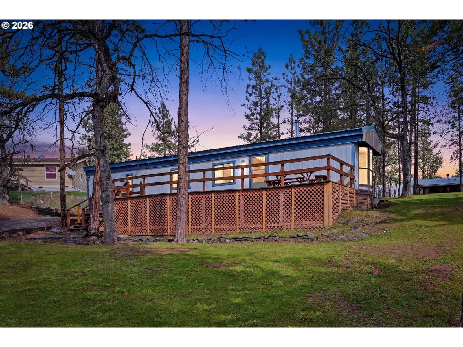 Private and comfortable home near Pine Hollow Reservoir, located a short distance from the lake. Set on a private, treed, and secluded lot with inviting outdoor spaces, this property offers the perfect blend of recreation and peaceful country living.Originally a 1986 single wide manufactured home, the home features a permitted 14 × 44 stick-built addition that adds beautiful extra living space with vaulted ceilings and abundant natural light. The overall floor plan offers a comfortable interior with plenty of storage throughout.Inside, the living room features a cozy fireplace and a slider leading to a second, private deck, perfect for quiet moments, relaxing alone, or reading a book. The spacious kitchen offers generous storage, a giant eating bar, and a separate dining room. The vaulted primary suite adds to the home’s comfortable layout.One of the standout features is the huge front deck with a peek-a-boo view of Pine Hollow Reservoir. This expansive outdoor space is perfect for enjoying summer days and evenings. There is room for a full outdoor seating area, dining space, and even a hammock. Picture BBQs, entertaining friends, or simply relaxing for hours while taking in the peaceful surroundings.Recent updates include a new 1000-gallon concrete septic tank (2020) and new water heater (2019).Beyond the lake, the area offers endless outdoor recreation, including rafting the Deschutes River in nearby Maupin, along with hunting, hiking, fishing, kayaking, and paddleboarding throughout the surrounding area. This property includes extra parking just above the main driveway, along the road leading to the back exit.