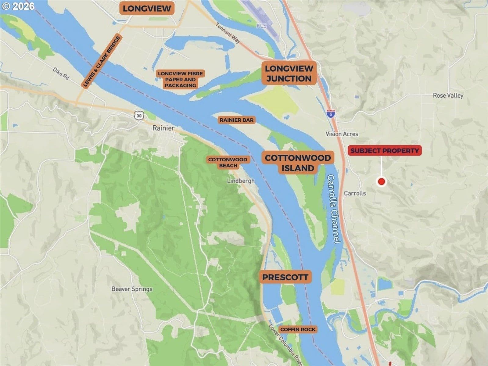 Discover a luxury collection of view parcels overlooking the Columbia River, the Lewis and Clark Bridge, and miles of scenic, tree-covered hillsides spanning both Washington and Oregon. This offering includes six (6) parcels ranging from 2–3 acres each; a 6-acre parcel; and, a 21-acre parcel with potential to be further divided into two lots. Estimates in hand for both water wells and power, along with a passing perc test. This gated enclave offers a peaceful, countryside feel while maintaining excellent accessibility & quick access to I-5 north or south — just under 15 minutes to Longview and 45 minutes to Portland. You can also see Prescott Bar, Cottonwood Island, Carrol's Channel, & Longview Fiber and Paper Packaging from the property. Owner financing is available, and parcels may be purchased individually or as a package — offering flexibility to buy the entire collection or select the site that best fits your vision.