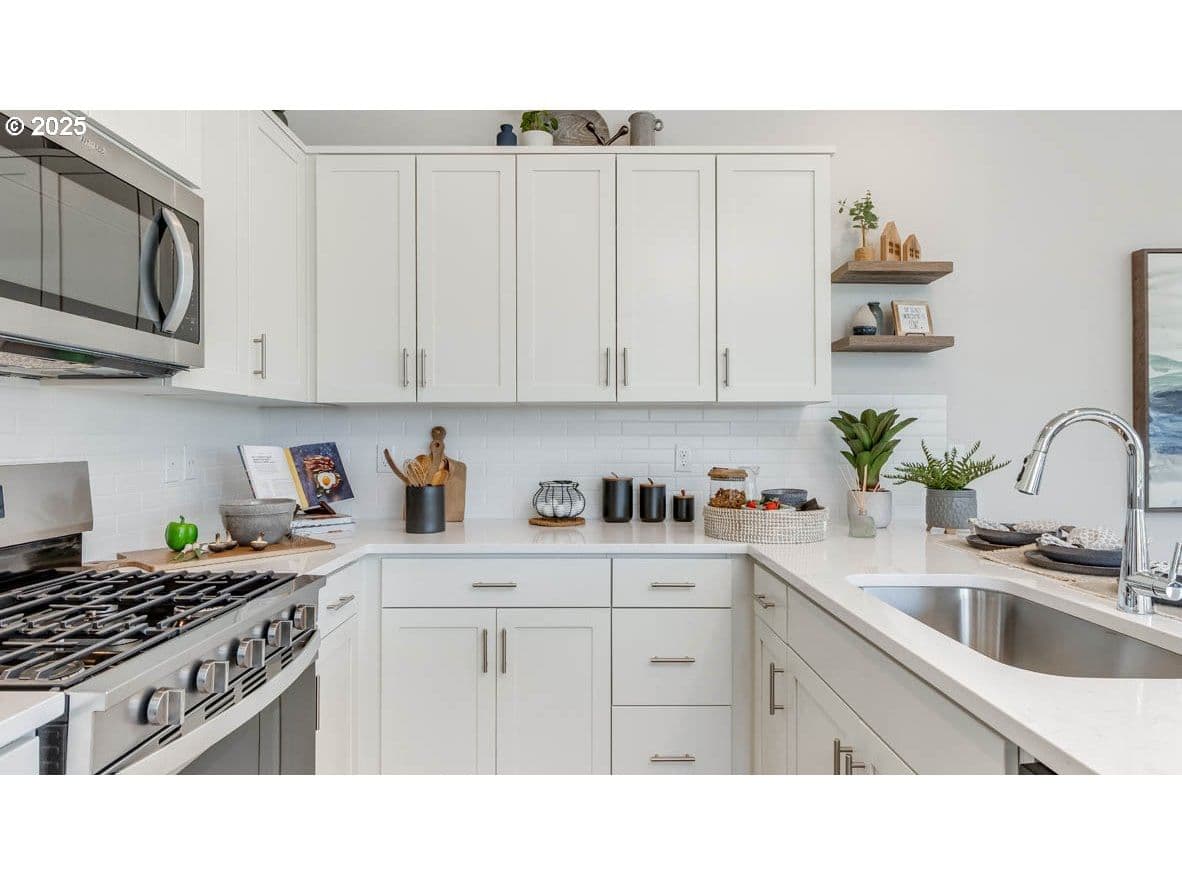 RED TAG SALE is BACK!!! New townhome-style construction in Hillsboro with fenced backyard backing greenspace! The Chinook floor plan at Gordon Creek Pointe offers 1,375 square feet of smart living space with 3 bedrooms, 2.5 bathrooms, and an attached garage. The open concept main floor features a bright great room and dining area with a thoughtfully designed kitchen that includes a peninsula, shaker cabinetry, solid surface countertops, and stainless-steel appliances. Upstairs, the spacious primary suite includes a walk-in closet and en suite bath with walk-in shower. Two additional bedrooms, a full bath, laundry room, and hallway storage complete the upper level. Receive a closing cost credit with use of builder’s preferred lender, reach out for more details. Located by Hillsboro’s tech corridor with top employers like Intel and Kaiser, and just minutes from Reed's Crossing Town Center and an easy drive to downtown Portland and PDX airport, this home is perfectly situated. Be part of the inviting community at Gordon Creek Pointe! Photos are representative of plan only and finishes may vary as built. [Home Energy Score = 10. HES Report at https://rpt.greenbuildingregistry.com/hes/OR10242773]