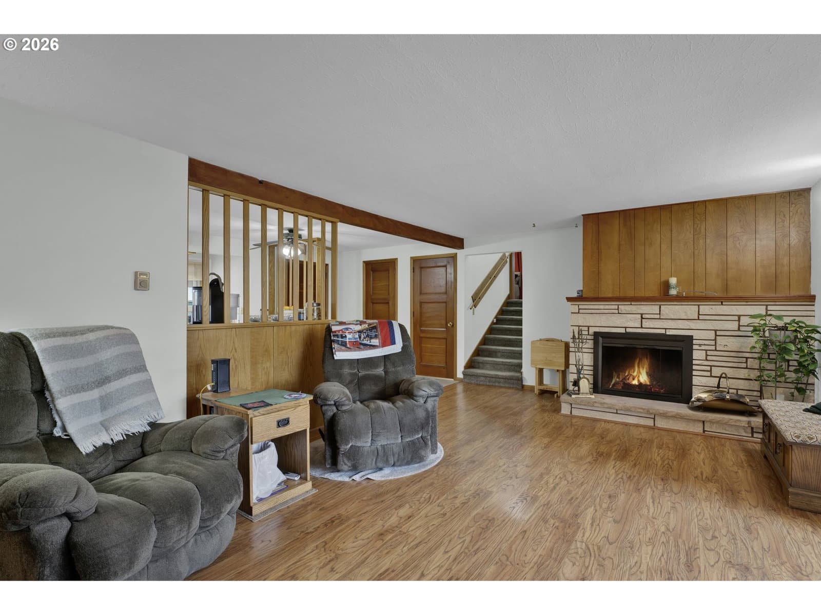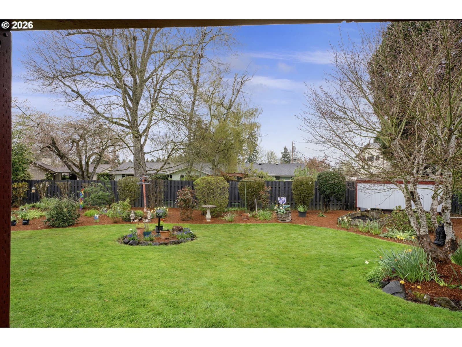 Welcome home to this beautifully maintained and thoughtfully designed property, where comfort, charm, and functionality come together in perfect balance. Situated close to shopping, restaurants & more, this inviting residence offers exceptional curb appeal with its manicured landscaping, lush green lawn, hardi-plank siding, and welcoming covered front porch Step inside the enclosed entry and you’re greeted by a spacious living area featuring abundant natural light, built-ins, china cabinets, beamed ceilings, a cozy fireplace.The sunroom, surrounded by expansive windows and natural wood accents, creates a light-filled retreat where you can enjoy the beauty of every season from the comfort of indoors.The kitchen features ample cabinetry, pull out drawers, pantry cabinets, generous counter space, and a convenient breakfast bar—perfect for casual meals or hosting guests with an adjacent dining space including a charming breakfast nook with views of the manicured lawn. Throughout the home, you’ll find four well-sized bedrooms that offer large closets with organizers, ceiling fans, offering comfort and versatility. The modern bathrooms are clean and functional, with thoughtful storage and layout that support busy lifestyles.One of the standout features of this home is the additional living space, complete with its own cozy fireplace, separate entrance from the yard, and flexible layout—ideal for a second living room, hobby area, or multi-generational living.Step outside into a backyard that truly feels like a private oasis. Beautifully landscaped w/ mature trees, tool shed, wood shed, garden beds, and open lawn space, it’s perfect for entertaining, gardening, or simply enjoying the outdoors. The covered patio provides year-round usability, making it easy to host gatherings or enjoy quiet evenings regardless of the season. The gated side allows for more parking space, and possible parking for a small boat or RV. This home is move in ready and waiting for you!