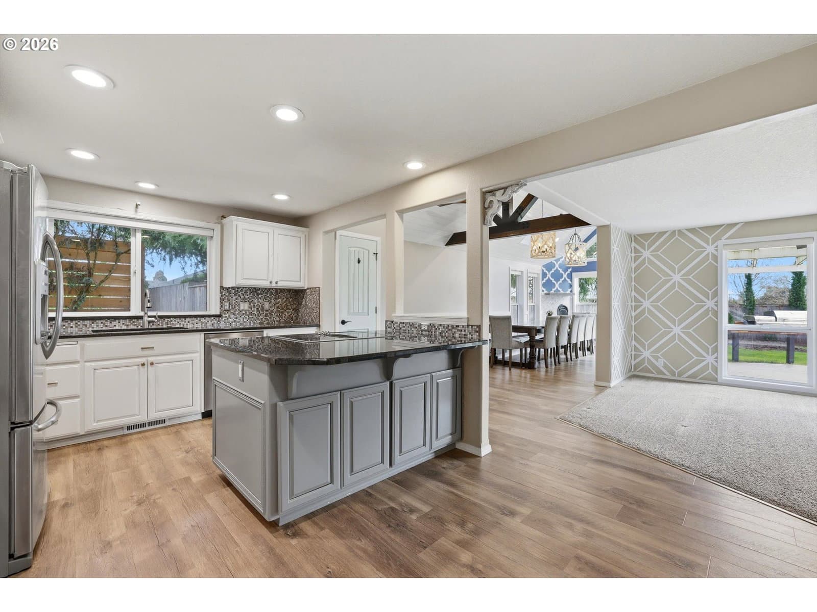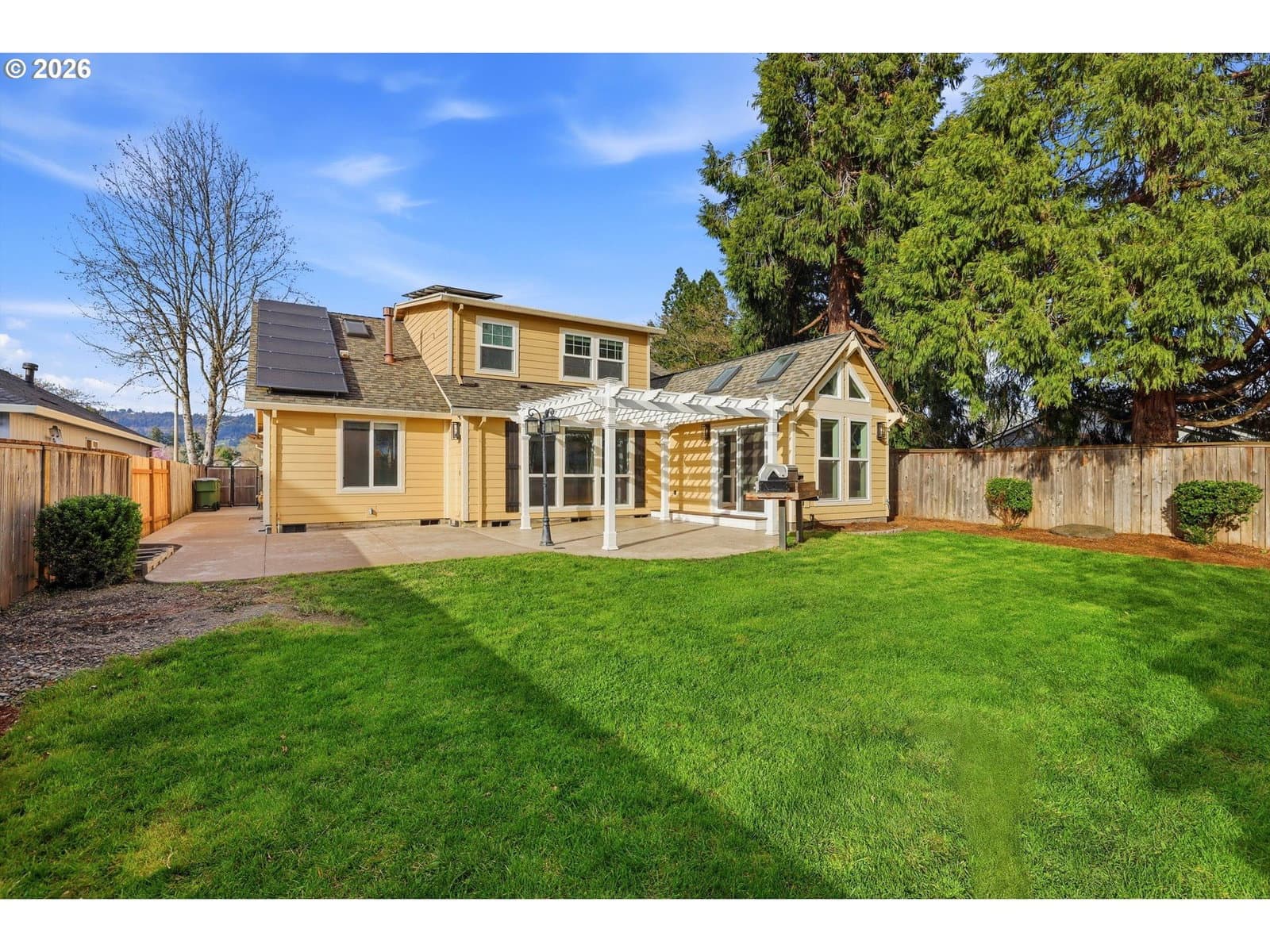 Welcome to Crestview! This exceptional custom home in north Newberg offers incredible flexibility and thoughtful design throughout. At the heart of the home, the kitchen shines with beautiful cabinetry, an eat-at bar, pantry, and stainless steel appliances—perfectly open to both the dining and living spaces. The dining room is truly something special, designed for long meals, meaningful gatherings, and everyday moments together. Just beyond, the cozy living room creates an inviting space to relax and unwind. The main-level primary suite features vaulted ceilings and an updated bathroom with tile floors, a tiled shower, and a walk-in closet. Two additional bedrooms on the main level provide comfort and convenience, offering a total of three bedrooms on the main floor. Upstairs, the possibilities open wide. Whether it becomes a media room, creative space, private office, or even a separate living area, this level adapts to your needs. With its own stunning bathroom, it’s easy to imagine transforming it into a peaceful primary suite or a space for multi-generational living. Step outside to enjoy the backyard, complete with a large stamped concrete patio, built-in barbecue, and a 12x10 shed—ideal for entertaining or relaxing outdoors.Additional features include a whole-house battery and surge protector, CAT5 and coax wiring throughout, an electric vehicle charger, and owned solar panels.