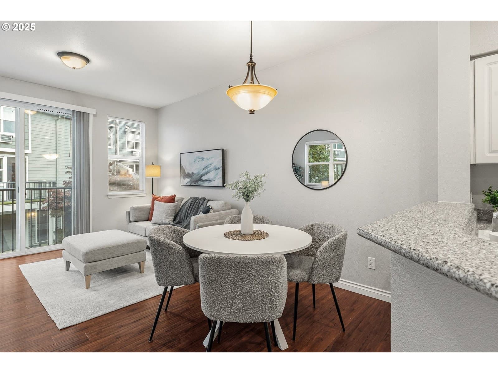 Experience vibrant city living in this modern townhouse-style condo perfectly positioned about a mile east of Downtown Vancouver in the Columbia Way neighborhood. It is only a block from restaurants, businesses, a coffee shop and a bike/walking trail along the river. Condo amenities include a pool, hot tub, workout room and a party room. This home offers an unbeatable location where everything you need is just a short stroll away. The open-concept great room is filled with natural light, featuring a stylish kitchen, dining area and an inviting living room with a Juliette balcony. The private balcony off of the kitchen extends your living space outdoors, perfect for morning coffee or evening sunsets. The spacious primary suite boasts vaulted ceilings and a walk-in closet. A full bathroom and convenient laundry finish off the top floor. A tuck under one car garage adds extra storage and ease of access. Combining design, everyday comfort and an incredible neighborhood, this condo offers the ultimate opportunity to live, work, and play in one of Vancouver’s most desirable areas.