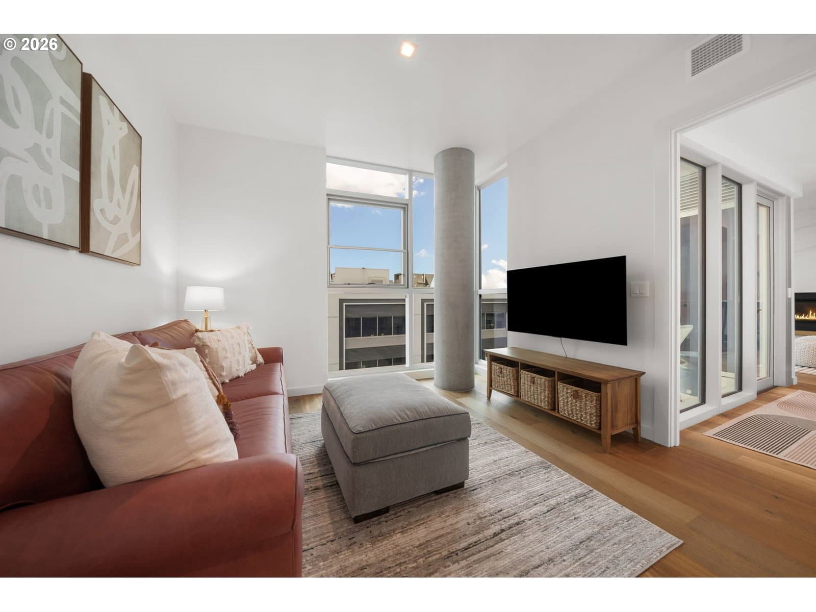 Seize a rare opportunity to own this exquisite two-bedroom "home in the sky," the first of its kind to become available at the Vancouver Waterfront in over three years. As one of only two residences with this highly sought-after floor plan — this condo sits perfectly just below the Penthouses and features the same elite finishes, including European engineered hardwood floors, Miele refrigerator and gas range, gas fireplace and premium Cambria quartz countertops. Beyond the stunning interior with integrated guest-suite with office nook, you will enjoy a resort lifestyle watching sunsets and passing boats while being pampered by the concierge and services of the attached Hotel Indigo. This secured building offers total exclusivity with a private rooftop sky lounge, fitness center, golf simulator and an EV-ready parking space. Additional features include independent HVAC and exterior-vented range hoods which ensure your environment remains as fresh as the river breeze. Life here is as effortless as it is luxurious, with world-class wineries, restaurants, and the scenic Columbia River trail just steps from your door. Perhaps most enticing of all, this immaculate residence benefits from a total property tax exemption until 2031! These are the only condos you can OWN at the Waterfront. This home has it all - lock and go lifestyle, premium finishes, location and scarcity of inventory (only 40 condos built)! Schedule a private tour today!