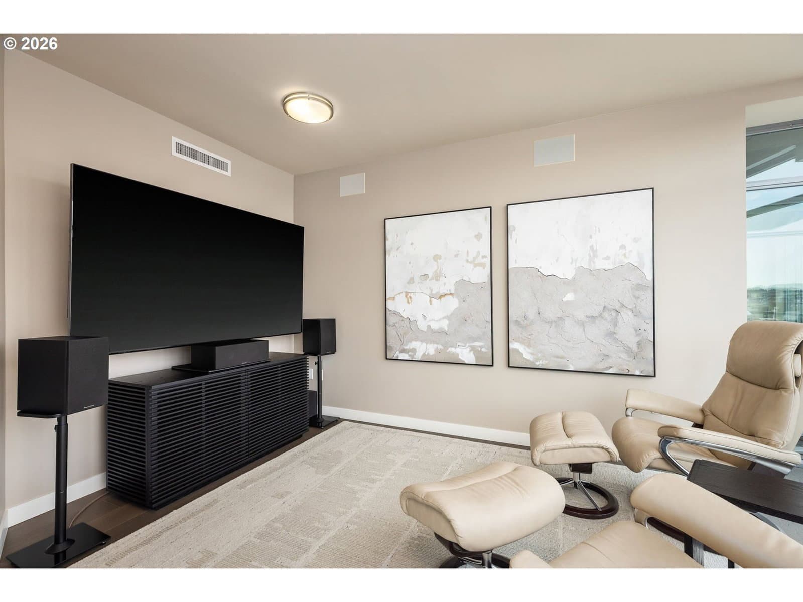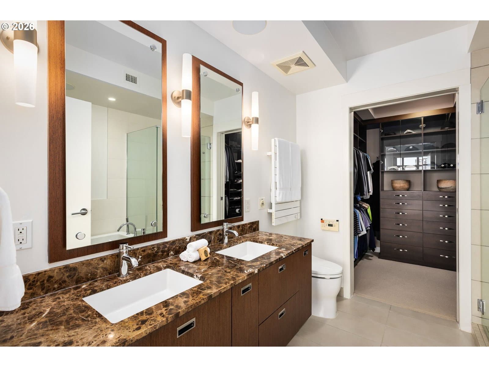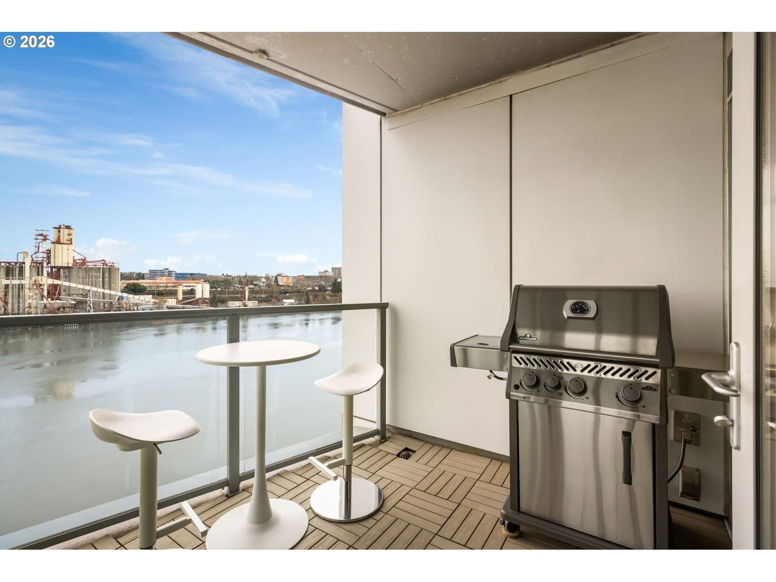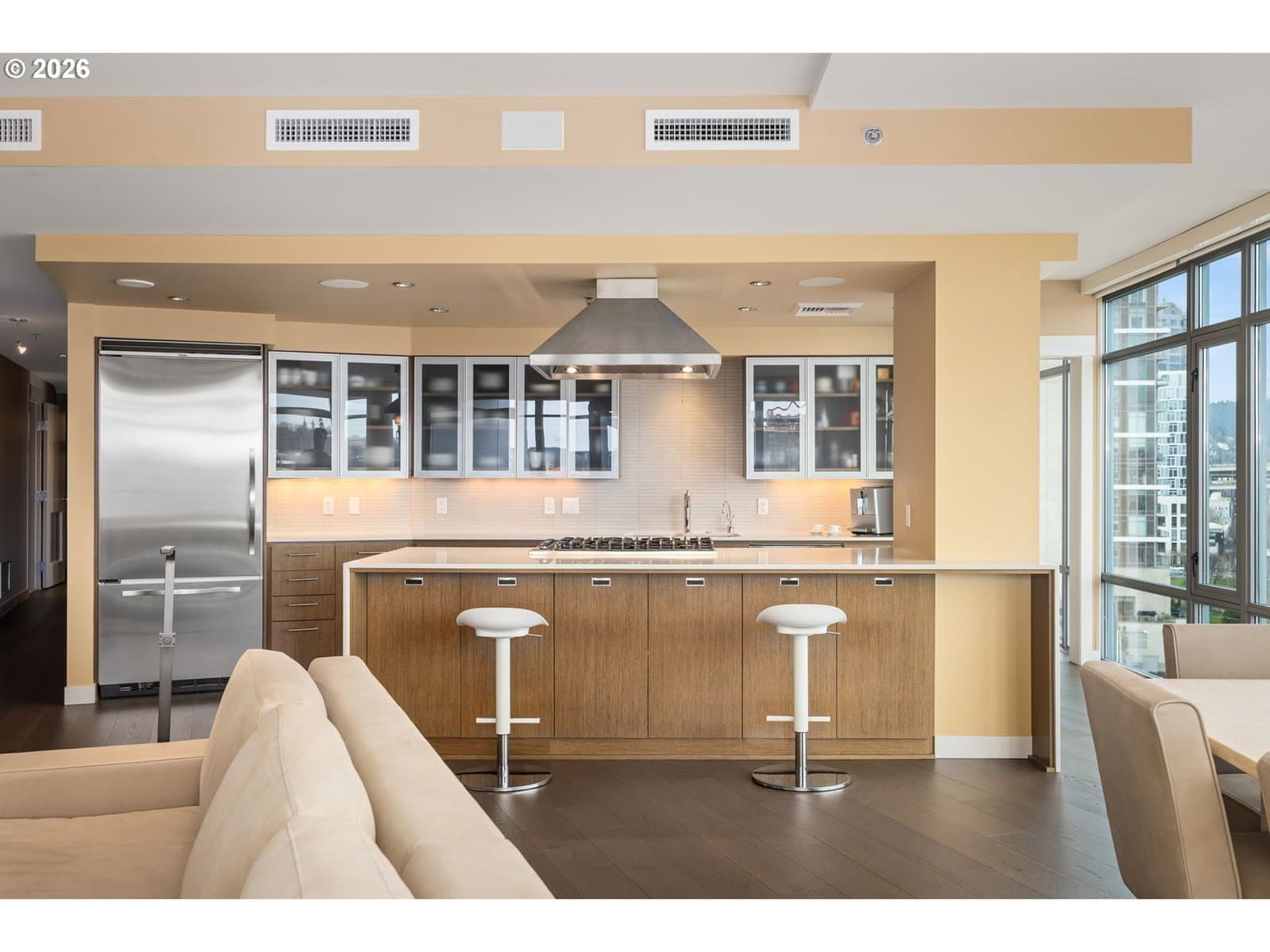 Effortless Luxury Meets Willamette River Views. Experience the pinnacle of one-level waterfront living in this completely reimagined Waterfront Pearl Penthouse. Recently transformed with meticulous attention to detail, this residence features state-of-the-art electronic solar shades, premium pre-engineered hardwood flooring, and designer finishes throughout—creating a sophisticated sanctuary designed for the modern lock-and-leave lifestyle. Floor-to-ceiling windows frame panoramic views of the Portland Skyline and Willamette River, while the open-concept living space flows seamlessly to two private terraces facing northwest and east. The chef's kitchen showcases Viking stainless steel appliances and an integrated wine cooler, perfect for entertaining or quiet evenings at home. Retreat to dual ensuite bedrooms, each appointed with custom closets and spa-inspired baths. The versatile media room offers flexibility as a home office, guest space, or private lounge—all with captivating river views. Worry-free living features 24/7 concierge service, a private fitness center with a sauna, secure side-by-side parking with EV charging, and climate-controlled storage. Steps from Pearl District galleries, acclaimed restaurants, and riverside trails, you are positioned at the heart of Portland's most coveted neighborhood. The Waterfront Pearl is more than a home, it is a "Lifestyle Refined".