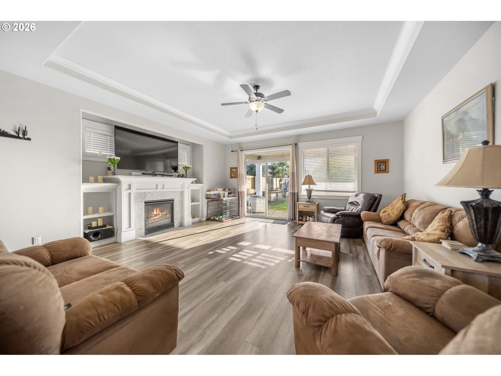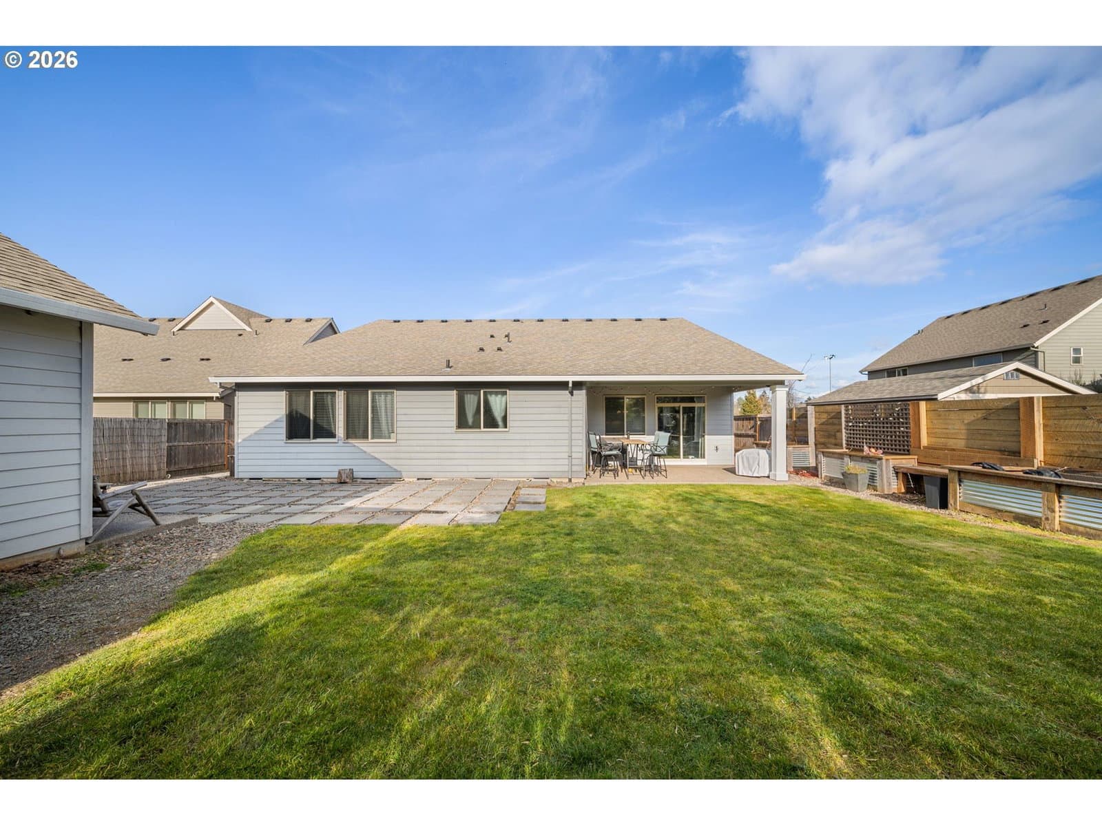 Step inside a home that truly has it all. This impeccably maintained almost 2,400 sq ft one-level ranch home offers the perfect blend of comfort, style, and flexibility to fit the way you live. With 4 bedrooms or the option of 3 bedrooms plus an office, playroom, or bonus space, you can easily tailor the layout to meet your needs, whether you're working from home, hosting guests, or creating the perfect hobby space.The open-concept design welcomes you with spacious living areas ideal for everyday living and entertaining. At the heart of the home is a gourmet kitchen featuring beautiful quartz countertops, a large island, custom cabinetry, gas cooktop, stainless steel appliances, and a walk-in pantry. The generous dining area flows seamlessly into the great room, where built-in bookcases frame a stunning custom tile-faced gas fireplace, creating a warm and inviting atmosphere. From here, step out to the covered patio, making indoor-outdoor living effortless.The private primary suite, located at the back of the home, offers a relaxing retreat with double sinks, a soaking tub, walk-in tile shower, and an oversized walk-in closet. Two additional bedrooms feature closet organizers, a second bathroom and a lot of storage.Thoughtful upgrades throughout the home include LVP flooring, elegant wainscoting, and high ceilings that enhance the home’s bright and open feel. There is a laundry room with cabinets and a folding table. The oversized 3-car garage, complemented by a large driveway with plenty of room for vehicles, guests, or recreational toys. Step outside to a spacious, fully fenced backyard with mature landscaping, a sprinkler system, planter boxes with drip system, perfect for gardening or relaxing outdoors. And for those needing extra space, the property also features a fully permitted 24' x 26' shop or man cave, complete with 100 amp power supply and abundant storage—ideal for projects, hobbies, or additional workspace. Open house Saturday the 7th from 1 to 3 pm