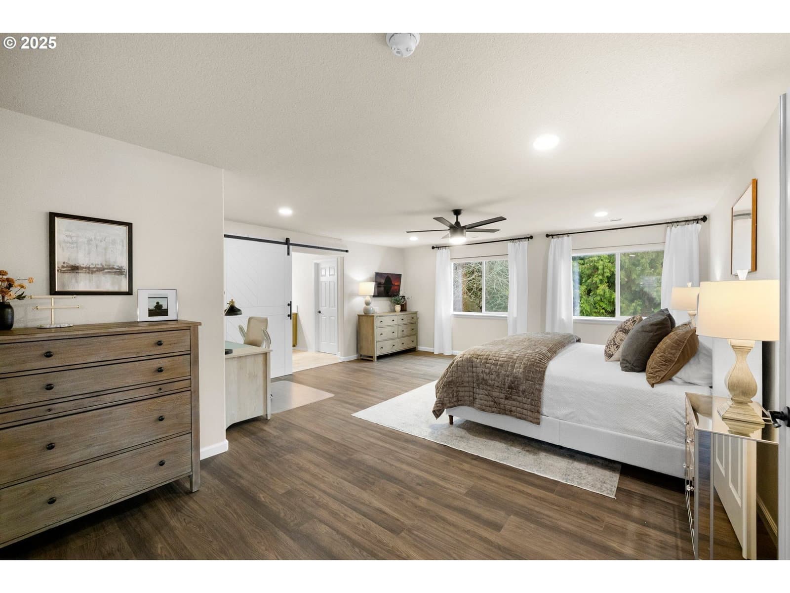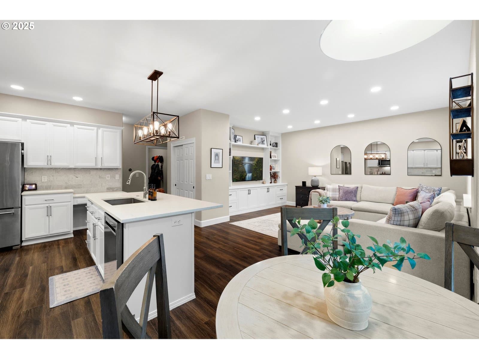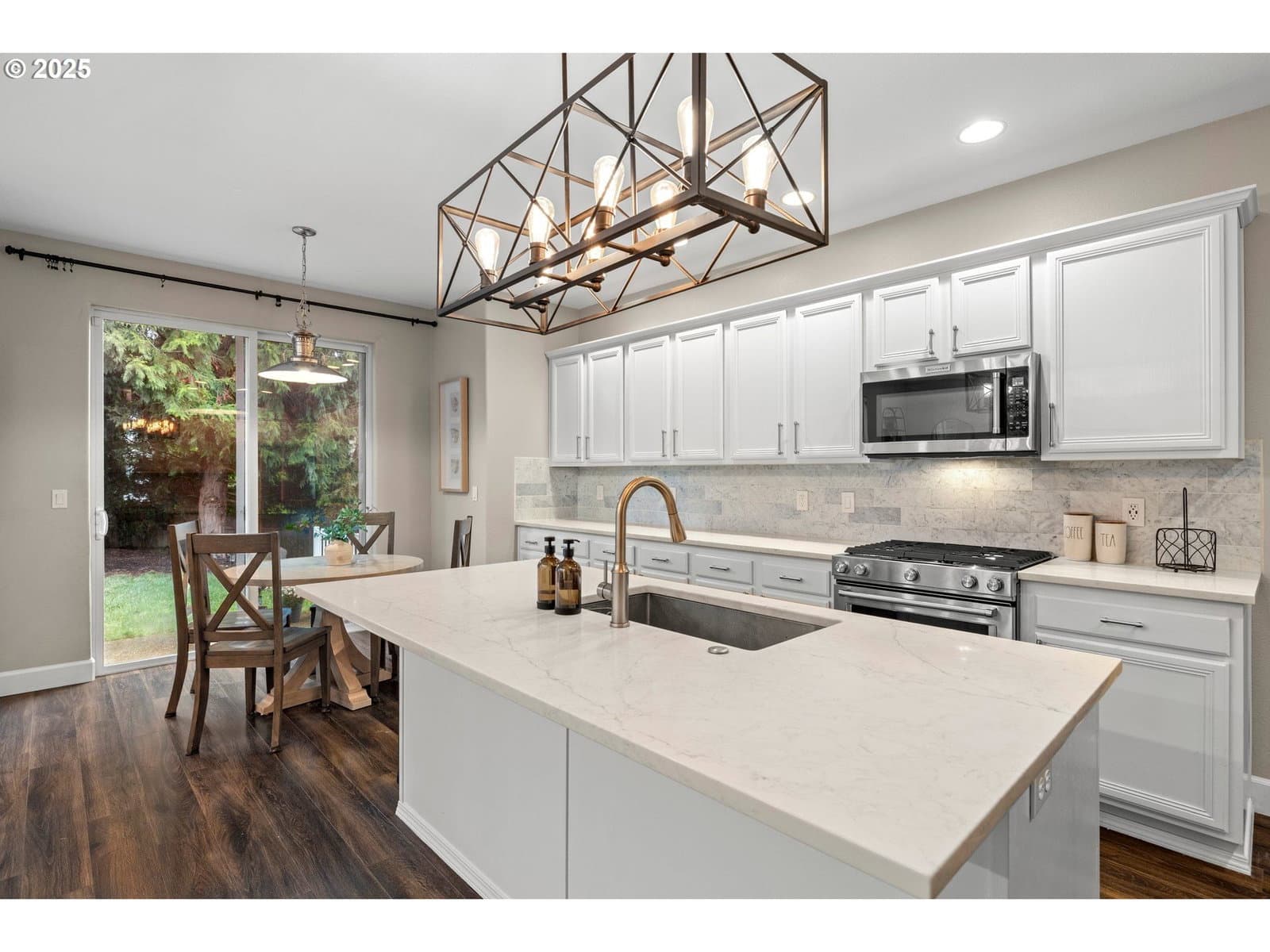 Welcome home to this beautifully remodeled and refreshed 2-story Traditional residence, tucked into a peaceful Tigard neighborhood with no HOA. Offering 2,711 square feet, 4 bedrooms, and 3 full bathrooms, this light-filled home features a flowing main level layout highlighted by vaulted ceilings in the formal living room with a cozy gas fireplace, an elegant dining room with bar and glassware built-ins, and an expansive great room perfect for everyday living and entertaining. The remodeled kitchen shines with quartz countertops, stainless steel appliances, designer fixtures, a large island, and eat-in area, opening seamlessly to a spacious family room with custom entertainment built-ins. Upstairs, all four generously sized bedrooms include ample storage, with three walk-in closets and a luxurious primary suite featuring one of two remodeled bathrooms. Extensive updates since 2017 include a remodeled kitchen and baths, newer laminate flooring and interior paint, added fourth bedroom, custom entertainment center, new roof (2023), new AC (2023), new furnace (2025), and fully upgraded crawlspace and attic insulation, venting, and vapor barrier (2024). The oversized 3-car tandem garage provides abundant storage, while the large corner lot boasts fresh professional landscaping, lush green yard, and new fencing completed in 2025. Ideally located near parks, schools, shopping, and dining, this truly turnkey home reflects exceptional pride of ownership and is ready to welcome its next chapter of memories.