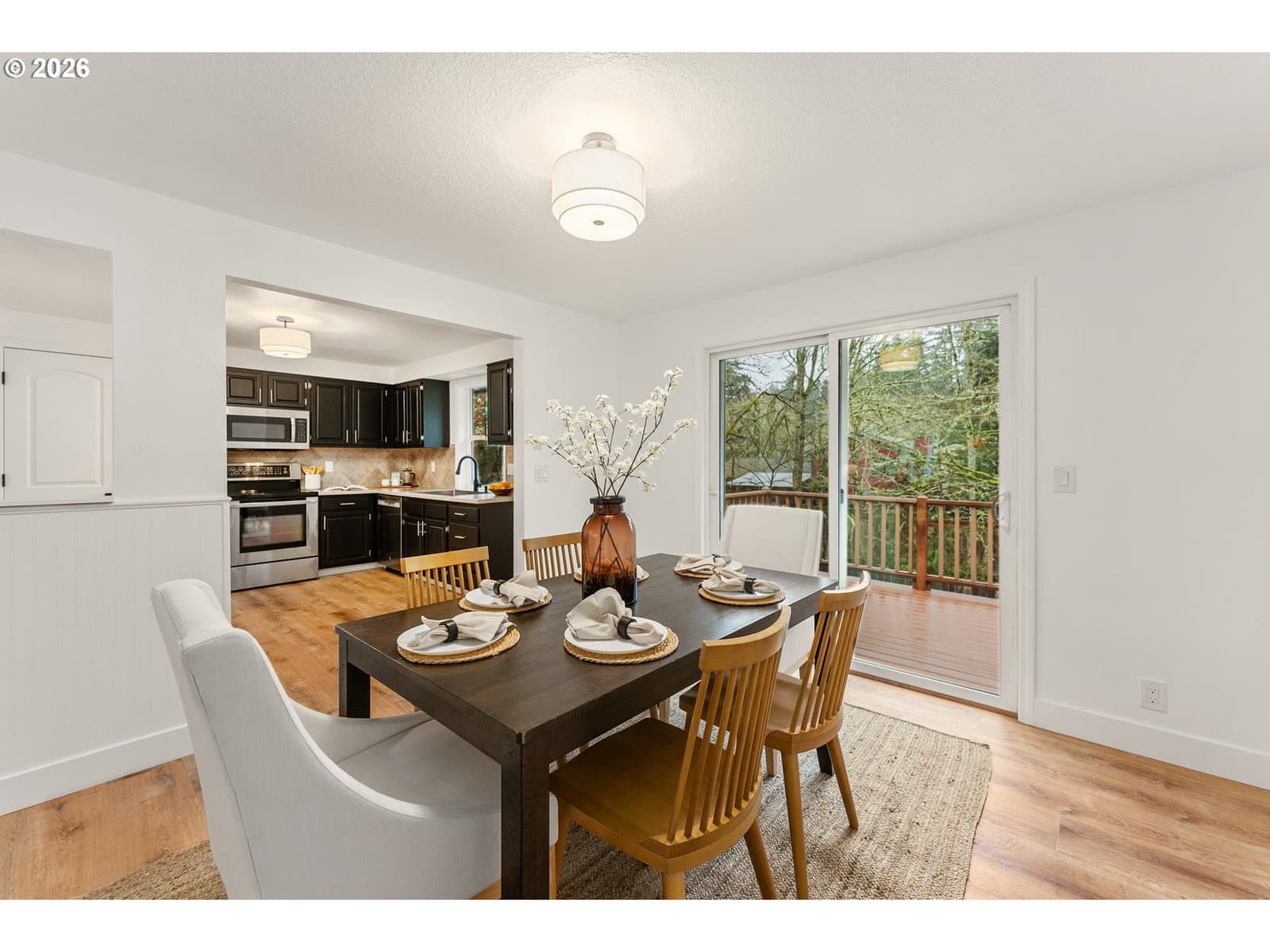Located in South Beaverton - this beauty is ready for you! New 30 year tear-off roof installed last week! The interior has been recently refreshed with new interior paint, new flooring, new lighting and new hardware throughout - it shines! The main floor features an open great room style with LVP floors, a wood fireplace and a sliding glass door with access to a spacious deck and stairs to the back yard. The kitchen has a lot of storage including a pantry and newer appliances. The primary bedroom is amazing with a large tile shower and and a walk-in closet. The lower level features a large family room with the second fireplace and a half bath. Slider opens to the spacious back yard that is fully fenced with a hot tub and tool shed. Oversized 2 car garage has storage. Easy proximity to fabulous schools, shopping and more.
