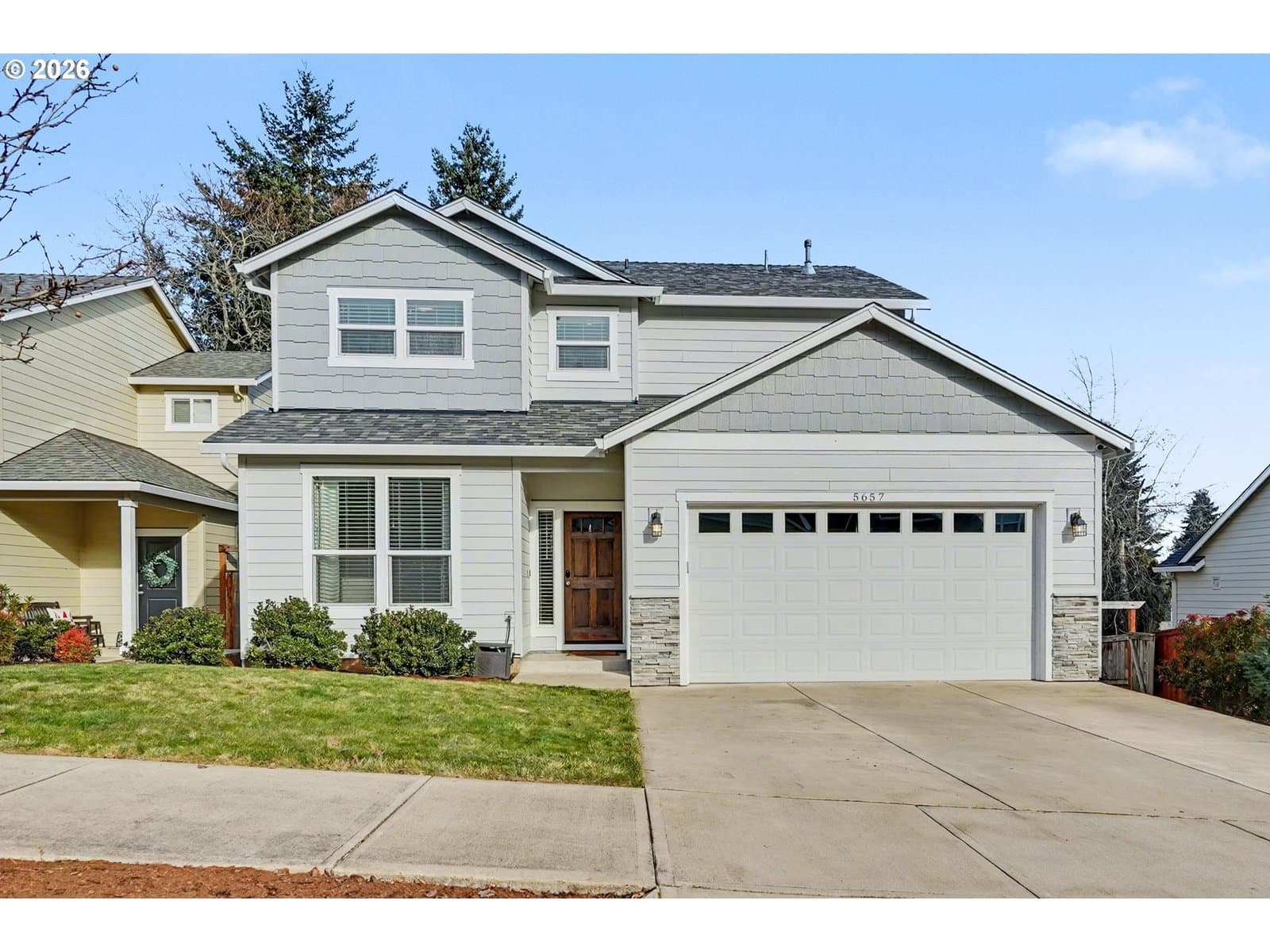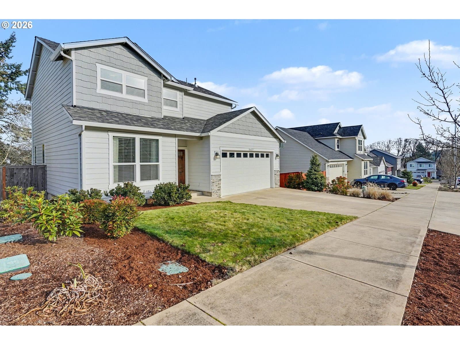 Beautiful home in a desirable neighborhood, 3 bds, Plus a bonus room on the main level. Open floor plan with AC, gas fireplace, Nest thermostat, kitchen has undercabinet lighting, walk-in pantry, kitchen & island has Quartz countertops. Includes Nest doorbell camera, SS fridge, gas stove, microwave, W/D. Primary bedroom has dual vanity sinks with quartz counter tops, toe kick lighting, walk-in shower, walk-in closet, separate laundry/utility room. Fully fenced back yard includes deck and UGS. Easy access to I-5. A must see!