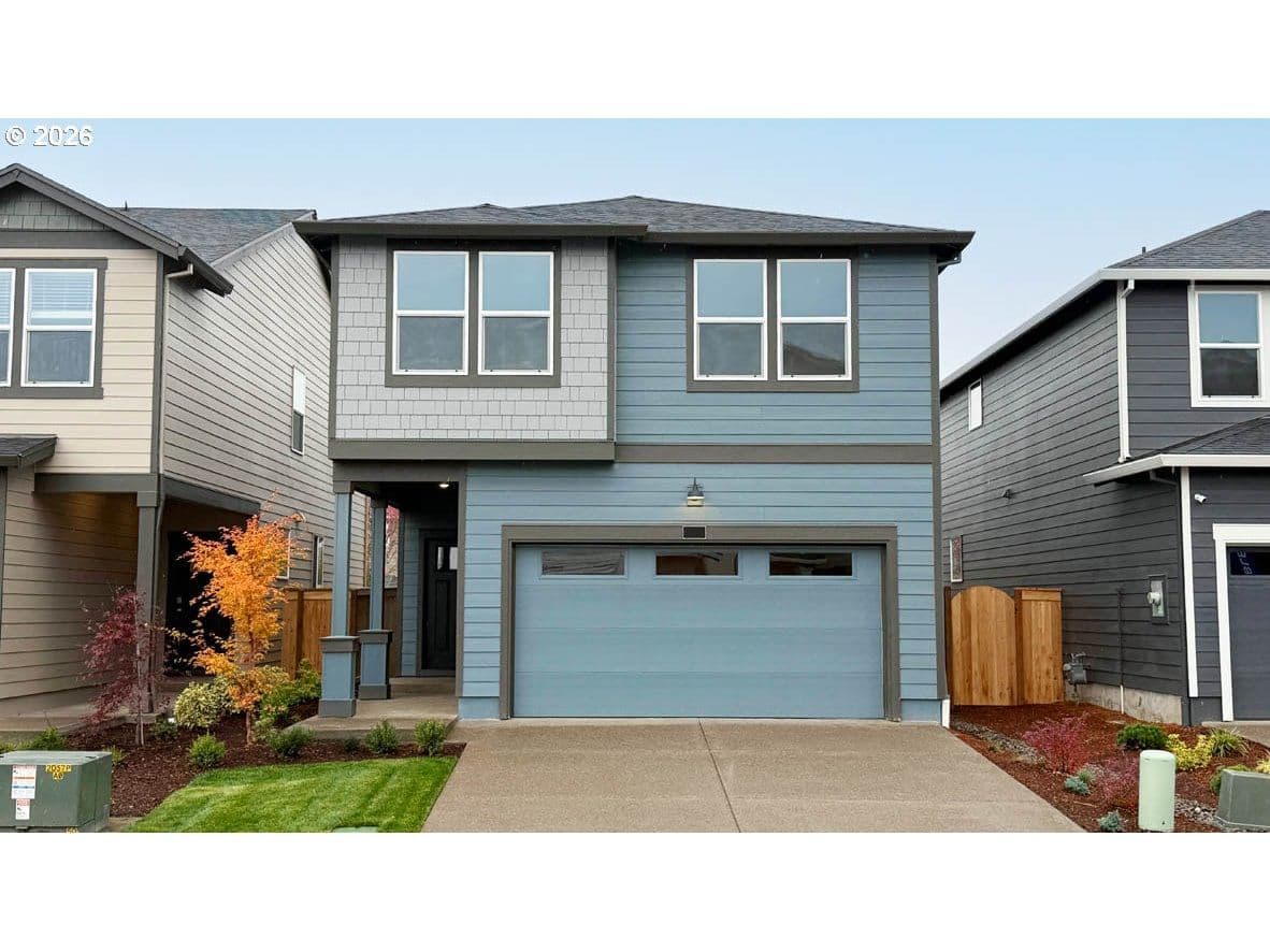 This new construction home is located in Henshaw Farm, offering convenient access to Simpson Park, Linn-Benton Community College, downtown historic Albany, and the Golf Club of Oregon, all within a 16-minute drive. The Cypress plan features a two-story design with an open first floor that combines the modern kitchen, dining area, and great room, with sliding doors that open to a back patio. Upstairs are three bedrooms, including the spacious primary suite with a walk-in closet and private bath with a separate tub and shower, plus a versatile bonus room. A three-car garage provides additional storage and parking flexibility. Interior highlights include quartz countertops, Shaker-style cabinets, LVP flooring in the kitchen and entryway, LVT flooring in the baths, a fireplace with floating mantle, two-tone interior paint, full landscaping, and fencing. This home also includes central air conditioning, a refrigerator, washer and dryer, and blinds—all at no extra cost! Located on homesite 208, this home will be move in ready June 2026. Exterior rendering is artist conception only. Photos are of a similar home; features and finishes will vary.