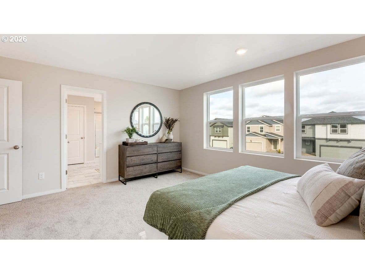 The Ruby is a lovely two-story floor plan at Avery Terrace in Happy Valley, Oregon. This 2,278 square foot floor plan has 4 bedrooms, 2.5 bathrooms, and a 2-car garage. This open concept floor plan makes this the perfect set up to entertain your guests and have space to move around. The kitchen boasts stainless steel appliances, shaker cabinets, and solid quartz countertops on both the perimeter counter and the island. This luxurious kitchen has a large pantry and plenty of room to get creative with your cooking. Heading upstairs you will notice all four bedrooms are on the upper level which helps provide extra privacy and security. The primary bathroom boasts an en suite bathroom with a double sink vanity, a walk-in closet, and shower. In addition, the toilet has a separate door for an added space of privacy and an extra storage closet. The other three bedrooms share the secondary bathroom that has a tub shower and toilet closet and a solo sink vanity. Receive a closing cost credit with use of builder’s preferred lender, reach out for more details. Avery Terrace is located just minutes away from incredible dining options and shopping centers like Happy Valley Crossroads, and Happy Valley Town Center. Photos are representative of plan only and may vary as built. Schedule a tour today and secure your gorgeous new home at Avery Terrace! Model office hours are Wednesday to Sunday 9:30am - 4:30pm