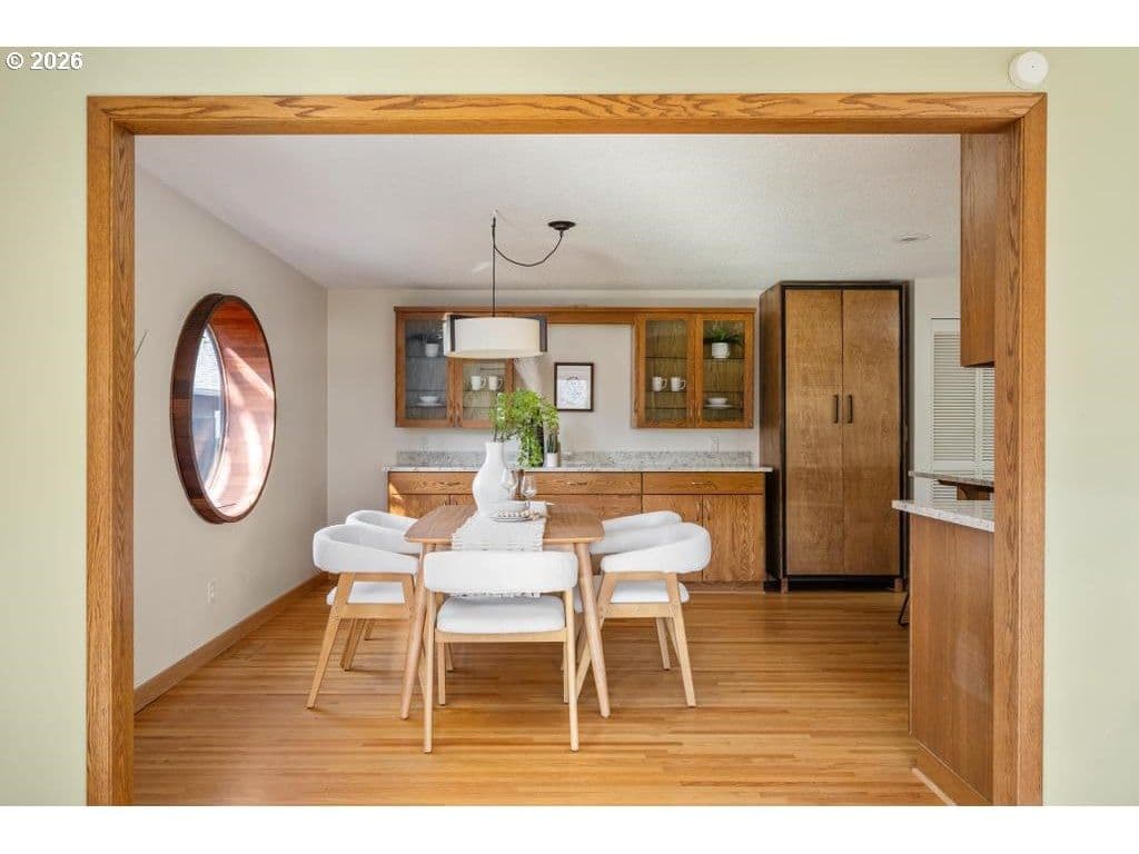 Offers received, deadline Monday 10 am. Located on a quiet, centrally positioned street in Milwaukie, this thoughtfully updated one level home reflects consistent care and quality improvements throughout. A metal roof installed in recent years adds long term durability, and both the home and yard have been meticulously maintained. The front landscaping and hardscape create strong curb appeal and set the tone for what’s inside.The floor plan offers larger living and family room spaces, providing flexibility and comfort. The front living room features a glass door that closes, making it well suited for a home office or separate sitting area. The spacious kitchen and dining area offer excellent flow, and a distinctive circular window in the dining room adds architectural character and natural light. Both bathrooms have been updated, including a fully remodeled primary bathroom with heated marble floors. The second bathroom has also been improved, and the quality of the finishes, from faucets to flooring, stands out at this price point. The kitchen and baths feel elevated and thoughtfully completed. With its generous room sizes, functional layout, and meaningful updates, this property offers the ease of one level living without compromising on space or quality. Conveniently located near local schools and neighborhood amenities, it combines comfort, practicality, and attention to detail in a well established setting. [Home Energy Score = 1. HES Report at https://rpt.greenbuildingregistry.com/hes/OR10244337]