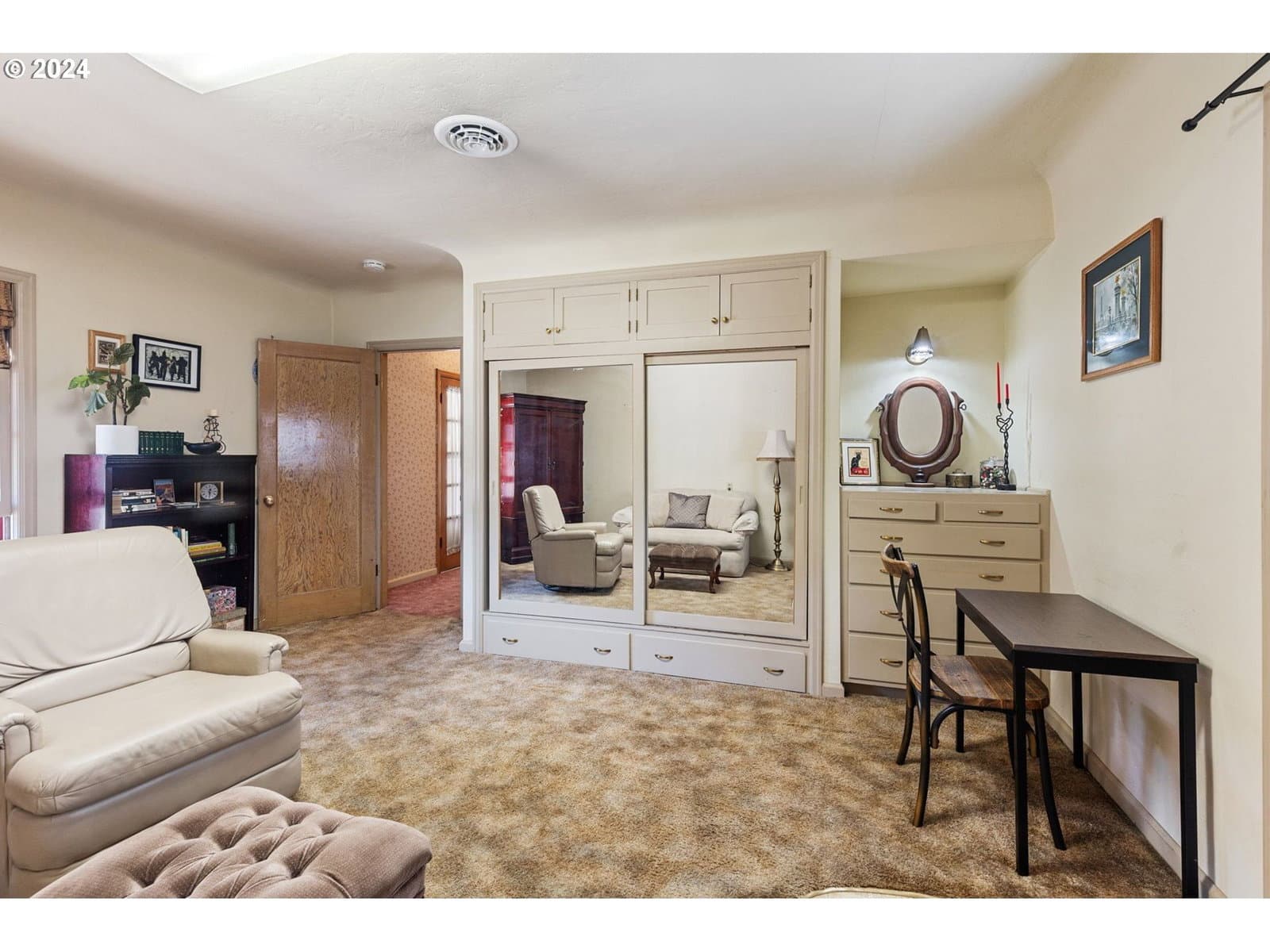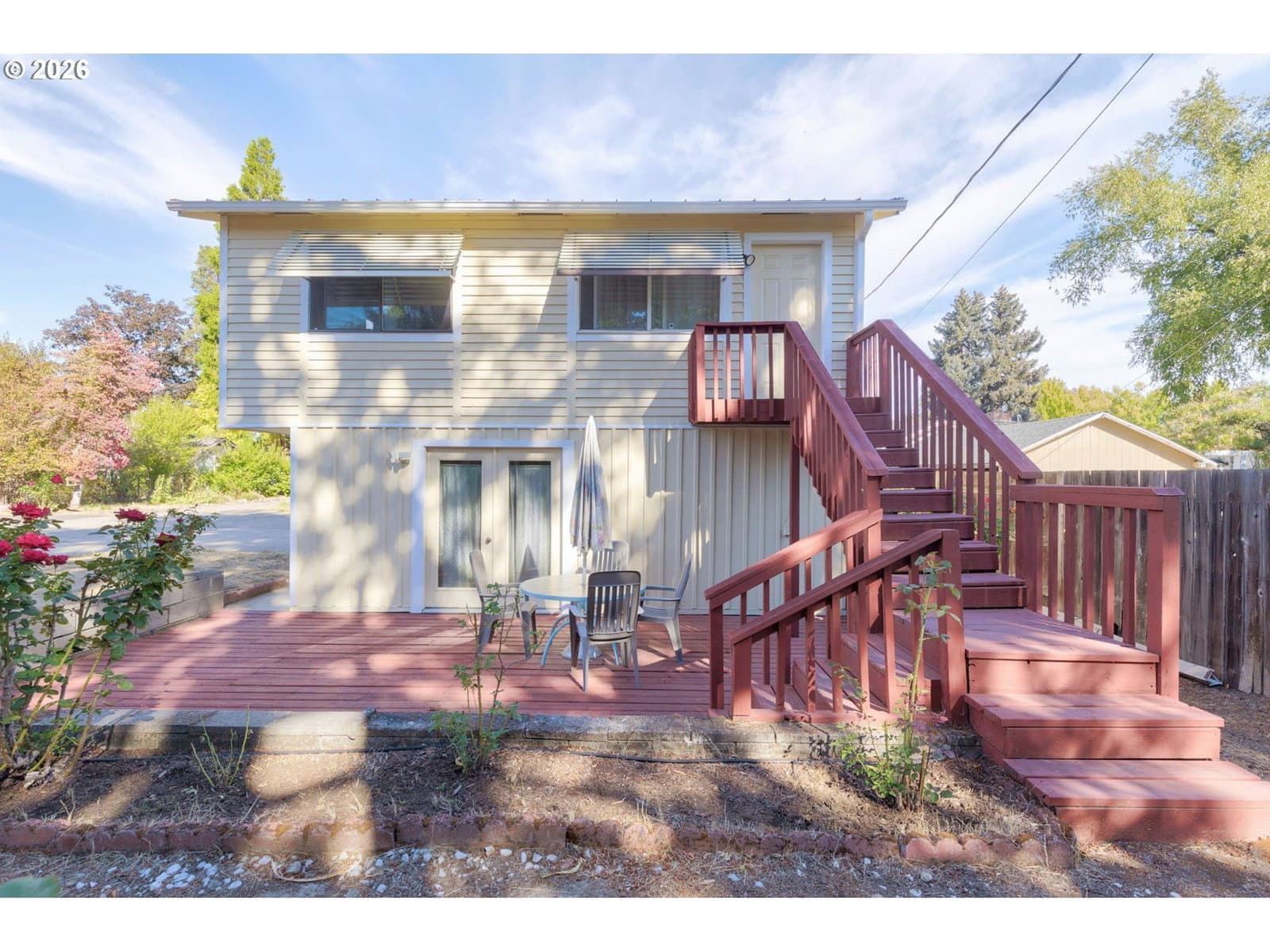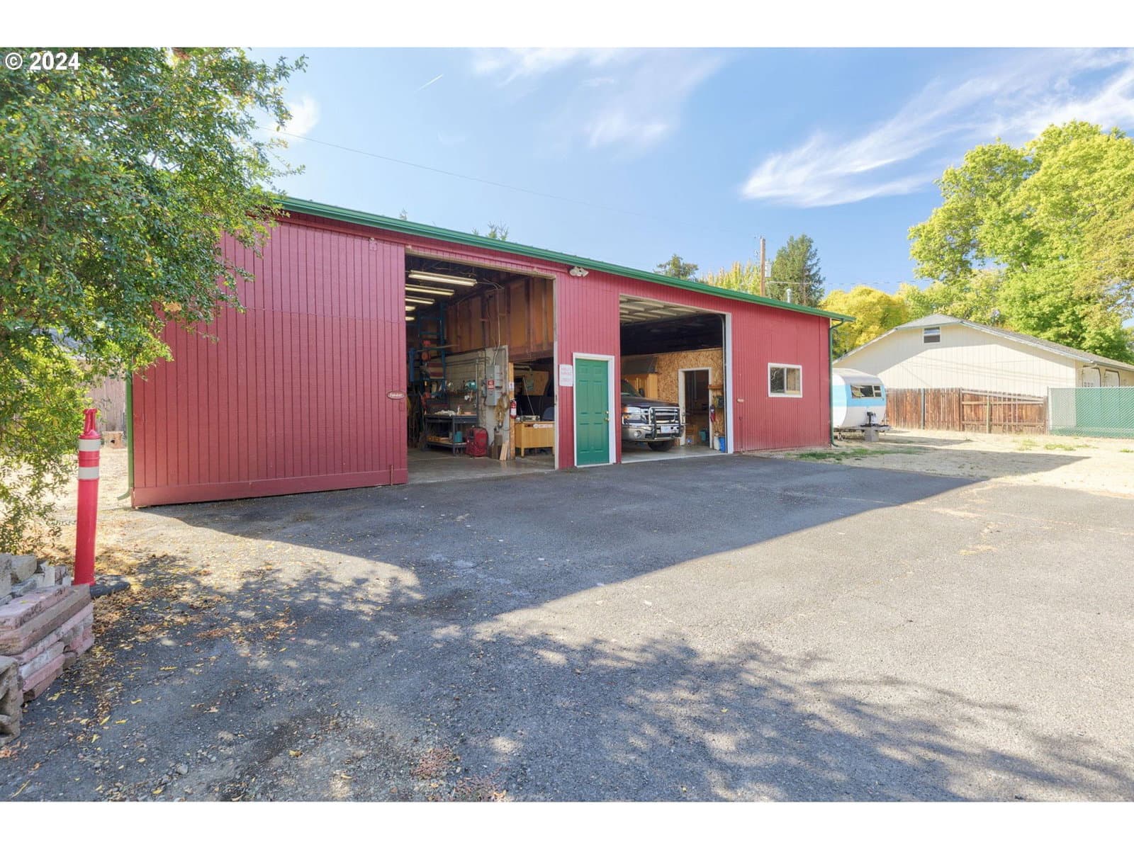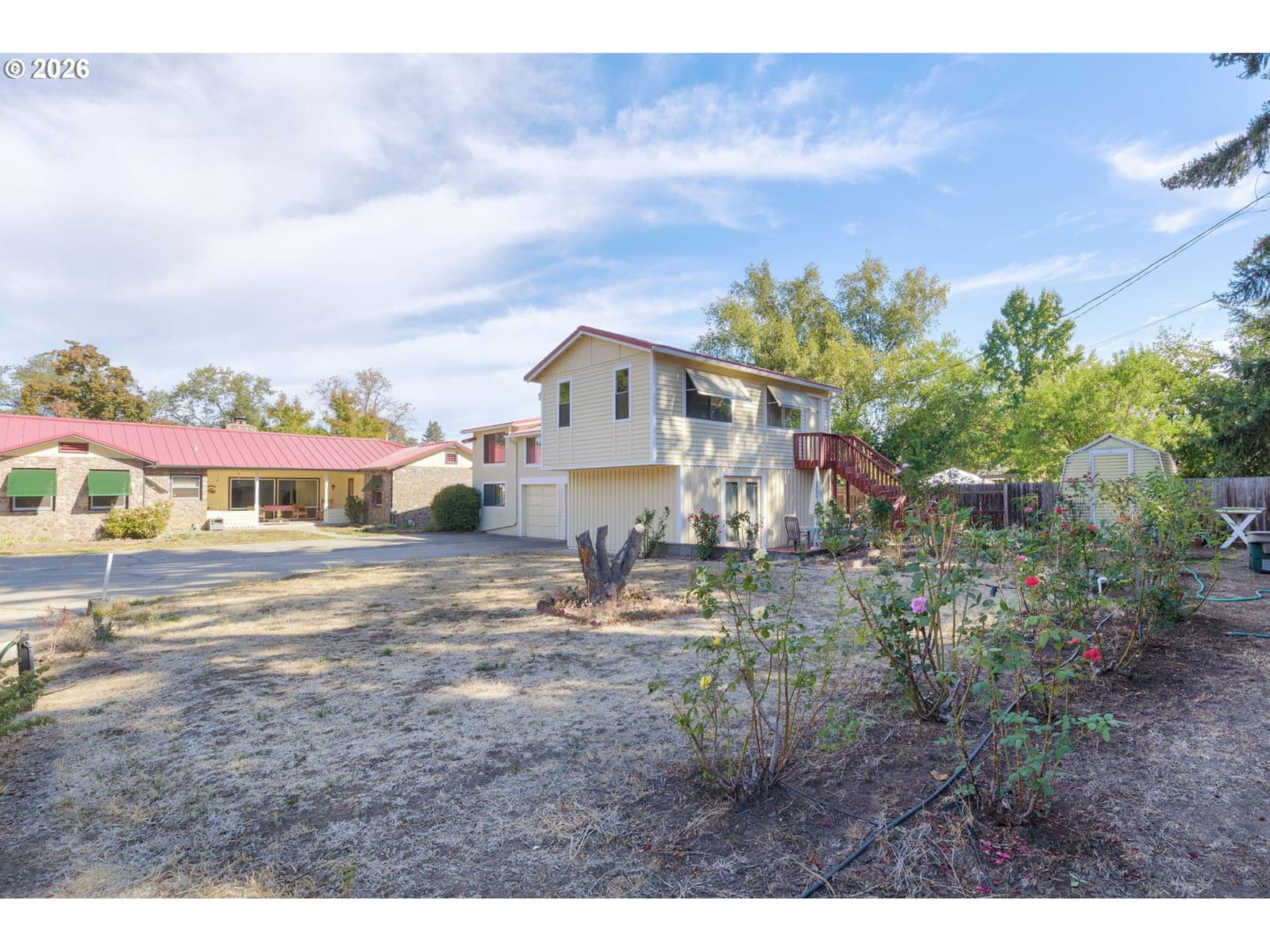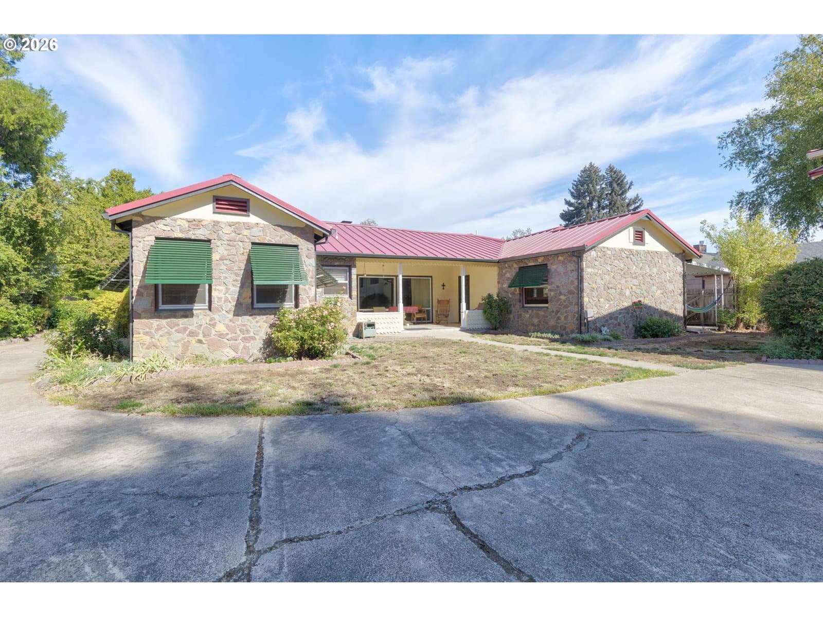 TWO residences plus HUGE shop all on .60 acre right in town! 2,052 SF mid-century main home built of natural stone has many classic touches: curved ceilings and walls, original vintage fixtures, built-in cabinetry and hardwood floors throughout, extra spacious rooms, formal dining room, and wood-burning fireplace for ambience. Updates include all new metal ductwork and new gas furnace, attic insulation, and new roof in 2022. A 1,488 SF 2bd/1ba apartment above the detached two-car garage, with three sizable bonus rooms, offer extra living and leisure space. The private deck to backyard & established garden area, complete with 8x8 greenhouse, provides a peaceful retreat. Shop is 34x52 with 3 bays, 220 power, and loft. Outside are two RV parking spots w 30A outlets + lots of add'l room for parking and recreation. Tucked away from the main road, yet convenient to amenities, this mini-compound is lovingly maintained and move-in ready! Shown by appointment only, pre-approval required.