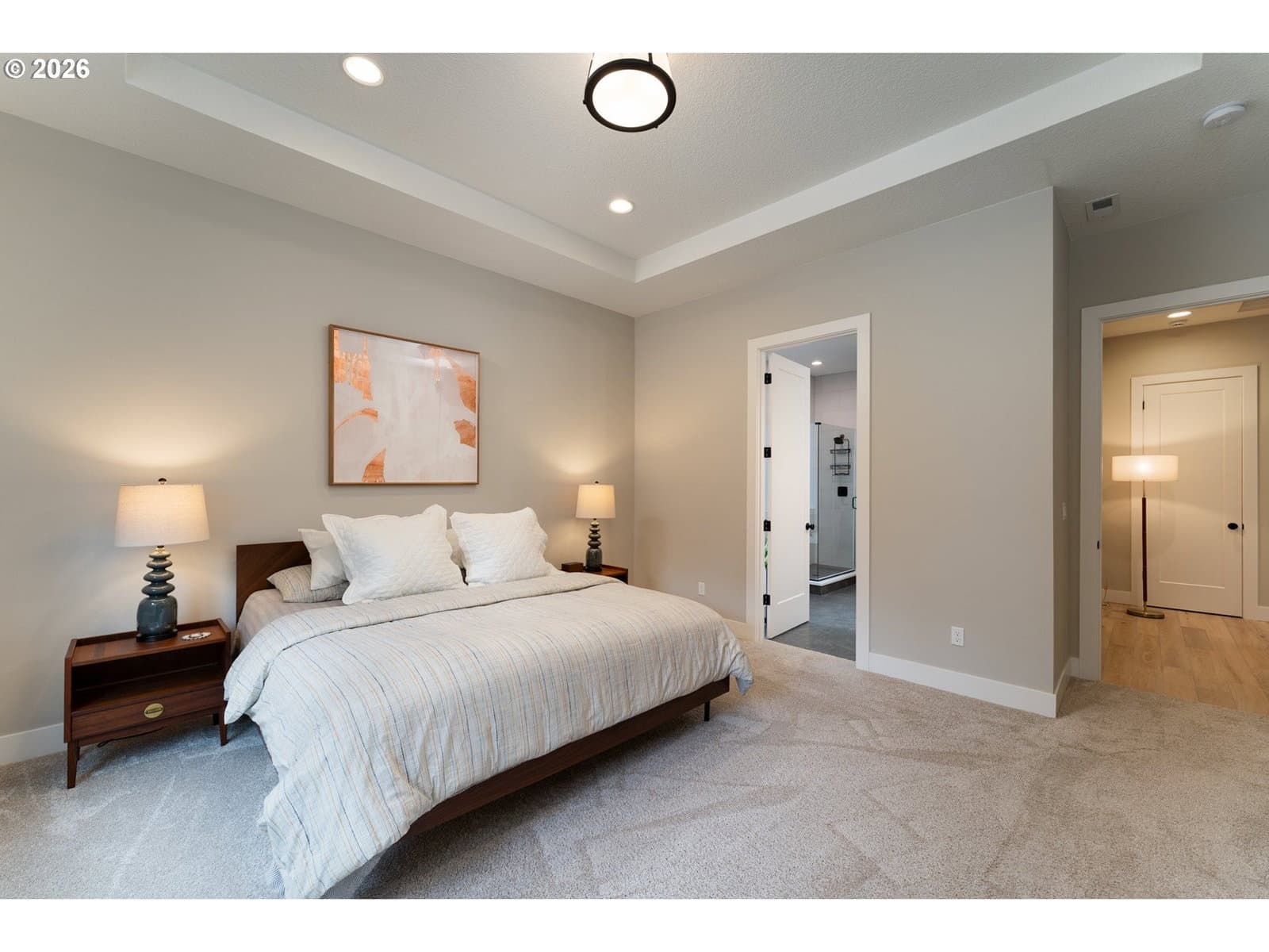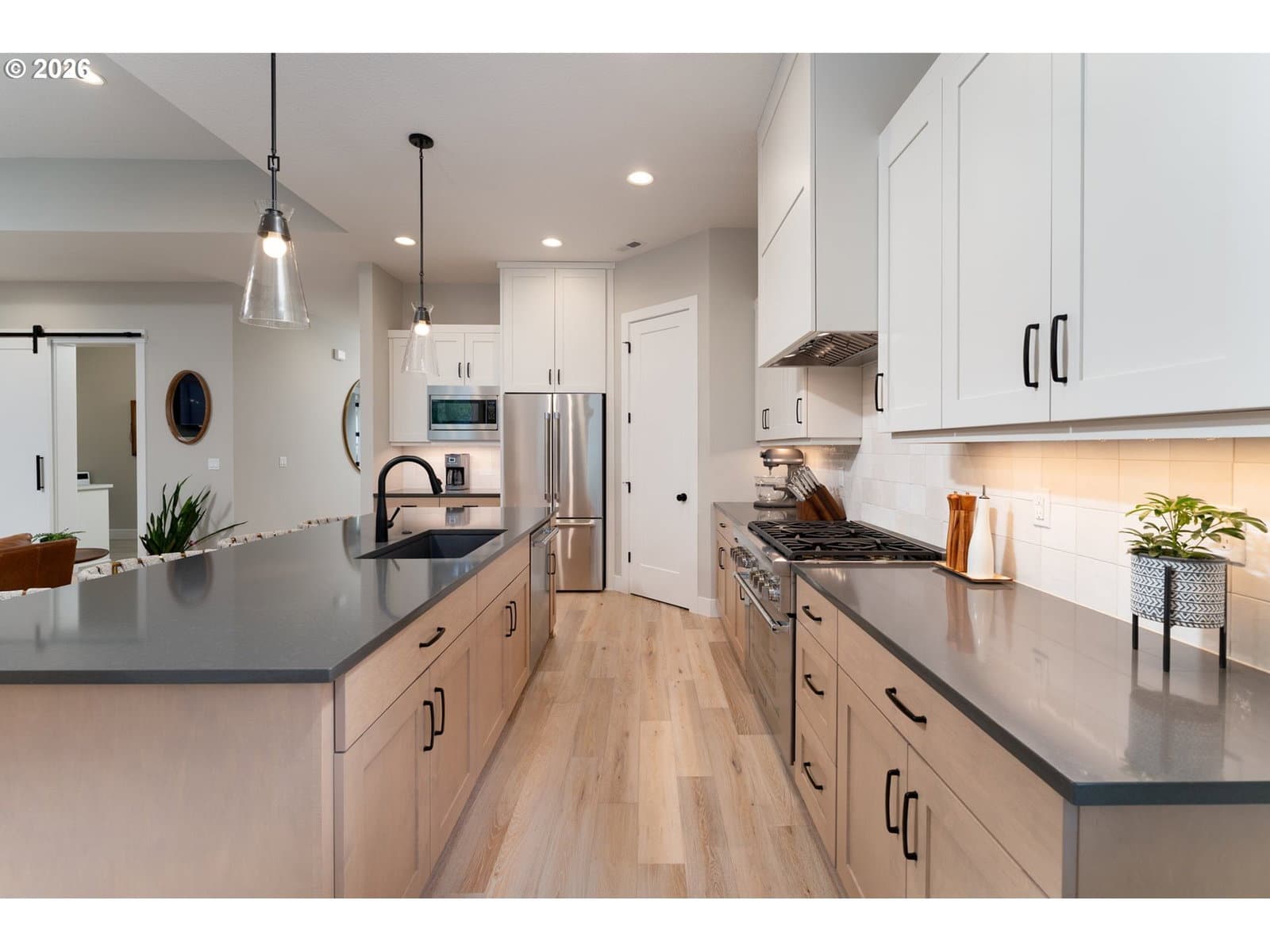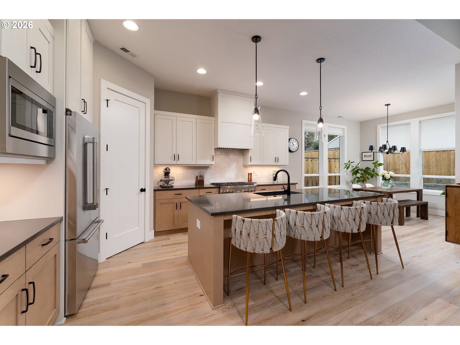 Modern Contemporary Farmhouse situated in the heart of Garden Home. Garden Terrace is an 8-lot development on a dead end street blocks to Trader Joes, Old Market Pub, Fanno Creek Trail, and Moonshadow Park with easy access to Red Tail Golf Course, Portland Golf Club, Multnomah Village and Washington Square. The surround neighborhood is pedestrian, dog and even horse friendly. Completed in 2023 by Westwood Homes and loaded with architectural details and designer finishes, this home has been lightly-lived in, well-cared for and clean as a whistle. Interior finishes include engineered hardwood and tile floors, custom cabinetry, automatic and room darkening window treatments. The main level primary suite includes 10-foot ceilings, dual vanities, soak tub, separate glass/tile shower & large walk-in closet. The kitchen includes quartz counters and island, Thermador appliances including 36-inch (6 burner) gas range with integrated range hood and large pantry. The great room has 12-foot ceilings, gas fireplace, open shelving with additional built-ins. Generous den with large closet and additional small storage area. Utility/mud room with folding shelf, barn door and boot/coat bench and hooks. The upper level includes two bedrooms, full bath and additional 4th bedroom or bonus room. Two-car garage with additional space ideal for shop, work bench or exercise space. Exterior amenities includes a low maintenance grounds, fenced yard, covered patio plumbed with gas. Recent improvement and updates include a new front yard and landscape, rear flagstone path, trees and landscape, second fence gate, garage sink and extra hose bib. Ultra quiet and close-knit community with Washington County Taxes. Seller is licensed real estate broker in the State of Oregon. The current annual HOA fee is $619.76 to fund the reserves. The annual fee should drop to $400-$450 next year.