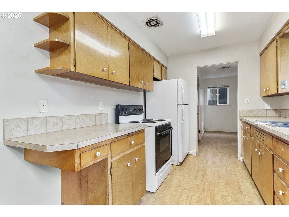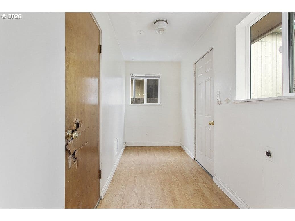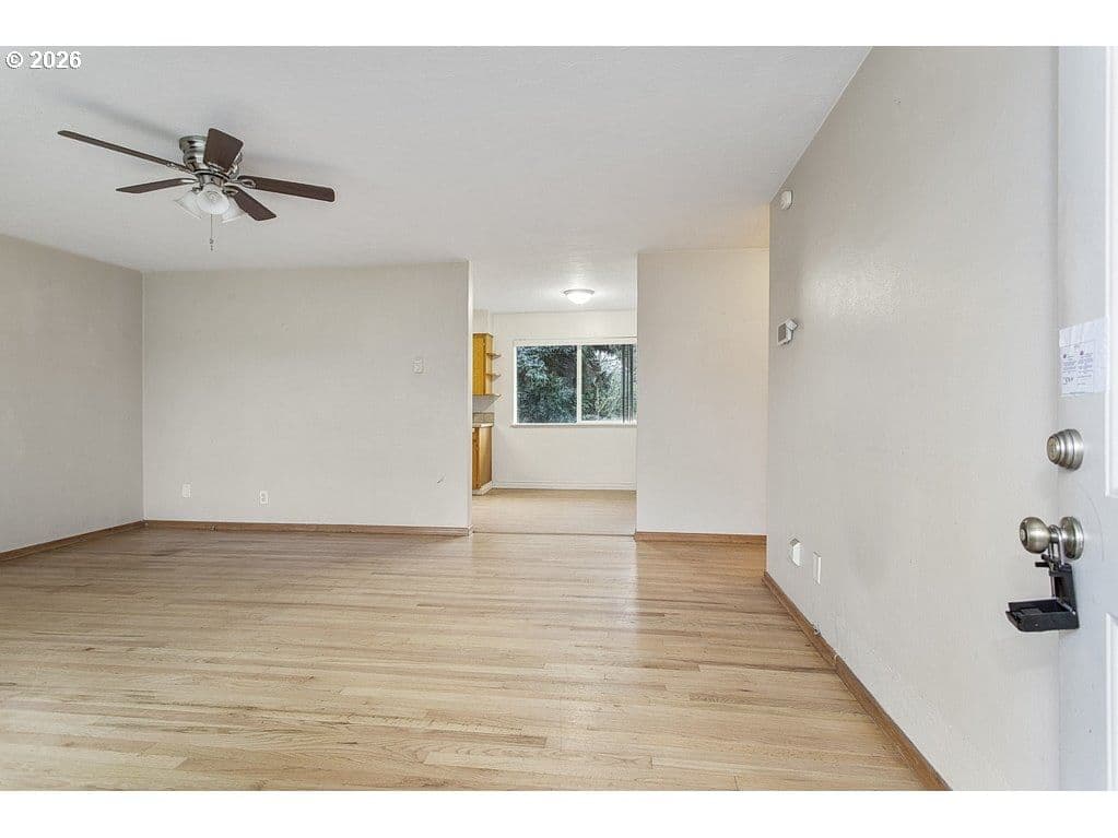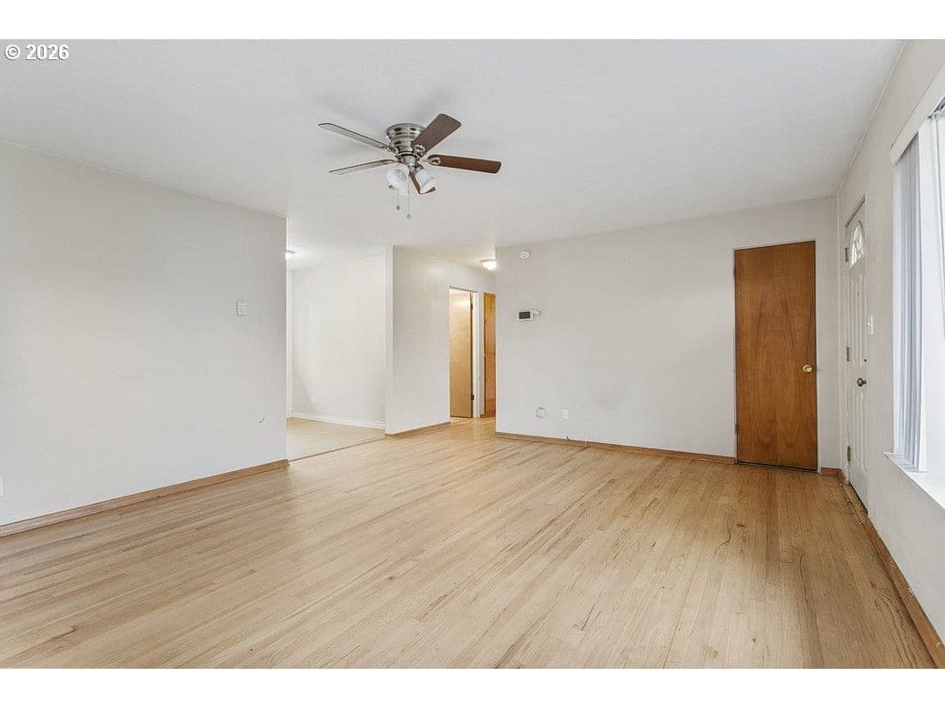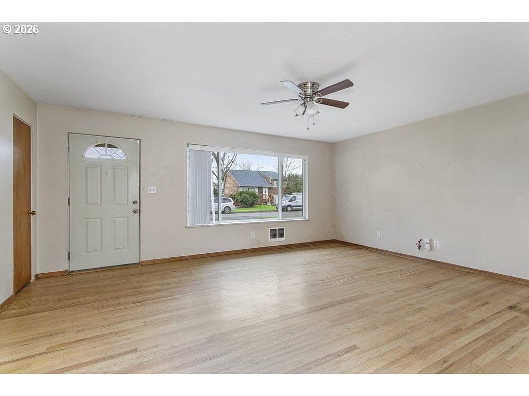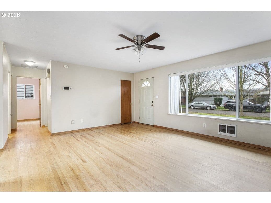 1958 ranch-style home on a 6,600 sq ft lot in Longview. The property features 2 bedrooms, 1 bath, and 894 sq ft of main living space. Highlights include hardwood floors, electric heat, attached garage, and a functional kitchen with open flow to living areas. Large windows provide natural light and views of the private backyard. Located near parks, shopping, and local amenities.