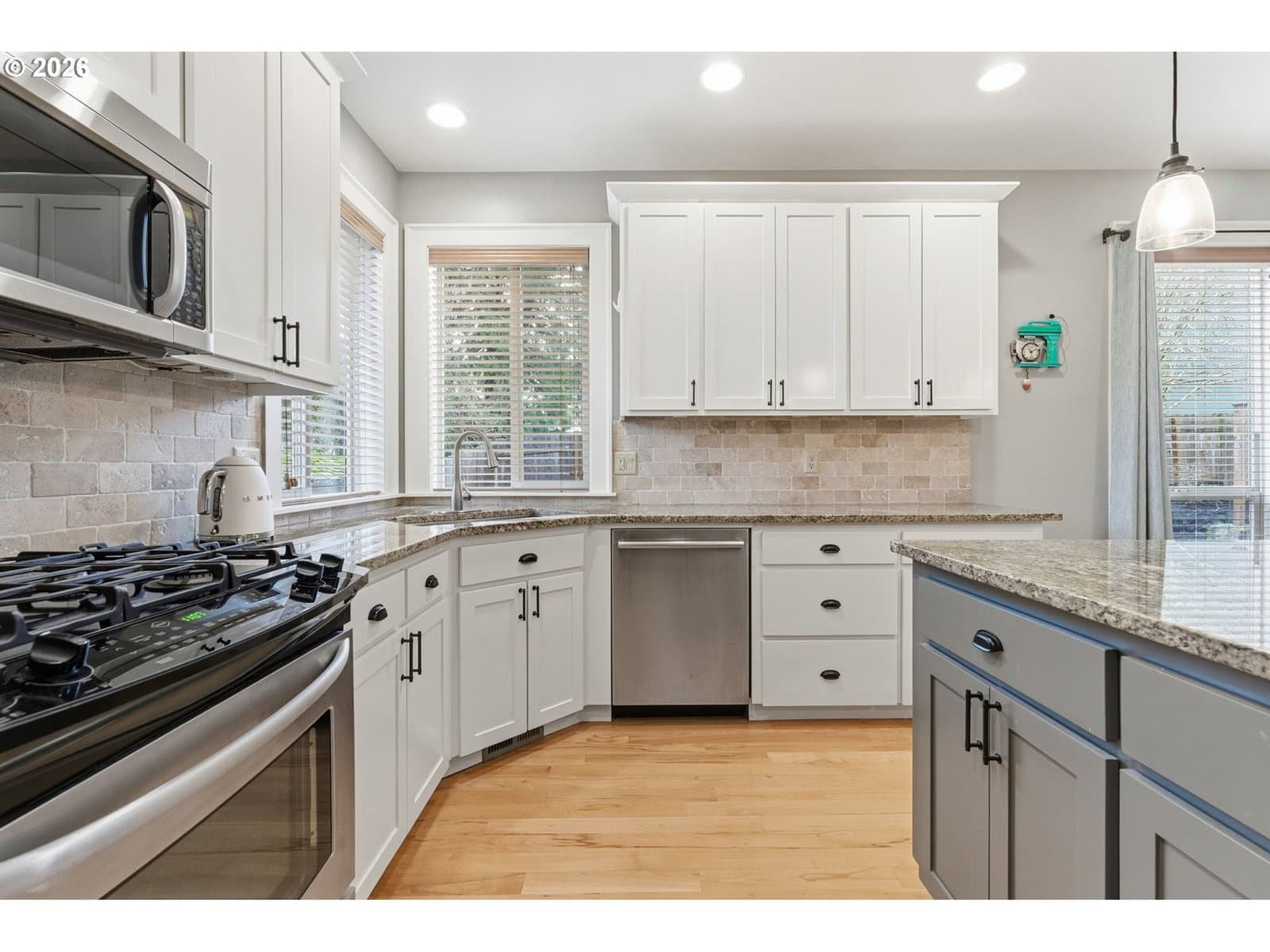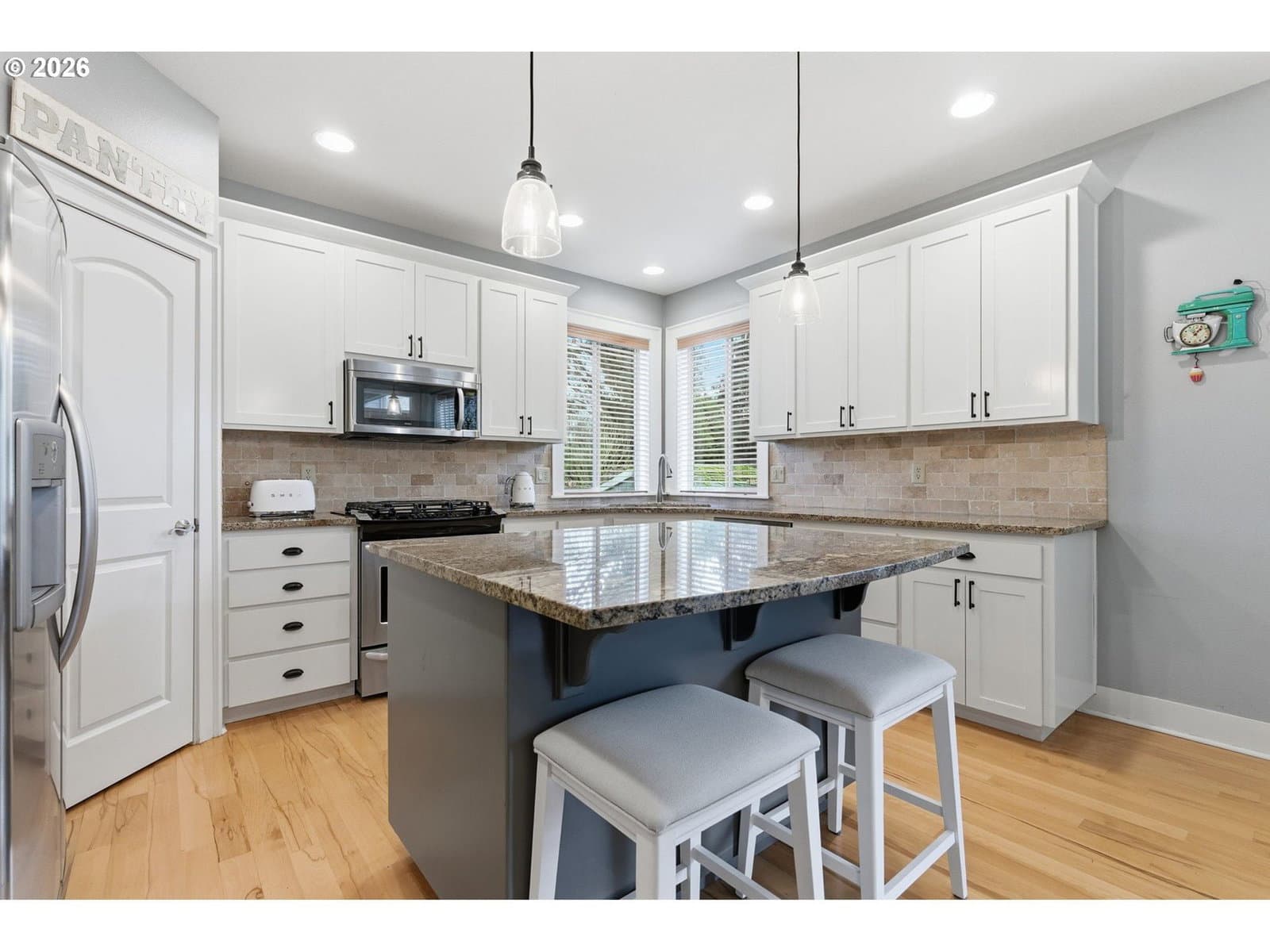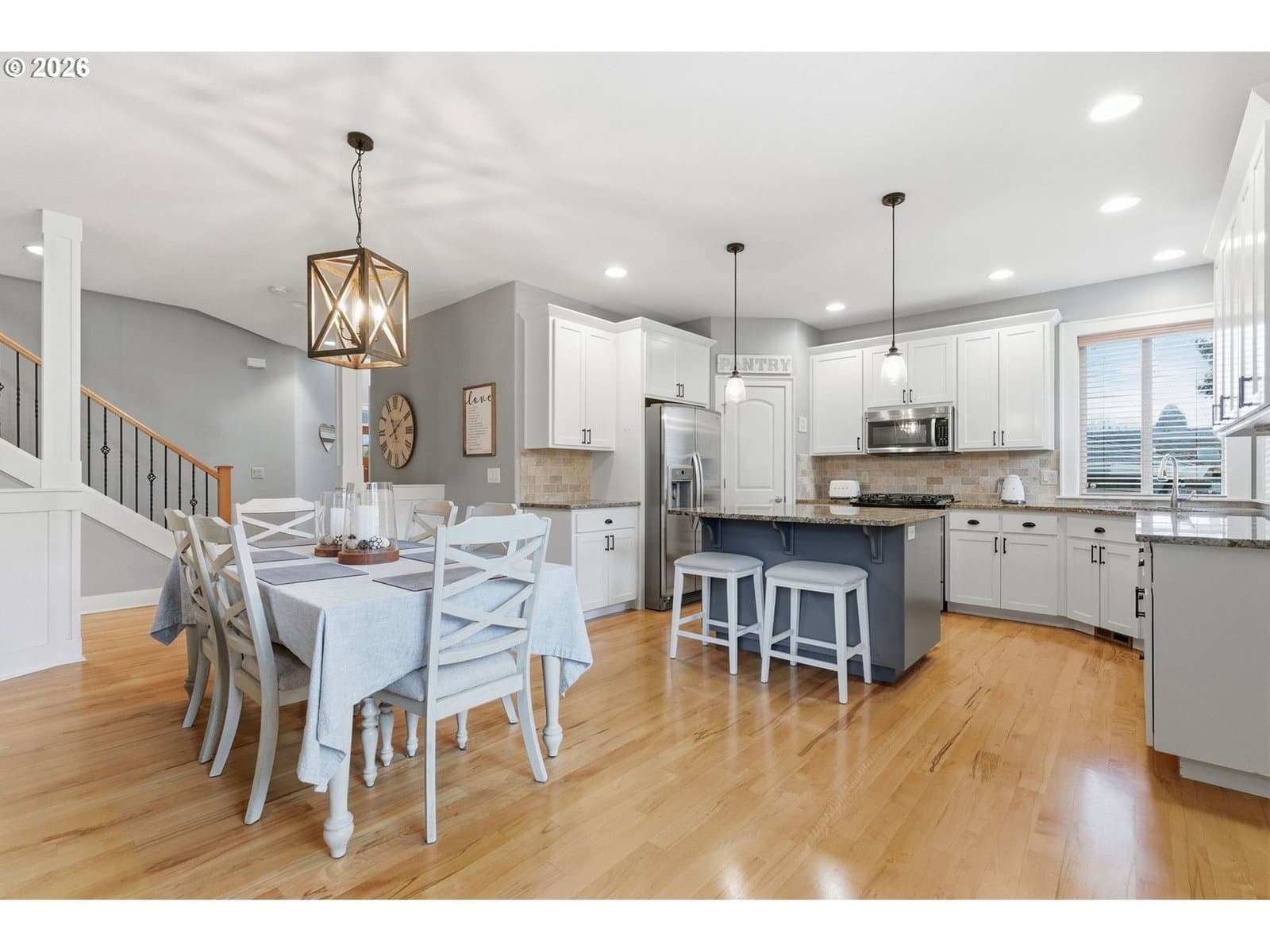 Set in highly desirable Sherwood, this four-bed home stands out for its quality craftsmanship, thoughtful layout, and incredible value. A covered vaulted front patio and grand double-height entry set the tone for the open, flexible floor plan inside. The main level offers a den/office or potential bedroom, while the kitchen seamlessly connects to the dining and living areas—complete with granite counters, an eat-in island, abundant workspace, pantry, stainless appliances, and excellent natural light from large windows throughout. Upstairs features three bedrooms plus a massive bonus room ideal for media, play, or multi-use living. The primary suite feels like a retreat with a walk-in closet, soaking tub, and walk-in shower. Outside, enjoy manicured grounds with mature trees, fenced yard, storage shed, and seasonal beauty that becomes even more stunning in spring. Rare with a 3-car garage and major system upgrades including a new high-efficiency furnace, air conditioning, and water heater. The details that add comfort and long-term peace of mind. A wonderful opportunity to own a well-cared-for home in Sherwood.