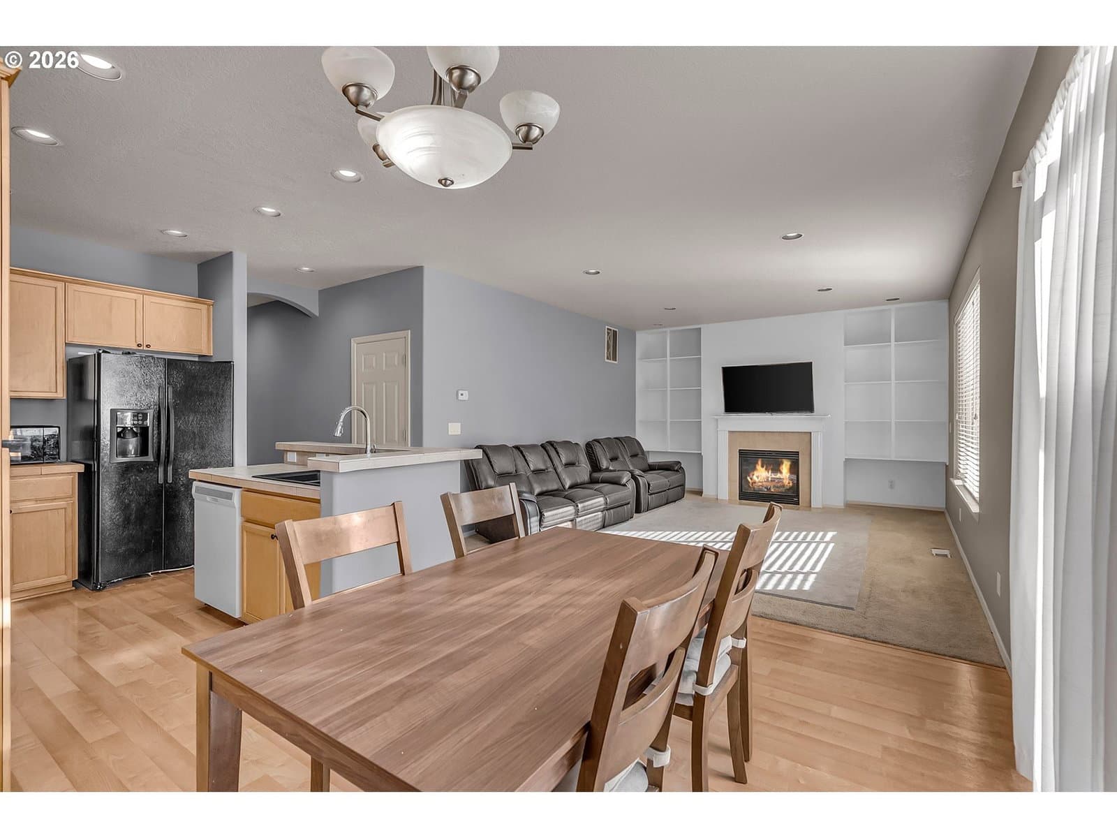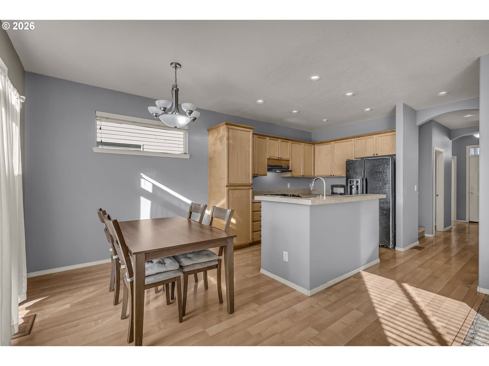 Welcome to this 4-bedroom, 2.5-bath home with an additional office/den, nestled in desirable Hillsboro. Offering comfort and versatility, this home is ideal for both everyday living and entertaining. The inviting living room features cozy carpet and a fireplace, perfect for relaxing evenings at home. The kitchen is equipped with an island, tile countertops, and a built-in dishwasher, providing generous workspace and an easy flow into the dining area, highlighted by durable laminate flooring. All four bedrooms are located upstairs, each featuring carpet and its own closet. The primary suite includes a private bathroom with dual sinks and a spacious walk-in closet, offering plenty of room for storage and organization. The home also features a washer and dryer room for added practicality. The office/den includes its own closet, making it a flexible space ideal for remote work, guests, or additional storage. Step outside to a fully fenced backyard designed for privacy, complete with a small patio perfect for outdoor gatherings. Residents enjoy HOA amenities including a pool, party room, commons, management services, and recreation facilities. Located in Hillsboro, this home offers close proximity to parks, shopping, dining, and major employers.