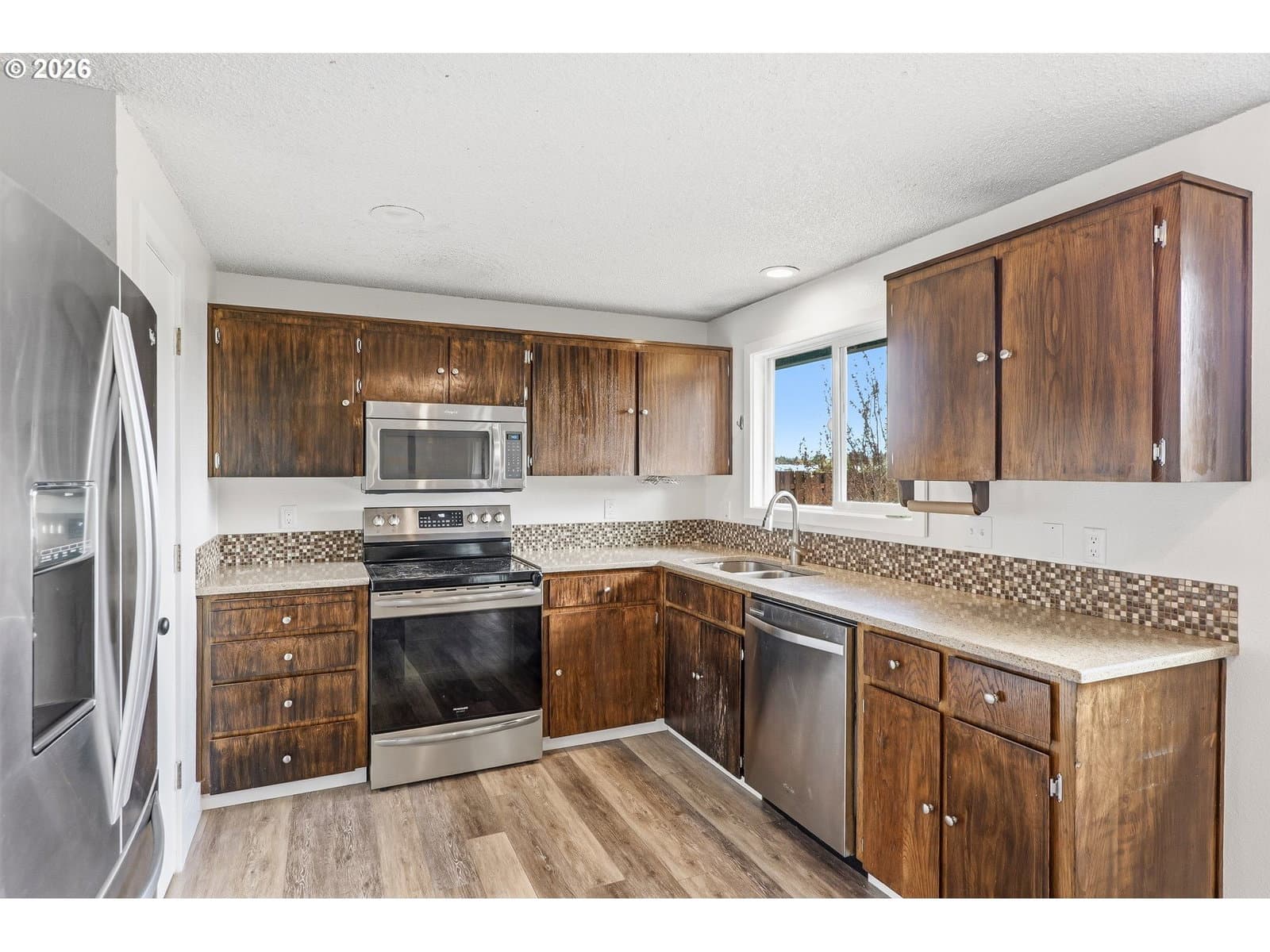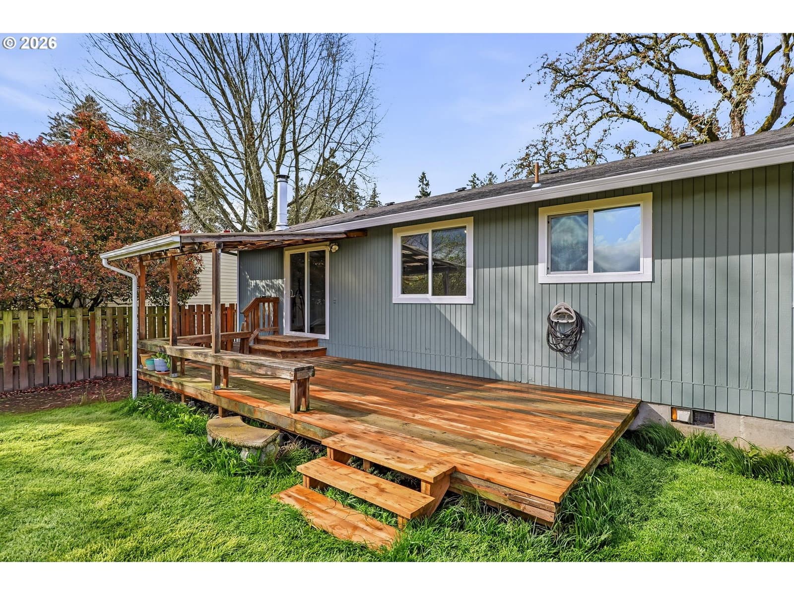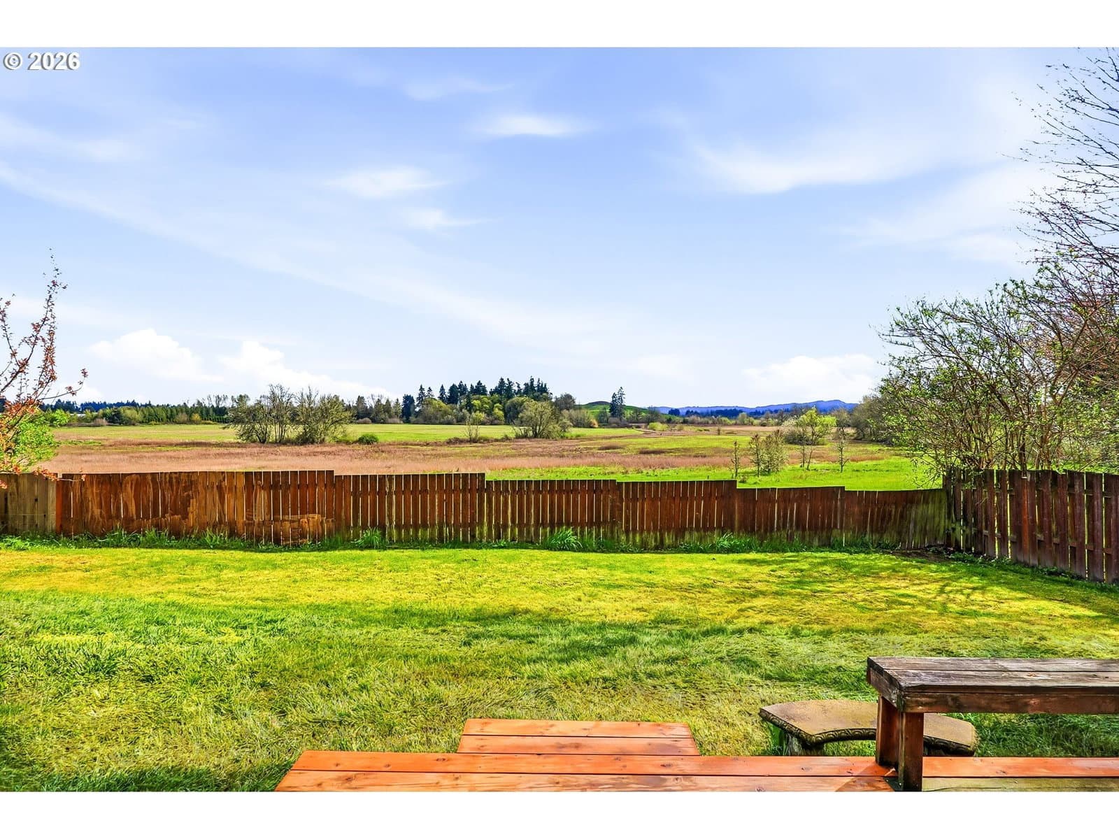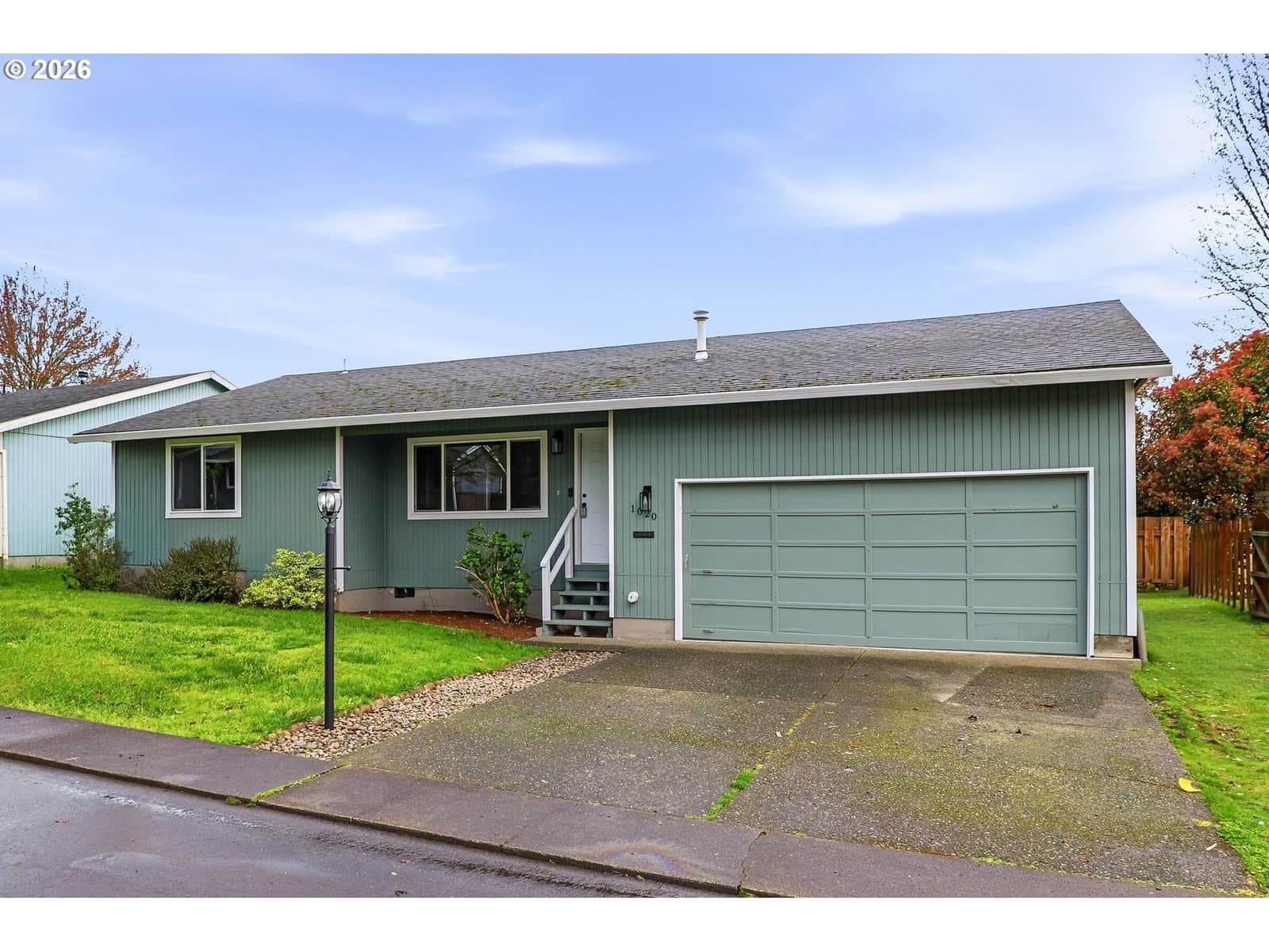 Daylight ranch-style home backing to greenspace with peaceful territorial views of the Jackson Bottom Wetlands. Located in a nature filled neighborhood with convenient access to shops, dining, major roads, and a nearby community center, this property offers a functional layout with a scenic backyard setting. Inside, new luxury vinyl plank flooring enhances the main living areas. The family room features a woodstove, ceiling fan, and sliding glass door access to the patio, creating an easy connection to the outdoor space. The kitchen offers granite countertops, stainless steel appliances including a built-in microwave, built-in dishwasher, freestanding range and refrigerator, pantry storage, and a tile backsplash. The primary suite includes a spacious closet and an ensuite with granite countertops and a newer walk-in shower. Two additional bedrooms provide comfortable space with carpet and closets. The fully fenced backyard features lawn space, patio seating, and direct views of the surrounding greenspace and wetlands, creating a peaceful outdoor setting. Additional neighborhood amenities include nearby basketball courts and a community center just around the corner. With thoughtful updates, a single-level layout, and a scenic natural backdrop, this home offers a wonderful blend of comfort, convenience, and setting. [Home Energy Score = 7. HES Report at https://rpt.greenbuildingregistry.com/hes/OR10246539]