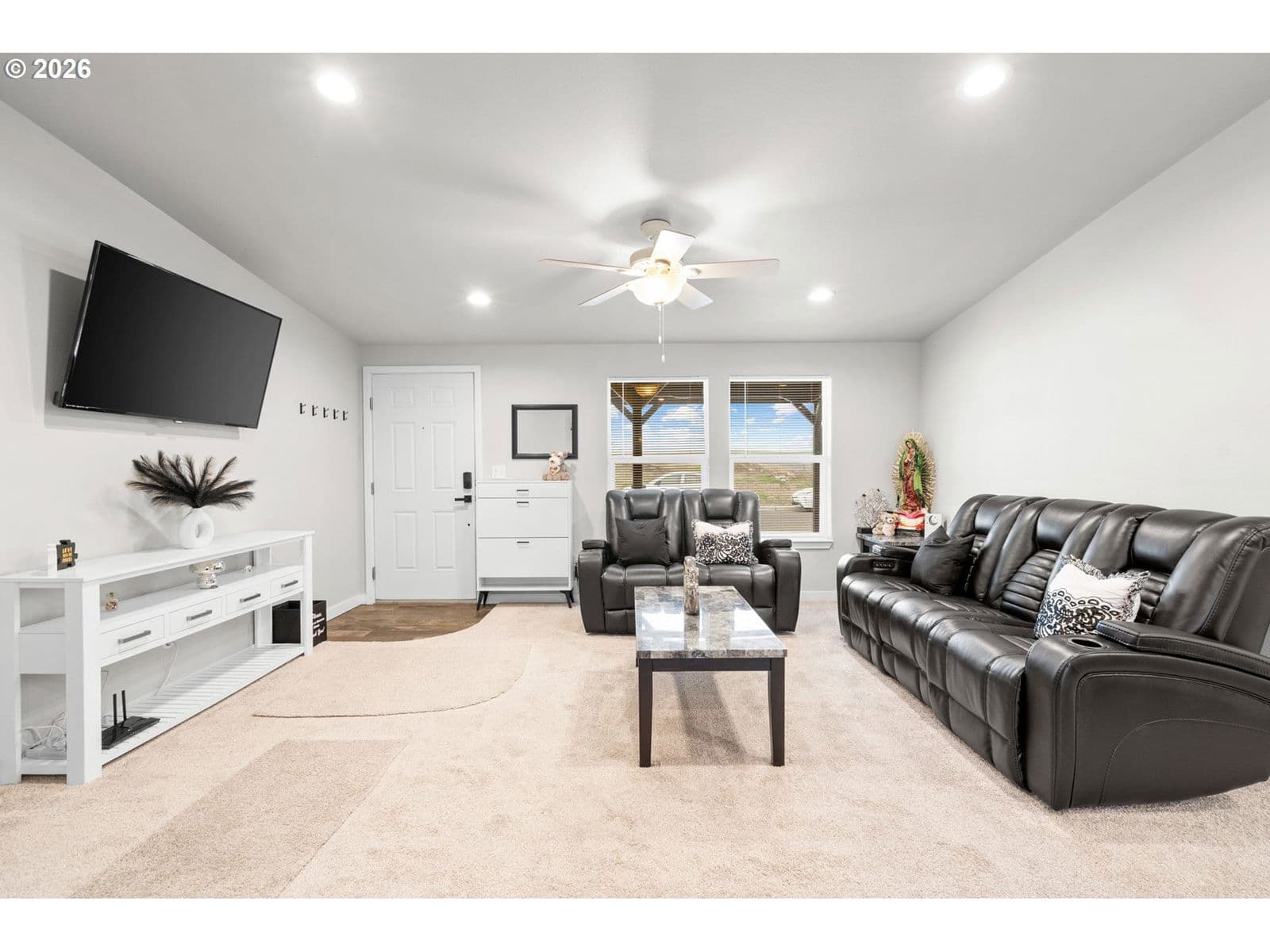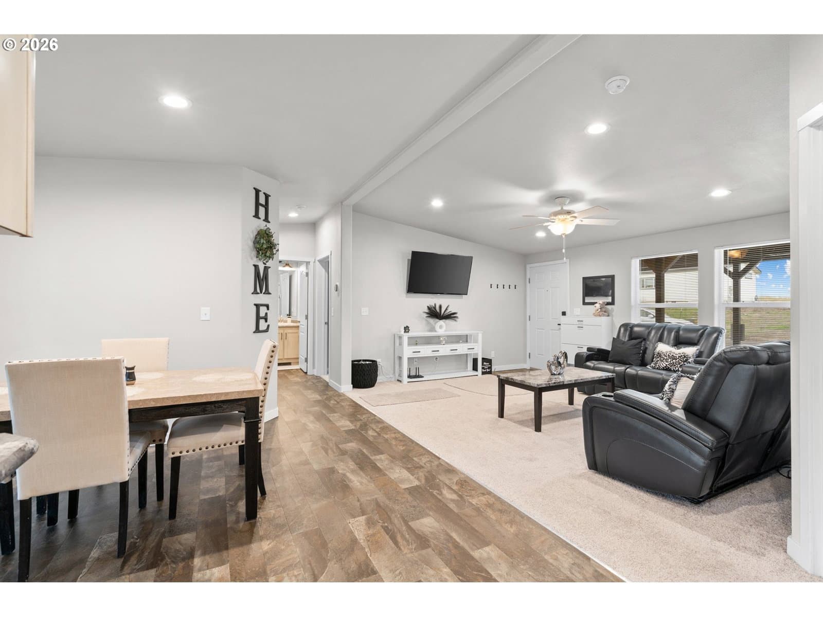 Welcome to this beautiful 2023 manufactured home, offering 1,296 sq ft of thoughtfully designed living space in immaculate, like-new condition. This 3-bedroom, 2-bath home is truly move-in ready and shows pride of ownership throughout. The spacious primary suite is privately located on the opposite side of the home from the two additional bedrooms, creating an ideal layout for comfort and privacy. The floor plan flows seamlessly into a clean, bright kitchen featuring stainless steel appliances, ample cabinetry, and an inviting space for everyday living and entertaining.Enjoy low-maintenance living with a xeriscaped front yard and a fully fenced backyard that’s been professionally landscaped, complete with underground sprinklers and a storage shed. Outdoor living is a dream with a large covered back patio, perfect for relaxing or hosting guests, along with a covered front porch for added curb appeal. New gutters add to the home’s already well-cared-for exterior.This super clean, well-maintained home offers the feel of new construction with all the upgrades already in place—don’t miss this opportunity!