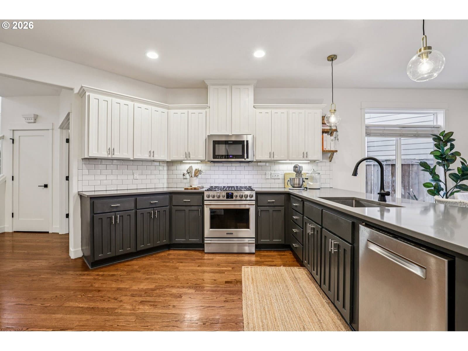 Gas Water Heater, Dishwasher, Disposal, Free-Standing Gas Range, Free-Standing Refrigerator, Microwave, Plumbed For Ice Maker