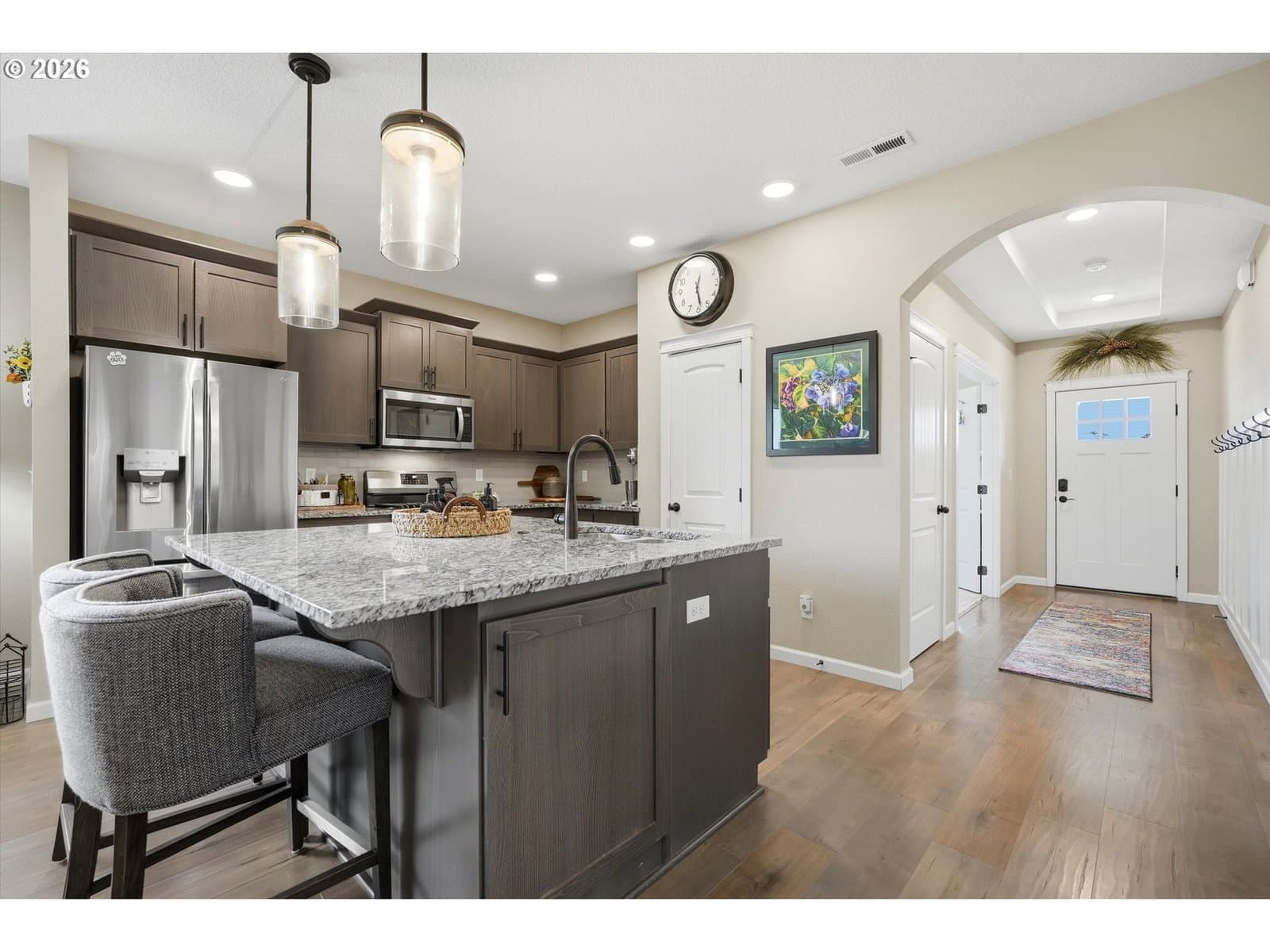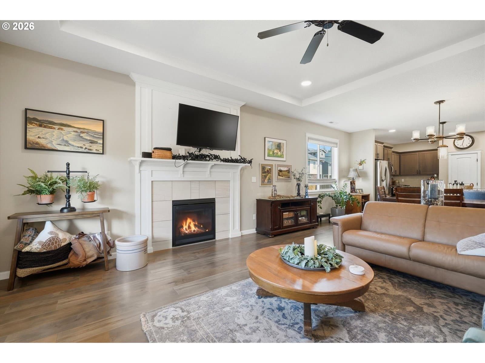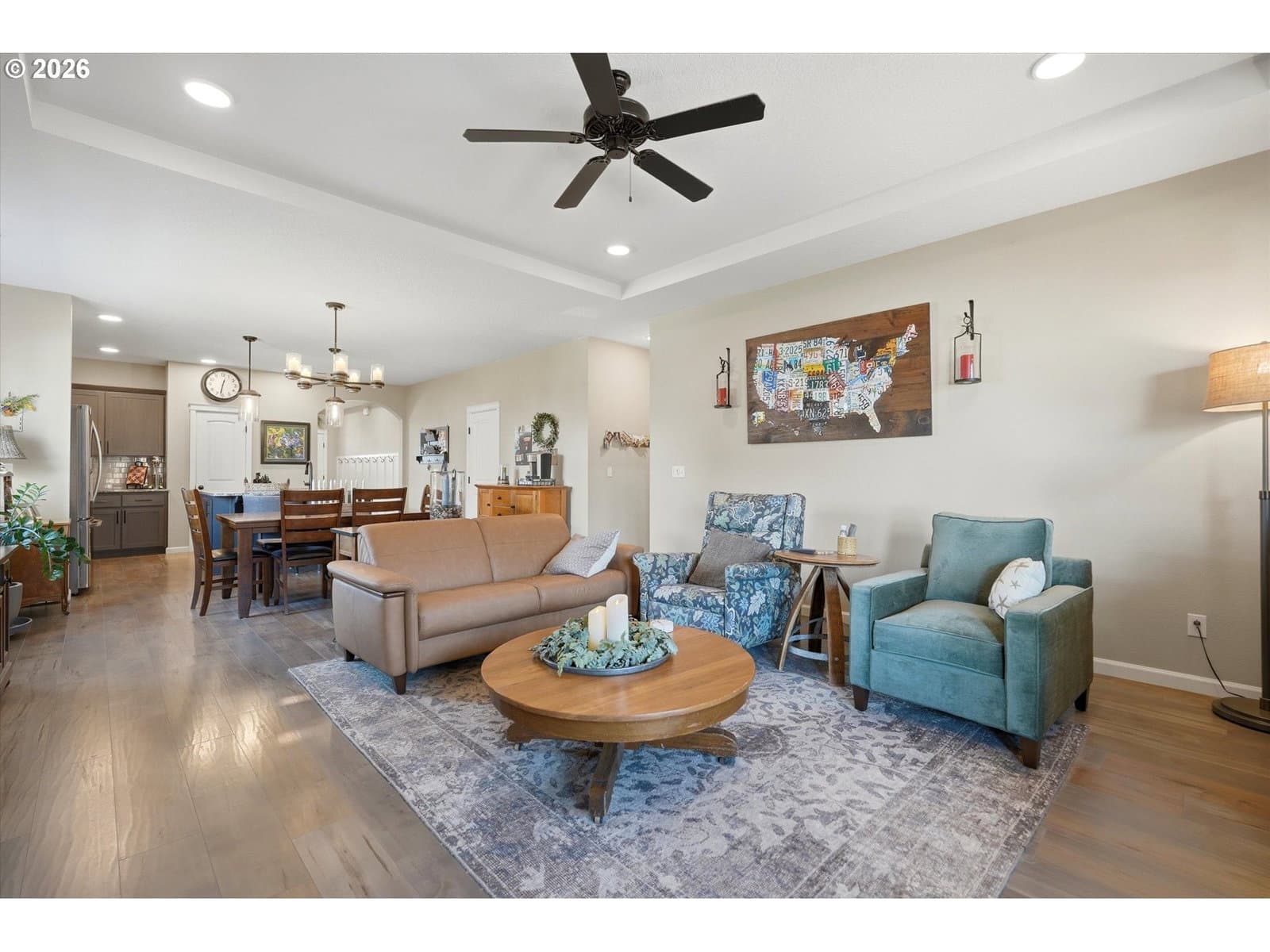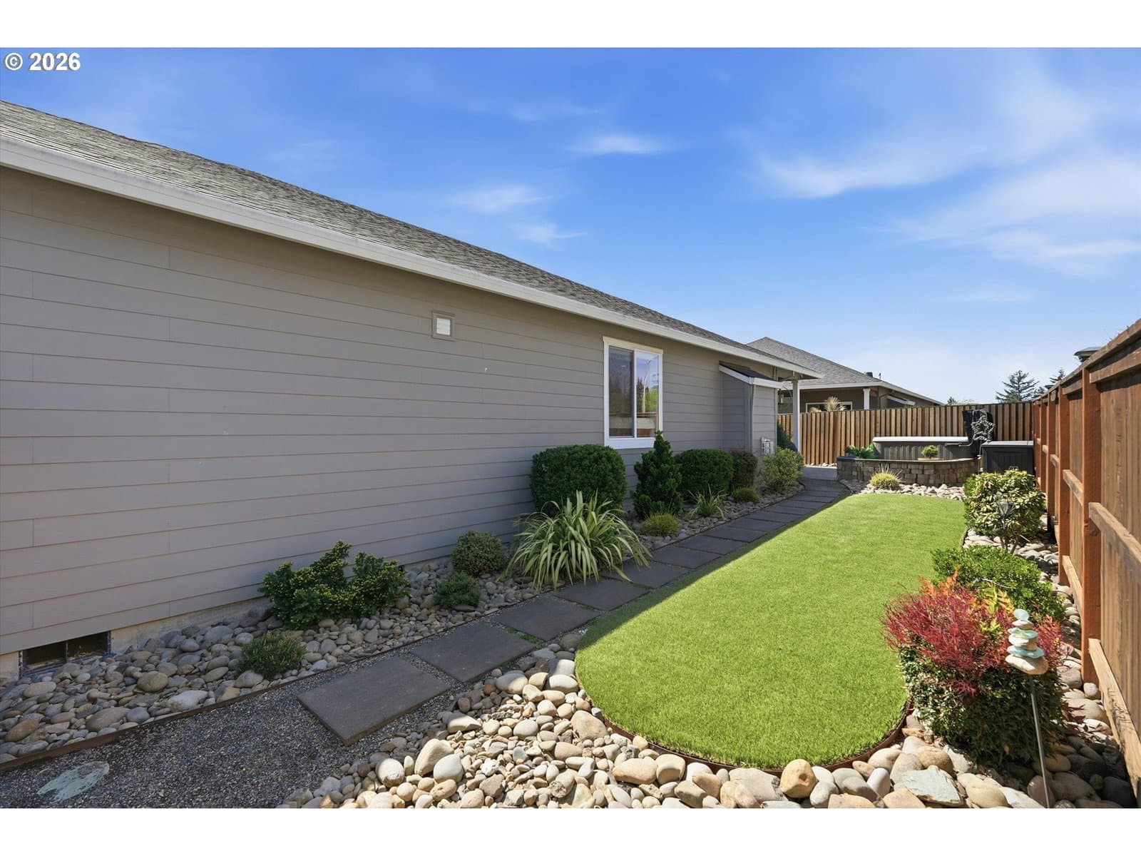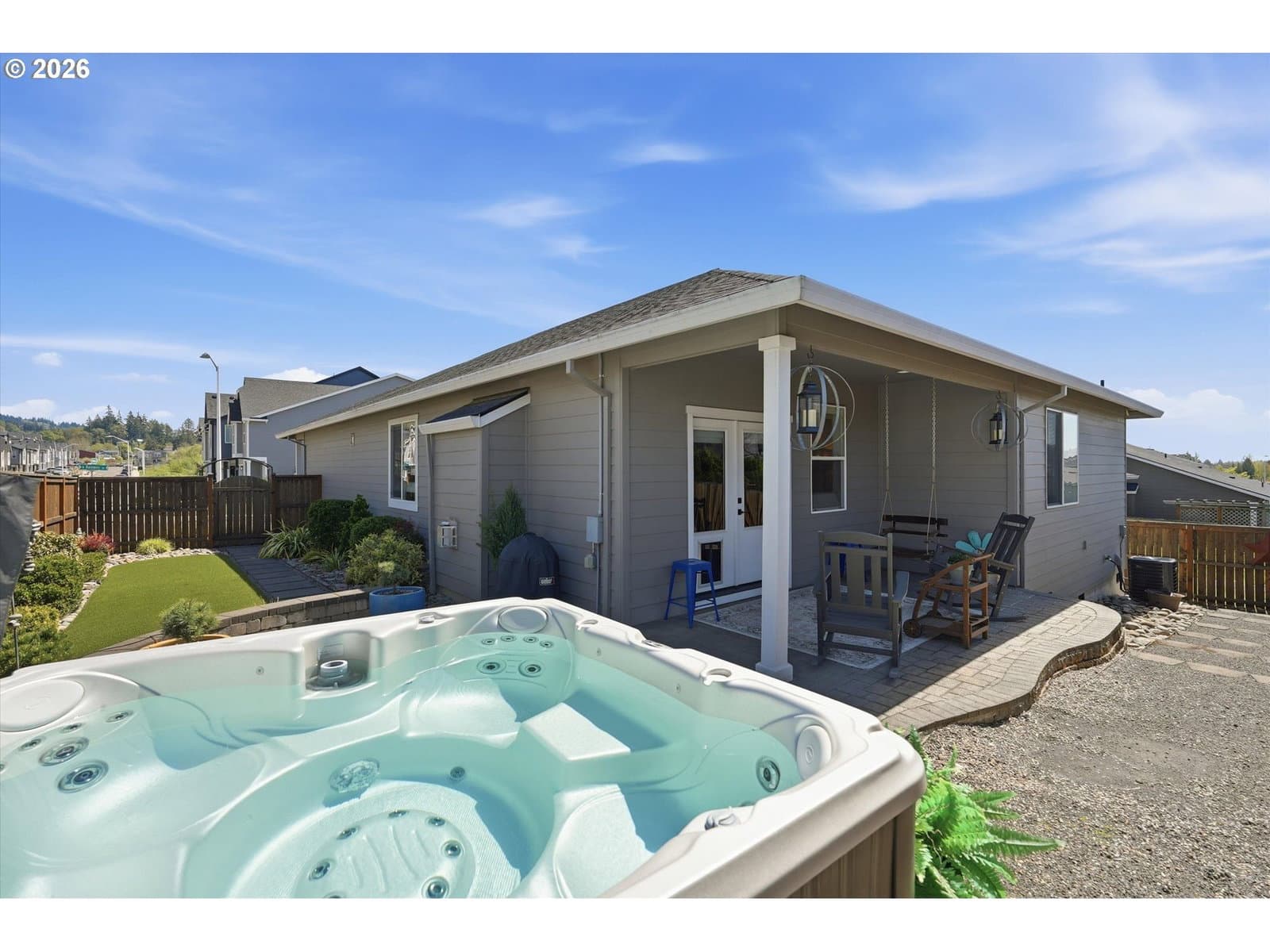 Discover this beautifully maintained single-level home in the Gracie's Landing of Newberg, Oregon in the heart of Oregon wine country. Offering 1,756 sq ft of thoughtfully designed living space, this home features 3 bedrooms, 2 bathrooms, plus a versatile office/den that can easily serve as a fourth bedroom. Step inside to an expansive open-concept floor plan filled with natural light. The inviting great room showcases a cozy gas fireplace, durable laminate flooring and elegant French doors that lead to a private patio—perfect for indoor-outdoor living. The kitchen is a standout with granite countertops, stainless steel appliances, a gas freestanding range, center island and spacious pantry which is ideal for entertaining or everyday living. Retreat to the spacious primary suite, complete with a walk-in closet and light-filled ensuite bath, offering comfort and privacy. Enjoy low-maintenance outdoor living with professionally designed landscaping, including turf, hardscaping, and a freestanding hot tub; perfect for relaxing year-round. Additional highlights include: solar panels (to be paid-off at close), new A/C unit and NO HOA. Located in a walkable Newberg neighborhood near schools, the Senior Center & parks. Just minutes from downtown Newberg shopping, dining and world-class Willamette Valley wineries. Experience the perfect blend of comfort, convenience and Pacific Northwest lifestyle living. Say YES to the address!
