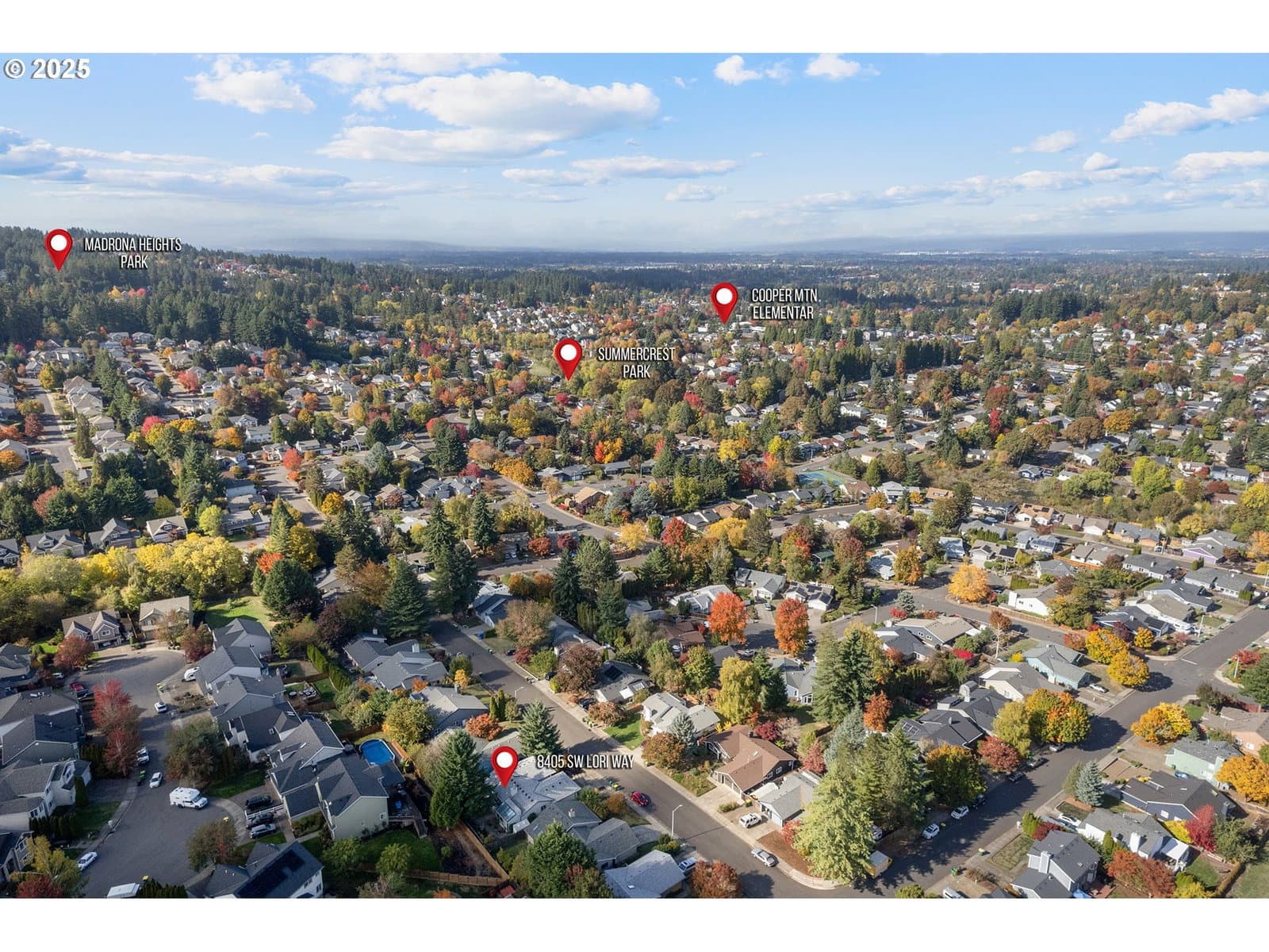 Smart and thoughtfully updated one-level home in a quiet neighborhood- yet easy access to all of the necessities. This home blends indoor and outdoor living with a spacious floorplan connecting an inviting living room with wood-burning fireplace, a large kitchen and spacious sunroom featuring a vaulted ceiling. Enjoy low-maintenance engineered hardwood flooring throughout and new tiled bathrooms. Host gatherings and celebrate occasions around the stylish bar connecting kitchen and living room spaces. The primary suite opens to the patio and backyard. The covered patio extends to a welcoming flag-stone fire pit area and relaxing vibe for evenings with you and your friends. Terraced garden areas and fully fenced backyard provide privacy and room to play. The spacious two-car garage is insulated and offers workshop space as well. Convenient access to local trails, Cooper Mountain Nature Park, highly-rated schools, shopping/dining, and major employers. This home lives large and all it needs is you!