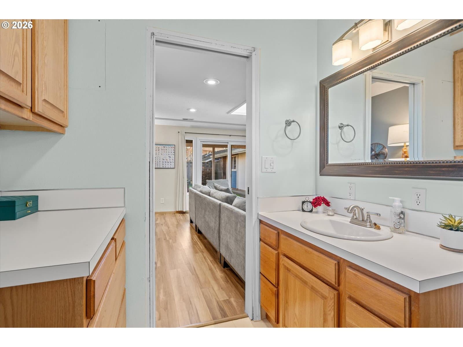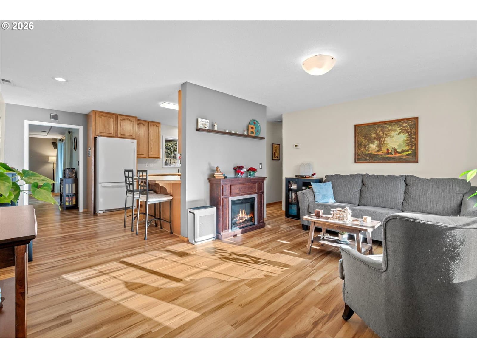 Welcome Home!! This is the kind of home that instantly feels inviting. A beautifully updated single-level ranch, ideally located near neighborhood parks and Glendoveer Golf course set on a rare, flat, spacious lot that truly sets it apart. Inside, you'll love the gorgeous hardwood floors, cozy electric insert fireplace, and a warm functional layout designed for both everyday living and easy entertaining. Sliding glass doors lead to a beautiful, flat backyard with a covered patio-perfect for hosting gatherings, summer BBQ's, or simply unwinding outdoors. One of the most charming and unique features of the homw? The third bedroom includes a custombookcase door, adding character, creativity, and a touch of fun- ideal for a home office,guest room, or private retreat!Home highlighte:-3 bedrooms, 2 Full,second bathroom is not in the official county records. bathrooms.-Custom bookcase door to third bedroom.-Updated single-level ranch layout.-Electric insert fireplace.-Dedicated laundry room with access to the 2-car garage,-Private, level, fenced backyard- perfect for entertaining and outdoor living.And as an added bonus, our trusted lender is offering incentives that can be used to buy down the interest rate or help with closing costs, creating an even more exciting opportunity for buyers.Warm, welcoming, and full of character- this home is ready for it's next chapter. Reach out today for more details or schedule a private showing.