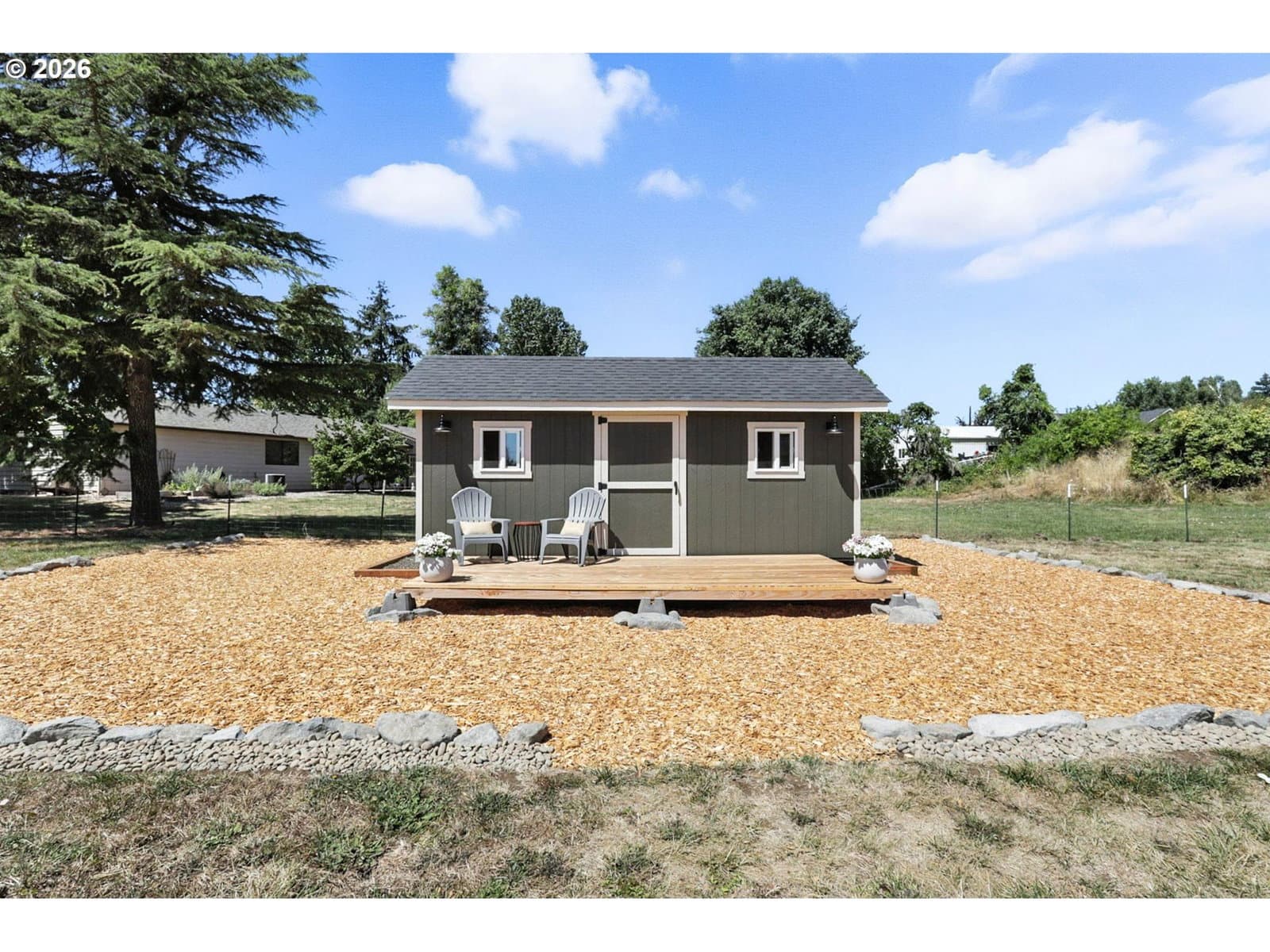 Better than new, single level custom built dream home on 1.29 acres, backs to Rickreall Creek. This 3 bedroom/2 full bath home seamlessly marries functionality and high-end design. The vaulted open concept great room/kitchen/dining space is perfect for entertaining and every day convenience. Large quartz island, professional grade stainless steel appliances, and a plethora of storage. Gorgeous floor to ceiling rock fireplace with large windows to take in the yard. The vaulted primary suite is a sanctuary with spa like ensuite. Oversized covered patio, 2 car Garage, workshop at yard level, shed and fire pit area, landscaped with drip system. Rare opportunity to own newer construction on a large lot but also be close to town.
