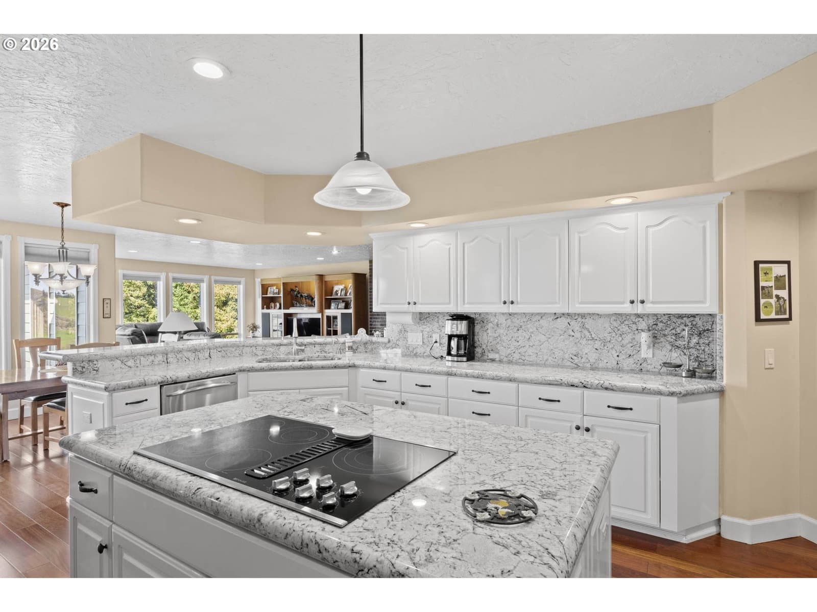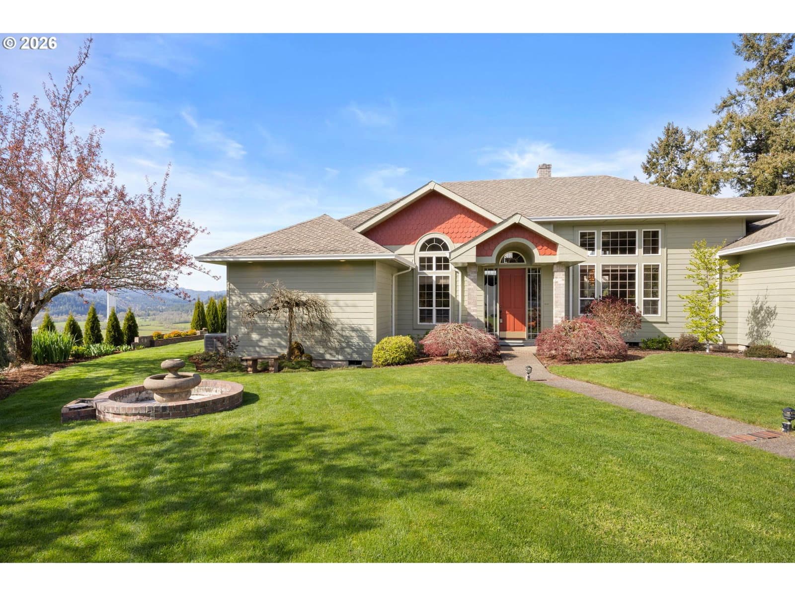 Private country living at its finest with this Hilltop Estate. Sweeping panoramic views from every window of this 1993 built 3 bedroom, 3 bathroom, 3378 sqft custom, one owner home. Maintained at the absolute highest standard of quality, this property looks as good now as it did brand new. Split bedroom floor plan, private master wing, grand entry with tile floor, ornate pillars, and soaring ceilings in the elegant family room with a cozy wood fireplace. Formal dining room offers tray ceiling, crystal chandelier, and abundant windows to let in all the natural light. Step into the chef's kitchen with classic white cabinets, elegant granite counters, stainless appliances, built-in oven and microwave, large cook island, and pantry, christened with under cabinet lighting and eat bar. Brazilian cherry hardwood flooring adorns the breakfast nook and living room, with a warm wood stove surrounded by a brick hearth and views of the valley. Hardwood floors continue down the hallway and into the oversized guest bedrooms, spacious laundry room with overflow refrigerator and abundant cabinet storage, full guest bath, and office nook. The master wing is a real gem with tray ceiling, hardwood floors, tile bathroom and Jacuzzi tub surround, walk in shower, double sink vanity, and double walk-in closets. Outside offers some of the most impeccably maintained grounds and mature landscape around the home, with automatic irrigation. There is a 2013 built 20x45 finished RV garage with power and water connections. Also a 28x50 workshop shop with bathroom and abundant storage. The front 30 acres produces approx 30-50 tons (200 round bails) of hay annually. Next to the pasture are a 50x50 metal barn with stalls and corral, and a 24x36 hay storage barn. Picturesque working ranch property centrally located between Eugene and Roseburg, with quick 5 minute access to I5. Private, high-end, well maintained, paved drive, everything you've been looking for and more. Call today for a private tour!