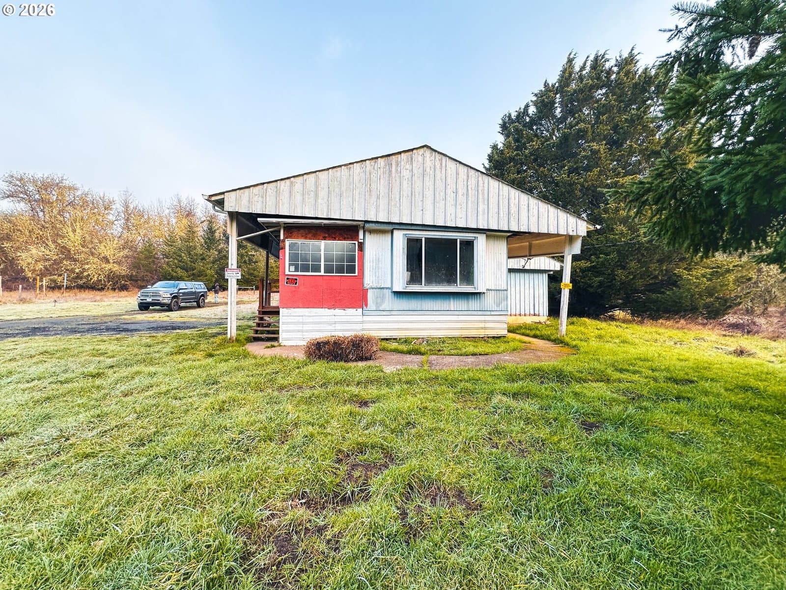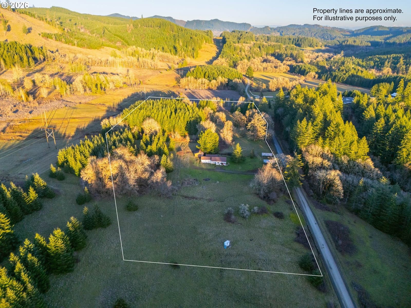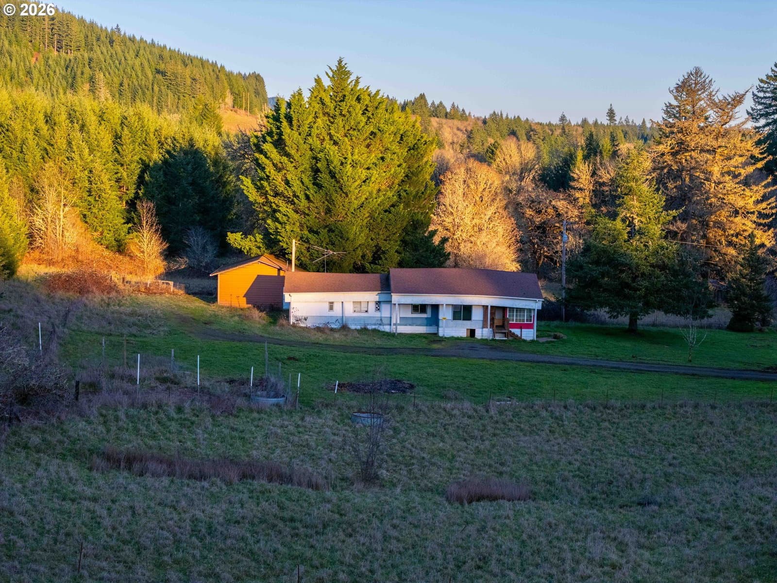 Discover the perfect blend of pastoral charm and forest serenity at Harris Farm and Forest. Nestled in the heart of Benton County, this 10-acre property in Philomath offers a rare opportunity to build your dream home and enjoy a peaceful country lifestyle. The property features a beautiful mix of 6 acres of lush pasture and meadows weaving through 3.5 wooded acres of majestic tall oaks and Douglas-firs. With three seasonal streams and the soothing sounds of Marys River just across the road, the natural ambiance is unmatched. The land is level to gently sloping with southern exposure at a 556–612 ft elevation, featuring high-quality Panther, Abiqua, and Jory silty clay loams perfect for farming or gardening. You'll enjoy ideal privacy as you're surrounded by industrial forestland on three sides with private ownership across the road. This property is perfectly positioned 9 miles to Philomath, 20 minutes to Corvallis, 1 hour to Salem or Eugene, and just 45 minutes west to the coast at Newport. I-5 is 36 miles east. The groundwork is already laid for your vision with a 1977 manufactured home (3-bed, 2-bath, 1,604 sq. ft. with addition) that holds the replacement rights for a new residence. Septic, well, and power are already connected with easy entry via a rocked, County-maintained road. Additional improvements include a versatile 3-bay steel building with one bay featuring a concrete floor and two with gravel, plus three additional storage sheds. Whether you're looking for a farmstead, a private woodland getaway, or the site for your custom-built home, Harris Farm and Forest is ready for its next chapter. Shown by appointment only. Contact a Broker to view the video, property records, interactive map with panoramic viewer, more photos, and to schedule a showing. County has said the home is replaceable however, Buyer to do their own due diligence with Benton County regarding the ability to replace the dwelling.