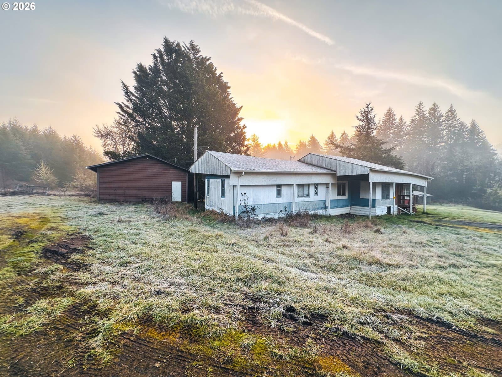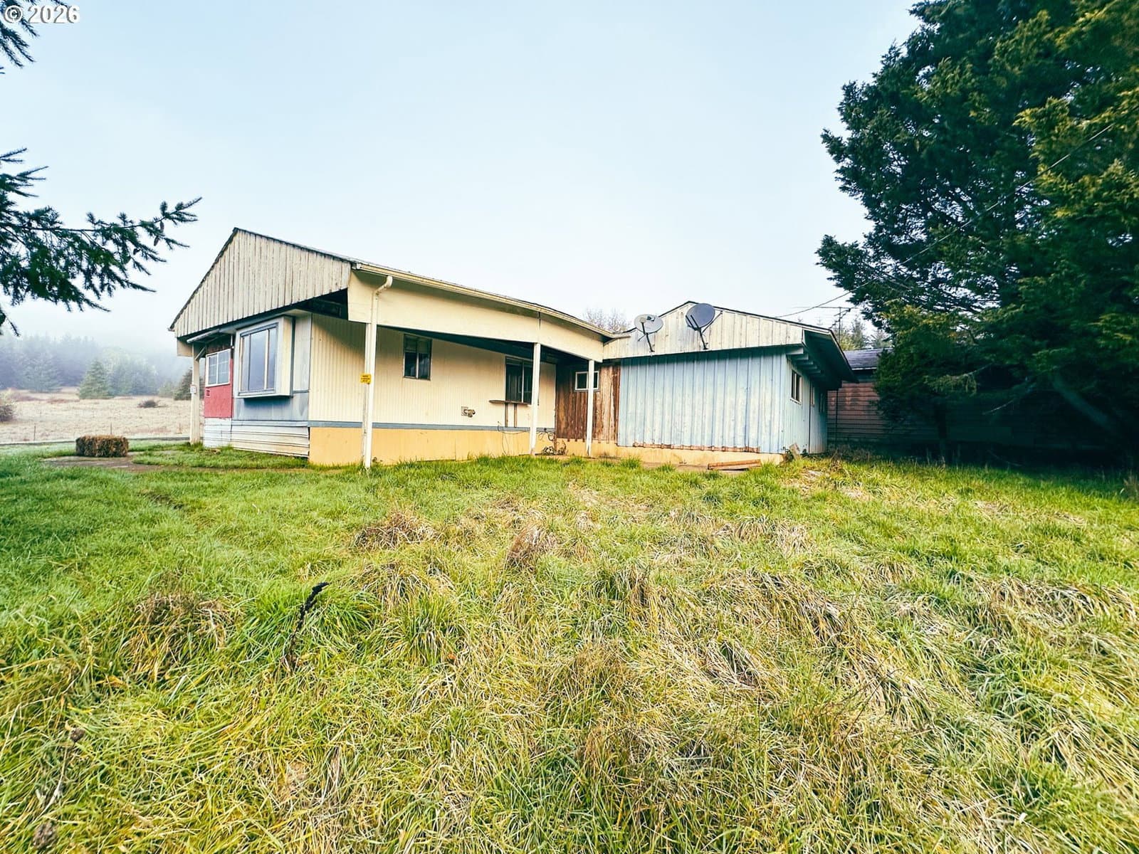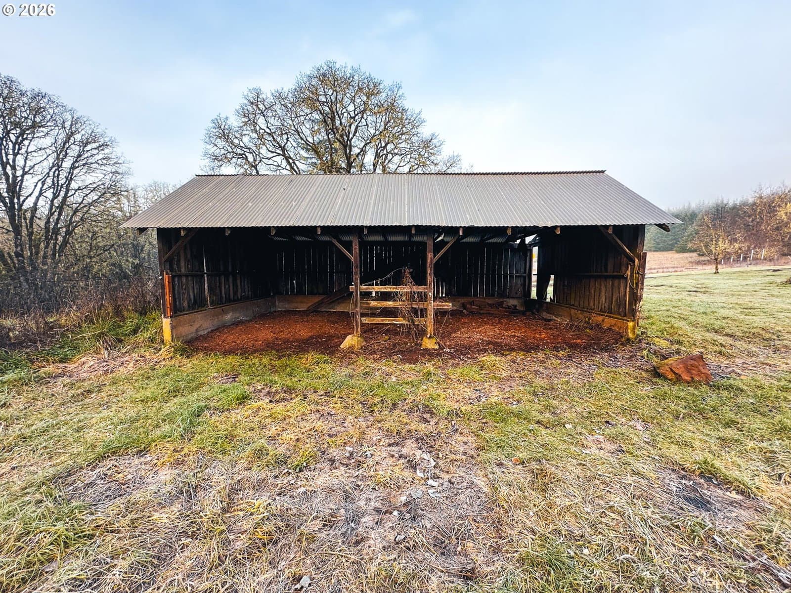 Discover the perfect blend of pastoral charm and forest serenity at Harris Farm and Forest. Nestled in the heart of Benton County, this 10-acre property in Philomath offers a rare opportunity to build your dream home and enjoy a peaceful country lifestyle. The property features a beautiful mix of 6 acres of lush pasture and meadows weaving through 3.5 wooded acres of majestic tall oaks and Douglas-firs. With three seasonal streams and the soothing sounds of Marys River just across the road, the natural ambiance is unmatched. The land is level to gently sloping with southern exposure at a 556–612 ft elevation, featuring high-quality Panther, Abiqua, and Jory silty clay loams perfect for farming or gardening. You'll enjoy ideal privacy as you're surrounded by industrial forestland on three sides with private ownership across the road. This property is perfectly positioned 9 miles to Philomath, 20 minutes to Corvallis, 1 hour to Salem or Eugene, and just 45 minutes west to the coast at Newport. I-5 is 36 miles east. The groundwork is already laid for your vision with a 1977 manufactured home (3-bed, 2-bath, 1,604 sq. ft. with addition) that holds the replacement rights for a new residence. Septic, well, and power are already connected with easy entry via a rocked, County-maintained road. Additional improvements include a versatile 3-bay steel building with one bay featuring a concrete floor and two with gravel, plus three additional storage sheds. Whether you're looking for a farmstead, a private woodland getaway, or the site for your custom-built home, Harris Farm and Forest is ready for its next chapter. Shown by appointment only. Contact a Broker to view the video, property records, interactive map with panoramic viewer, more photos, and to schedule a showing. County has said the home is replaceable however, Buyer to do their own due diligence with Benton County regarding the ability to replace the dwelling.