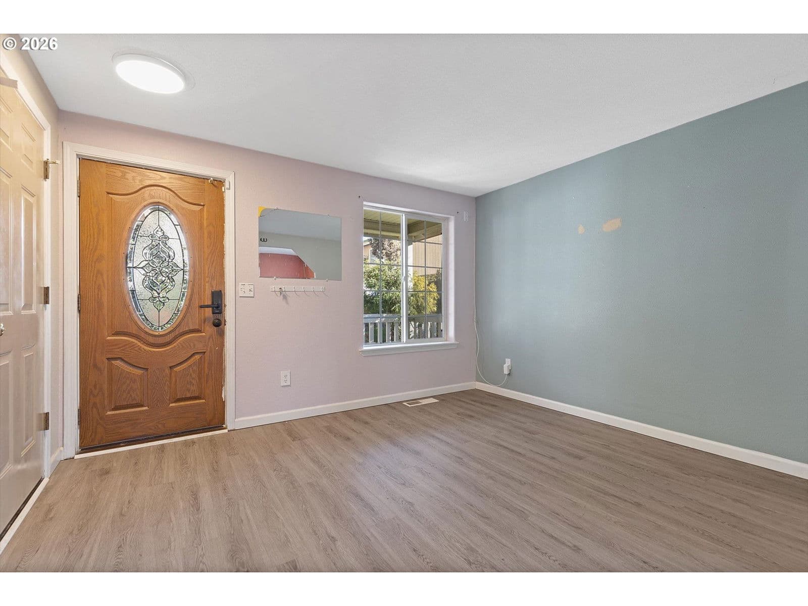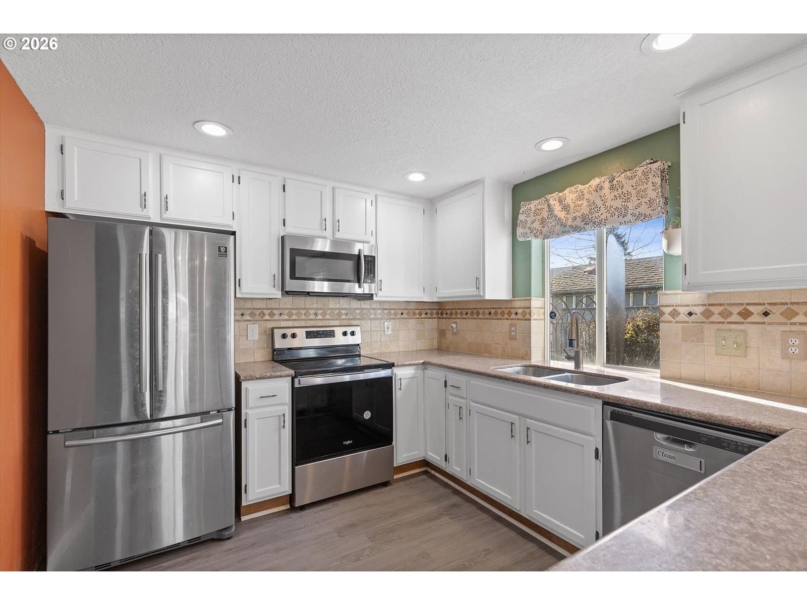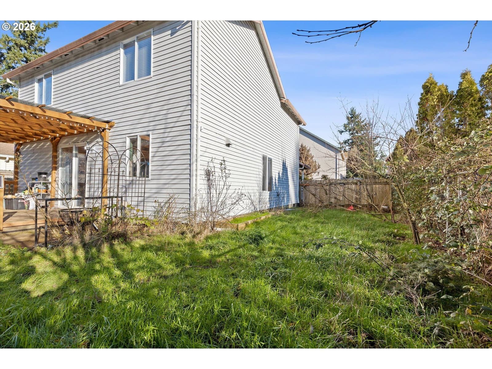 Charming 4 bedroom 2 and a half bath home offering well designed living space. This inviting residence features a thoughtful layout with formal living and dining areas, highlighted by laminate flooring that adds warmth, durability, and a cohesive flow throughout the main level. The updated kitchen is both functional and stylish, showcasing granite countertops, stainless steel appliances, ample cabinetry, and generous counter space, making it ideal for everyday living as well as entertaining. The kitchen opens seamlessly to the comfortable and welcoming family room, creating a natural gathering space for relaxation or hosting guests. Large windows provide excellent natural light, enhancing the home’s open and airy feel. Sliding glass doors extend the living space outdoors to a fully fenced backyard, offering privacy and versatility. The covered patio is perfect for year-round outdoor dining, barbecues, or simply enjoying the Pacific Northwest seasons, while the yard provides room for gardening, play, or pets. Upstairs, the primary bedroom suite serves as a private retreat with vaulted ceilings, a walk-in closet, and a well-appointed ensuite bathroom. Three additional bedrooms offer flexibility for guest rooms, home offices, or hobby spaces, complemented by a convenient full bath and a main-level powder room. [Home Energy Score = 7. HES Report at https://rpt.greenbuildingregistry.com/hes/OR10085881]