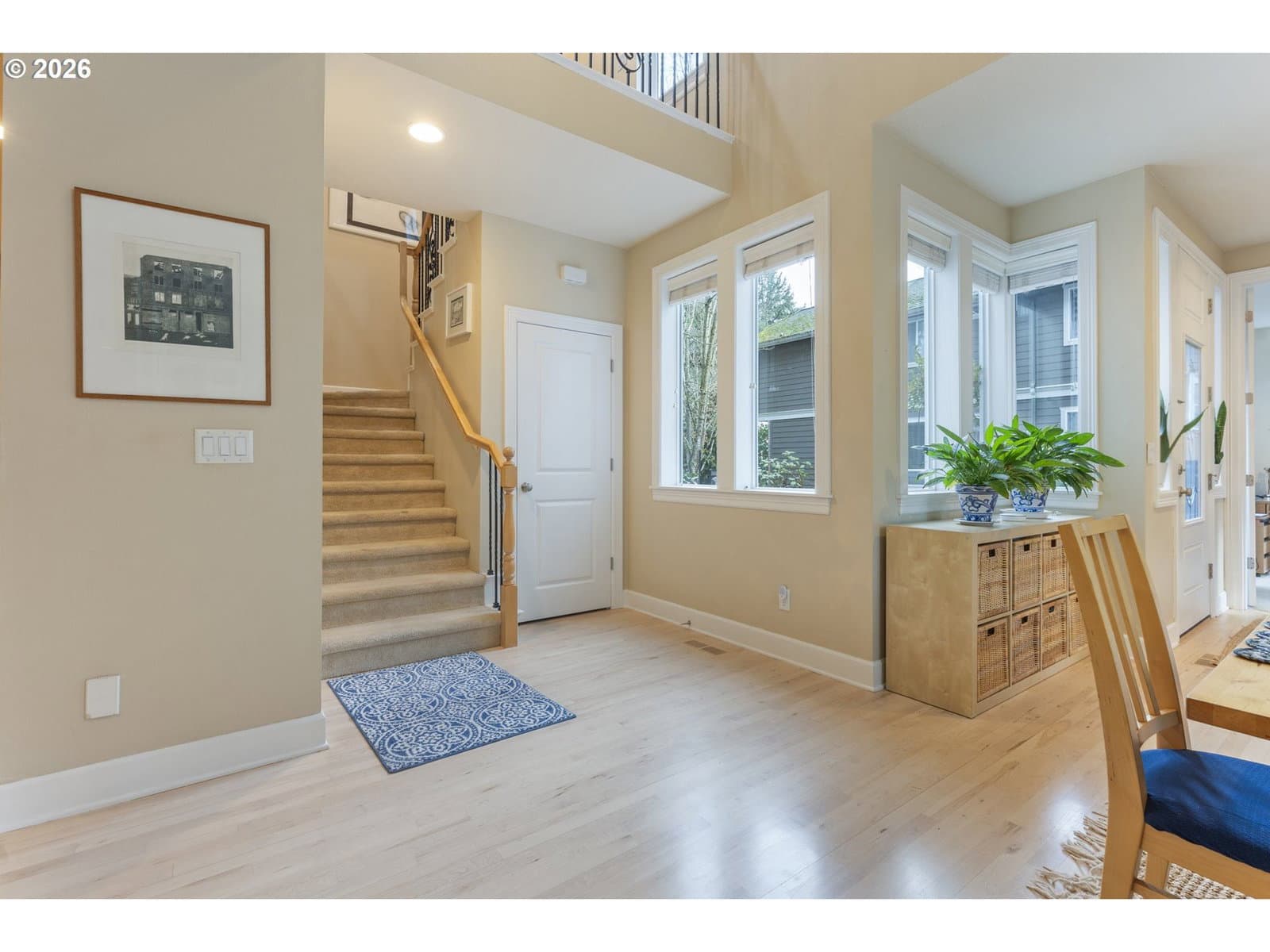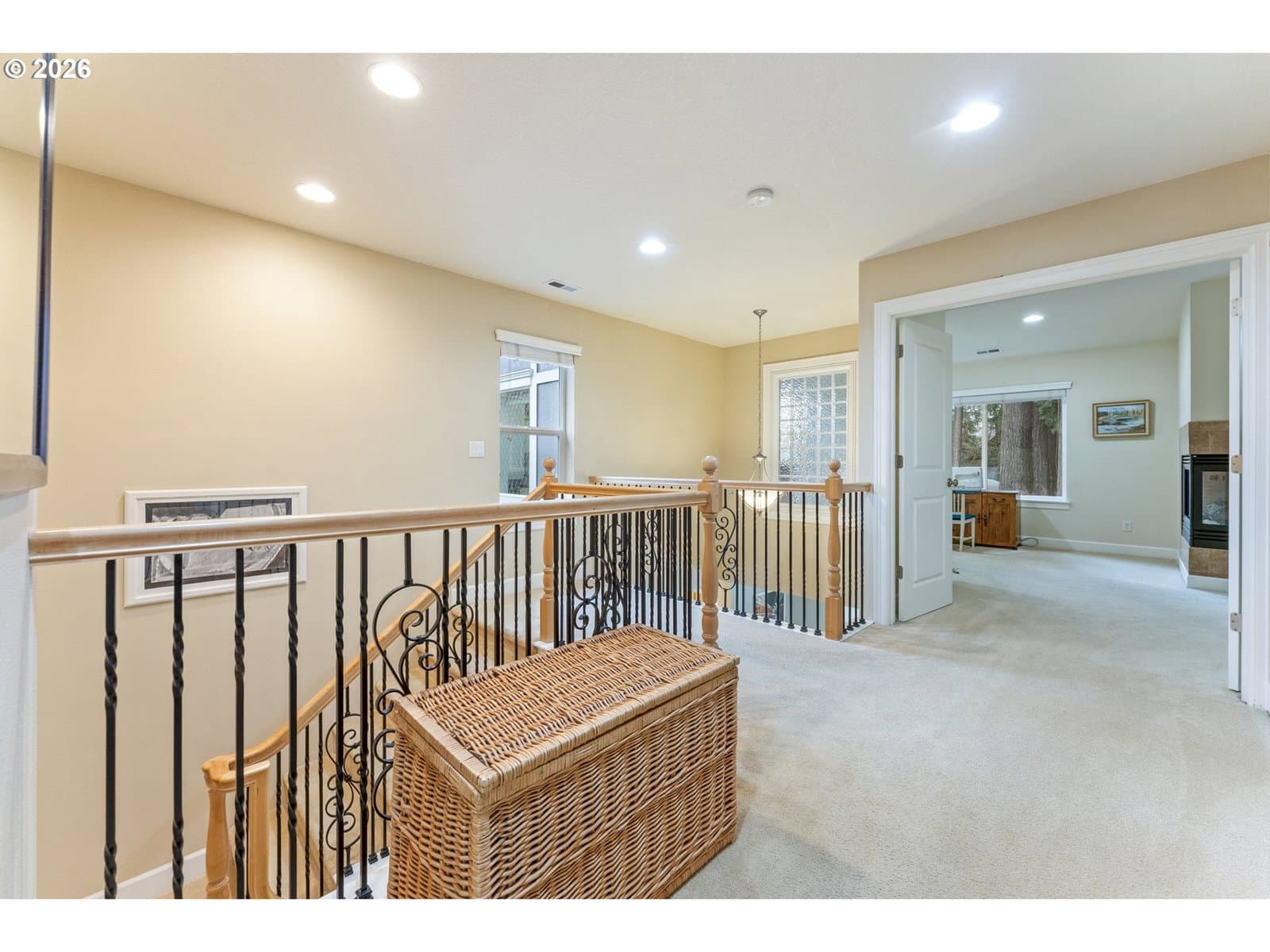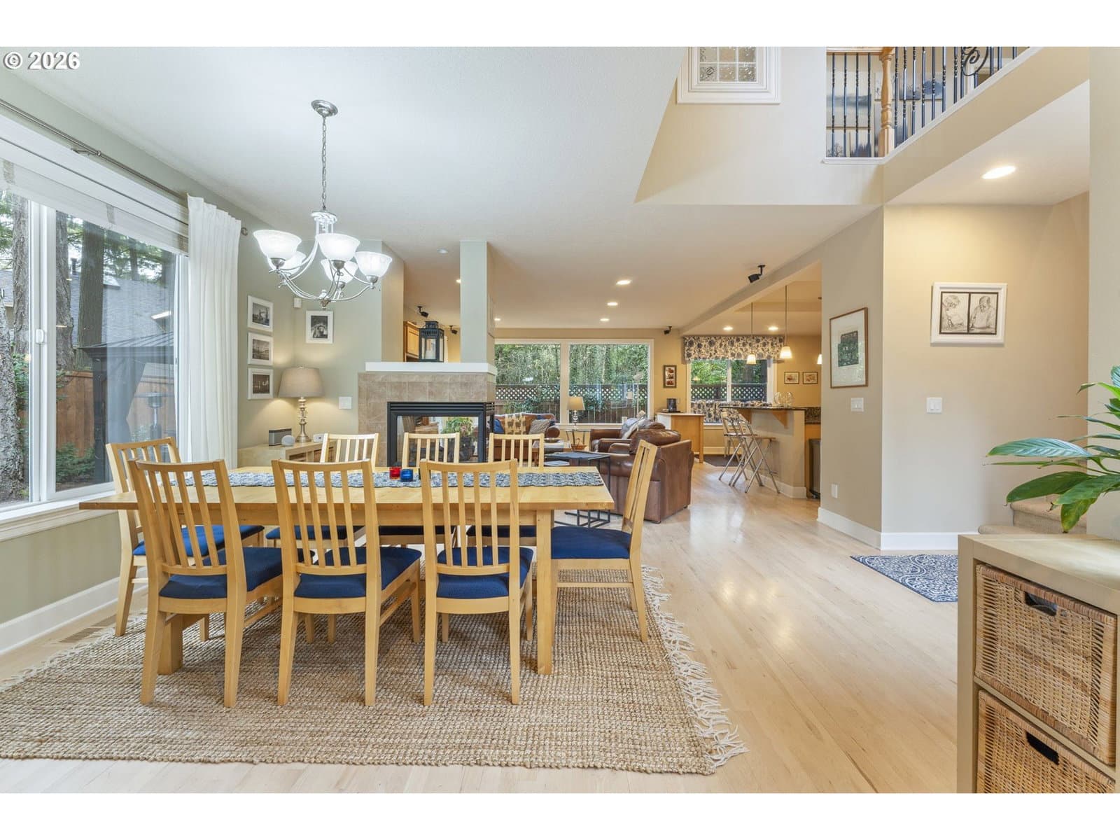 Better than new and tucked into the desirable Brentwood neighborhood of Lake Oswego, this custom-built home offers privacy and peaceful adjacent wooded open space. With 4 bedrooms and 3 full baths, the layout is designed for comfortable, everyday living.The main level features an open floor plan with wood floors throughout and a warm, welcoming entry. A private den just off the foyer provides a quiet space for work or hobbies, set apart from the main living areas. The spacious kitchen overlooks the dining nook and family room and is ideal for entertaining, with an L-shaped island with seating, granite countertops, custom cabinetry, built-in microwave and oven, chef’s range, and newer refrigerator. The family room includes a built-in entertainment center and a cozy three-sided gas fireplace shared with the dining room. Upstairs, the generous primary suite feels like a retreat, complete with a gas fireplace, sitting area, very large bath, and walk-in closet. The vaulted bonus room is pre-wired for surround sound and offers tranquil views of the surrounding open space, creating a very private setting. Also upstairs, you will find two smaller bedrooms, a spacious hallway bath, and the laundry room with a sink. Meticulously maintained and thoughtfully updated, this home truly is move-in ready. Recent improvements include a new furnace in 2025, along with newer roof, gutters, exterior paint, and appliances. A rare opportunity for easy living in a prime Lake Oswego location. Property includes access to three coveted boat lake easements: Goodin, Springbrook, and Summit Court. Common area maintenance, insurance on park, management.There is no website for the HOA.