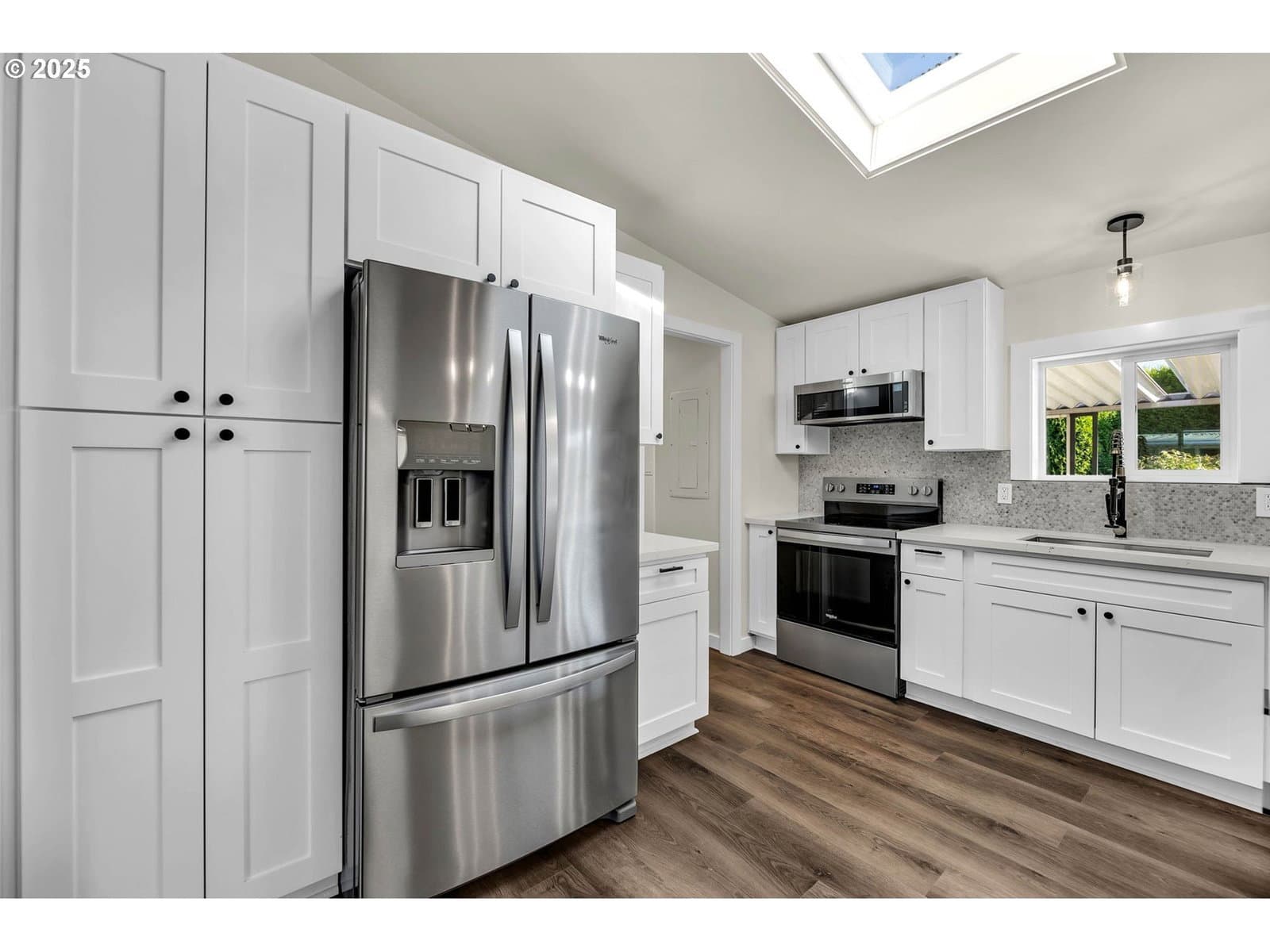 Welcome to your beautifully renovated dream home! This meticulously updated property offers a fresh, modern feel with high-end finishes throughout. Step into the stunning new kitchen, complete with brand-new appliances. The fully remodeled bathrooms are equally impressive, featuring elegant fixtures and finishes. Enjoy all-new flooring and fresh interior paint that give the entire home a crisp, clean look. A new roof and skylights provide added peace of mind, while abundant natural light brightens both the formal living room and the cozy family room—perfectly accented by a charming wood-burning fireplace. Primary bedroom has ensuite bath with walk in shower. Outside, you'll find a low-maintenance yard ideal for easy living. Wheelchair ramp on on side of home. Monthly space rent of $900.00 per month. As part of the community, enjoy access to a well-appointed clubhouse featuring a pool, spacious kitchen, library, meeting room, and more!