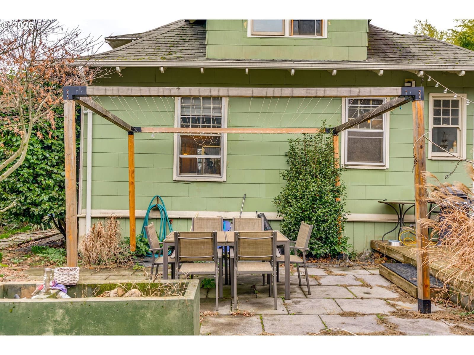 In the heart of NE’s beloved Sabin neighborhood, this quintessential Craftsman captures everything people love about living here. Elevated above the street for a sense of privacy, the home welcomes you with a wide front porch—perfect for a porch swing, good conversation, and slow summer evenings.Inside, the classic foyer and staircase set the tone. Original hardwood floors, picture railing, and leaded glass details bring warmth and historic charm. French doors open to a light-filled living room that feels both spacious and cozy, while graceful coved arches lead to the formal dining room—ideal for dinner parties, holiday traditions, and lingering meals with friends.The updated kitchen blends character and function with an island, stainless steel appliances, and bright energy. Just beyond, a flexible nook can serve as a sunny breakfast space, pantry extension, creative studio, or tucked-away work-from-home spot. A convenient mudroom with powder room leads directly to the backyard—perfect after time in the garden.A main-level bedroom with built-in wardrobe and closet works beautifully as a guest room, office, or cozy retreat. Upstairs, two spacious bedrooms feel bright and peaceful alongside a full bath with walk-in shower and soaking tub. The landing and bedroom alcoves are perfect for a reading chair or window-seat hideaway.Outside, the backyard feels like a private retreat. Enjoy the back deck, gather under the pergola-covered patio, or relax on the lawn surrounded by mature plantings. Raised garden beds and winding rock pathways add to the charm.The unfinished basement offers abundant storage, laundry space, and future potential, plus a unique tunnel passage leading directly to the garage—no more soggy groceries.Just blocks from the vibrant Alberta Arts District and close to Irving Park, with easy access to MLK and the rest of the city, this home offers the perfect blend of historic charm and Portland living. [Home Energy Score = 3. HES Report at https://rpt.greenbuildingregistry.com/hes/OR10245458]