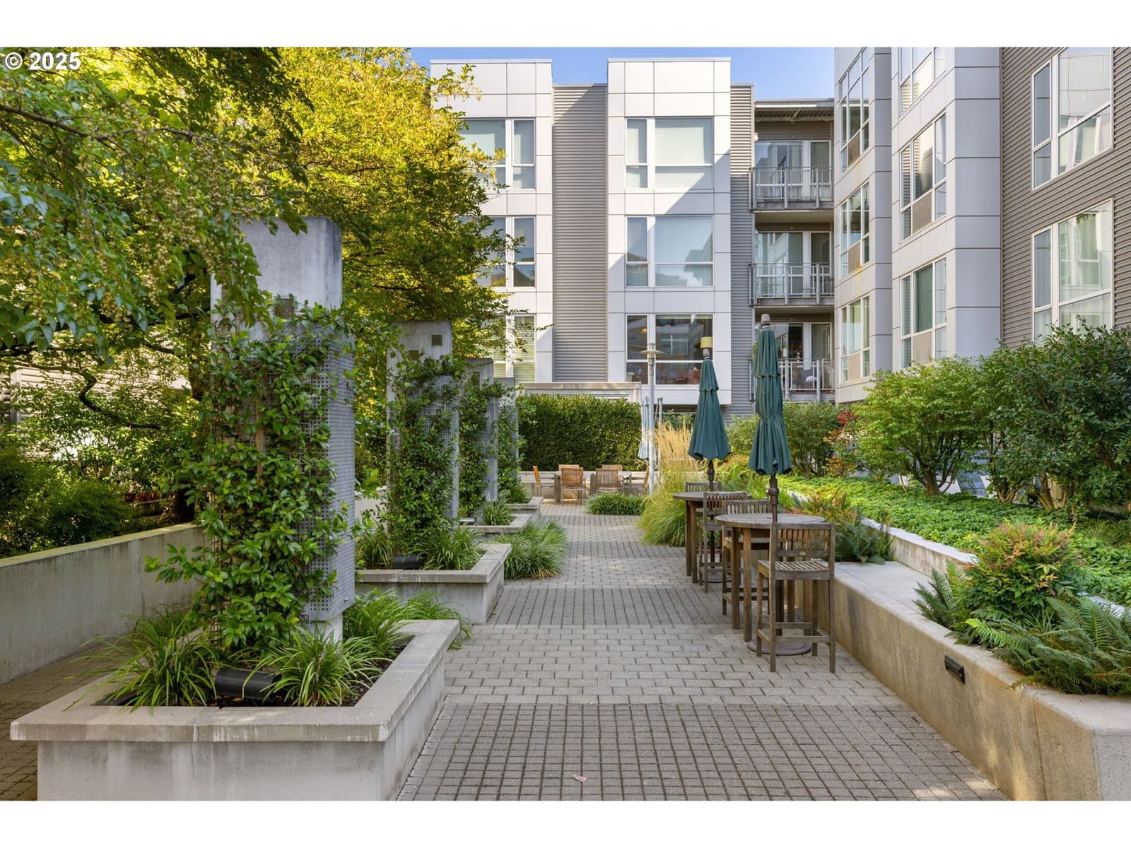 Experience modern Portland living with comfort and calm in this stylish 2-bedroom, 2-bathroom condo at 1125 NW 9th Ave, perched on the 4th floor overlooking the peaceful courtyard and Tanner Springs Park. With tree-lined views and an accessible Pearl District location, this home offers the perfect mix of city energy and everyday ease—ideal for both busy professionals and those looking to slow down and enjoy the good life. Inside, the open layout feels bright and inviting, featuring newer flooring, great natural light, and a newer mini-split system for year-round comfort. The seamless flow between kitchen, dining, and living areas makes it just as easy to host friends as it is to unwind quietly at the end of the day. The primary suite includes an ensuite bath and walk-in closet, while the second bedroom and full bath offer flexibility perfect for guests, a home office, or a creative space. In-unit laundry adds convenience, while thoughtful updates make this condo truly move-in ready. Community perks include a fitness center and community room, great for socializing, staying active, or meeting neighbors. This unit also includes two deeded parking spaces, a rare bonus in the Pearl District that adds everyday ease and long-term value. You’re moments from coffee shops, restaurants, grocery stores, and boutiques, with public transportation nearby and quick access to the Broadway Bridge, connecting you easily to Portland’s eastside neighborhoods. Whether you’re starting your next chapter or simplifying to enjoy more of what matters, this Pearl District condo blends urban convenience, quiet comfort, and timeless livability—your own peaceful retreat in the heart of downtown Portland.