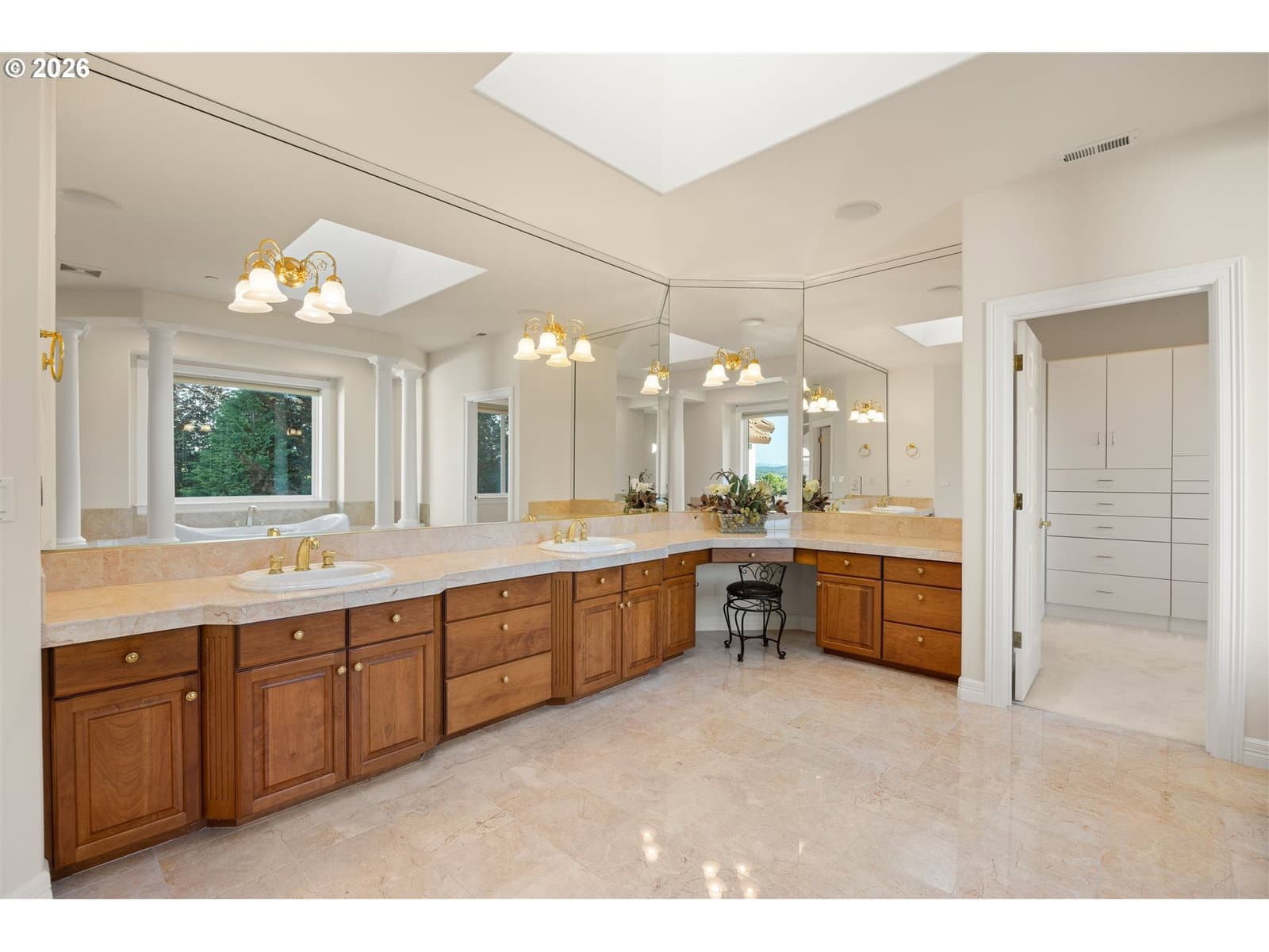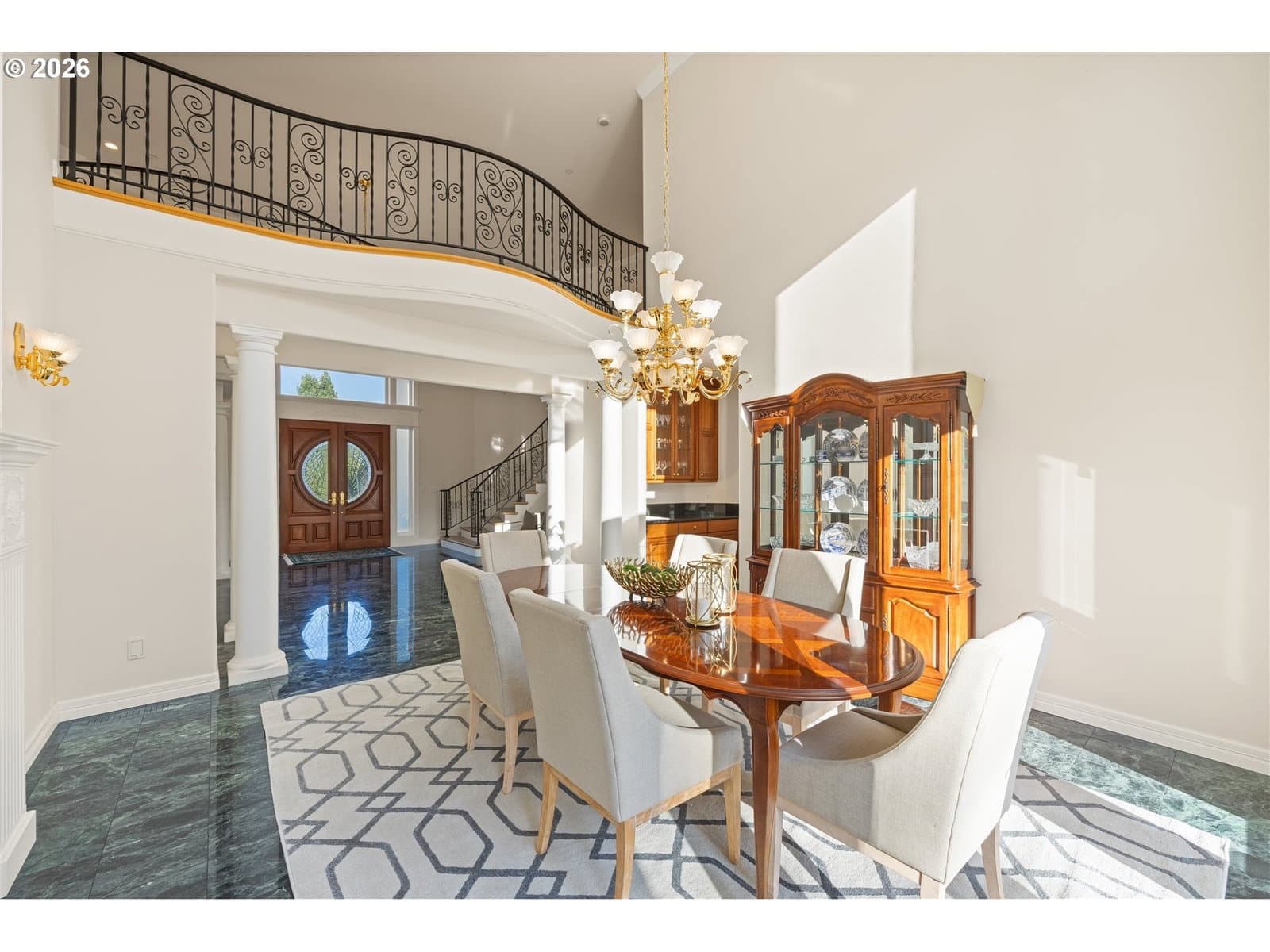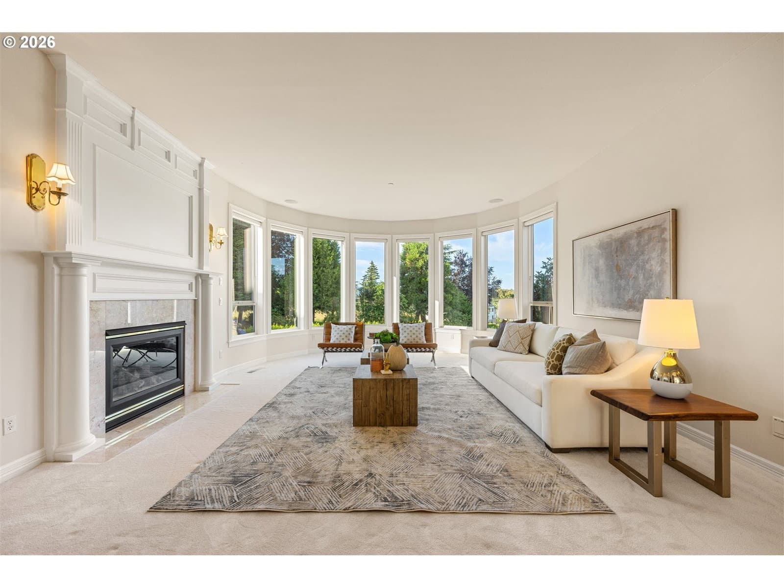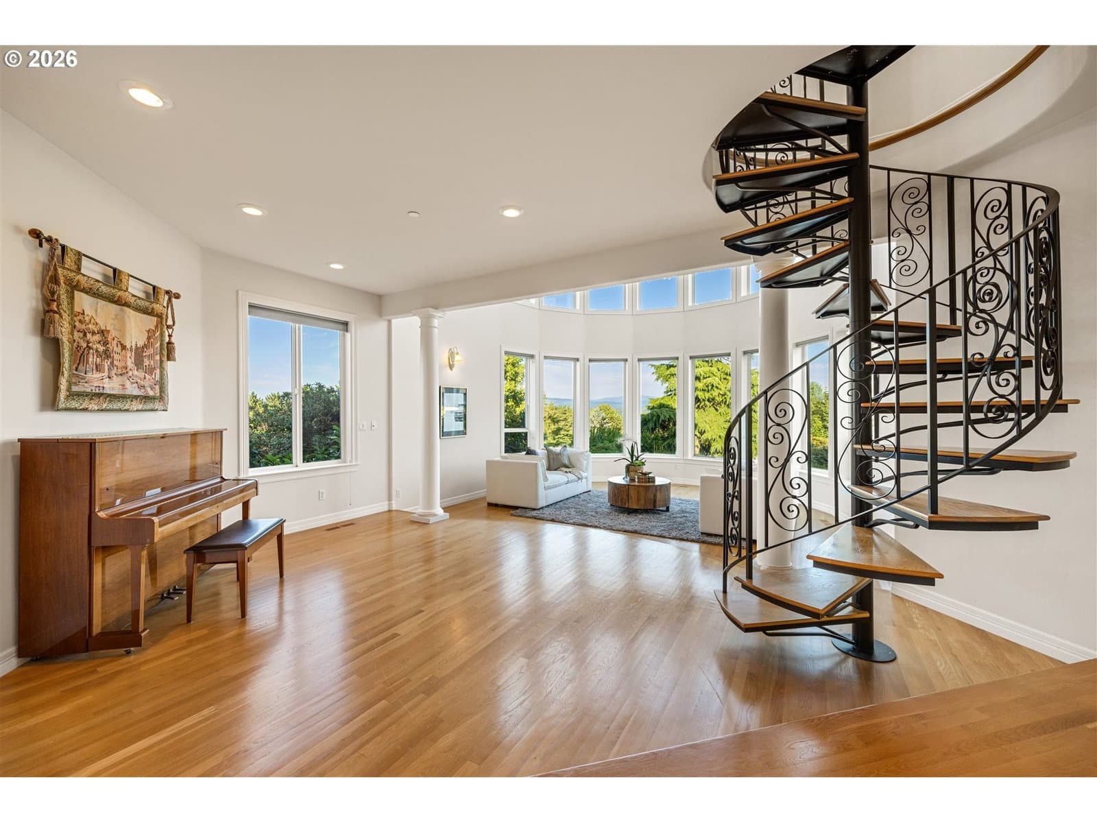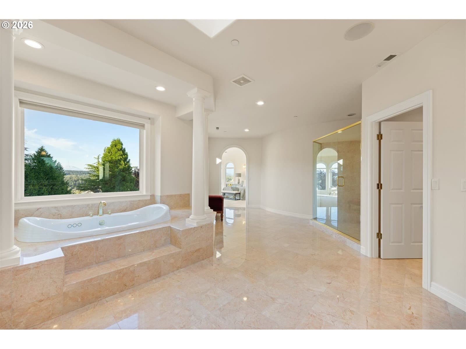 Timeless elegance meets Spanish-inspired charm in this stunning Ridgefield estate perched above the Lewis River. Set on 15 acres of level grounds, the home showcases classic stucco, concrete tile roofing, graceful arches, and expansive picture windows framed to capture sweeping views of Mt. St. Helens, Mt. Adams and Mt. Hood and the river valley from nearly every room. Enter through a dramatic marble foyer and staircase into formal living and dining rooms and a private office, all detailed with intricate moldings and custom mantles. The living room centers on a grand fireplace with a postcard view of Mt. St. Helens. The U-shaped kitchen offers abundant counter and cabinet space, blending functionality with timeless design.Generous bedrooms provide peaceful retreats; the primary suite is a true sanctuary with a fireplace, walk-in closet, luxurious en-suite bath and jetted tub, and unforgettable vistas of the Lewis River Valley and Mt. St. Helens. Guests will delight in choosing which panoramic view—Helens or Hood—wins their vote.Outdoors, 15 acres invite endless possibilities for gardening, recreation, or simply enjoying serene privacy, while still being minutes from I-5 and Ridgefield’s growing retail amenities. An attached shop adds practical space for hobbies and projects. Elegant, comfortable, and exceptional—this property delivers a luxurious, tranquil lifestyle.