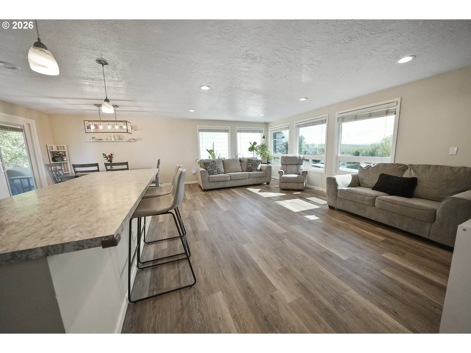Panoramic mountain views and generous living space make this four-bedroom, two-bathroom home with flex space a standout! Step into an entryway with vaulted ceilings, leading to the primary suite with a remodeled ensuite bath, along with two additional bedrooms. The living room offers an open feel that is perfect for entertaining, while the remodeled kitchen flows into the dining area and includes extra island seating for quick meals and snacks. Downstairs, the family room and flex space are ideal for a workout area, playroom, or entertainment space. The large fourth bedroom downstairs is perfect for guests or offers the privacy needed for working from home. Additional upgrades include newer windows throughout, owned solar panels, recessed lighting upstairs, and a newer HVAC system and furnace. With fresh paint and thoughtful updates throughout, this home is move-in ready. You’ll be just seconds from St. Anthony Hospital, walking trails, and Rice Park. This location is prime!
