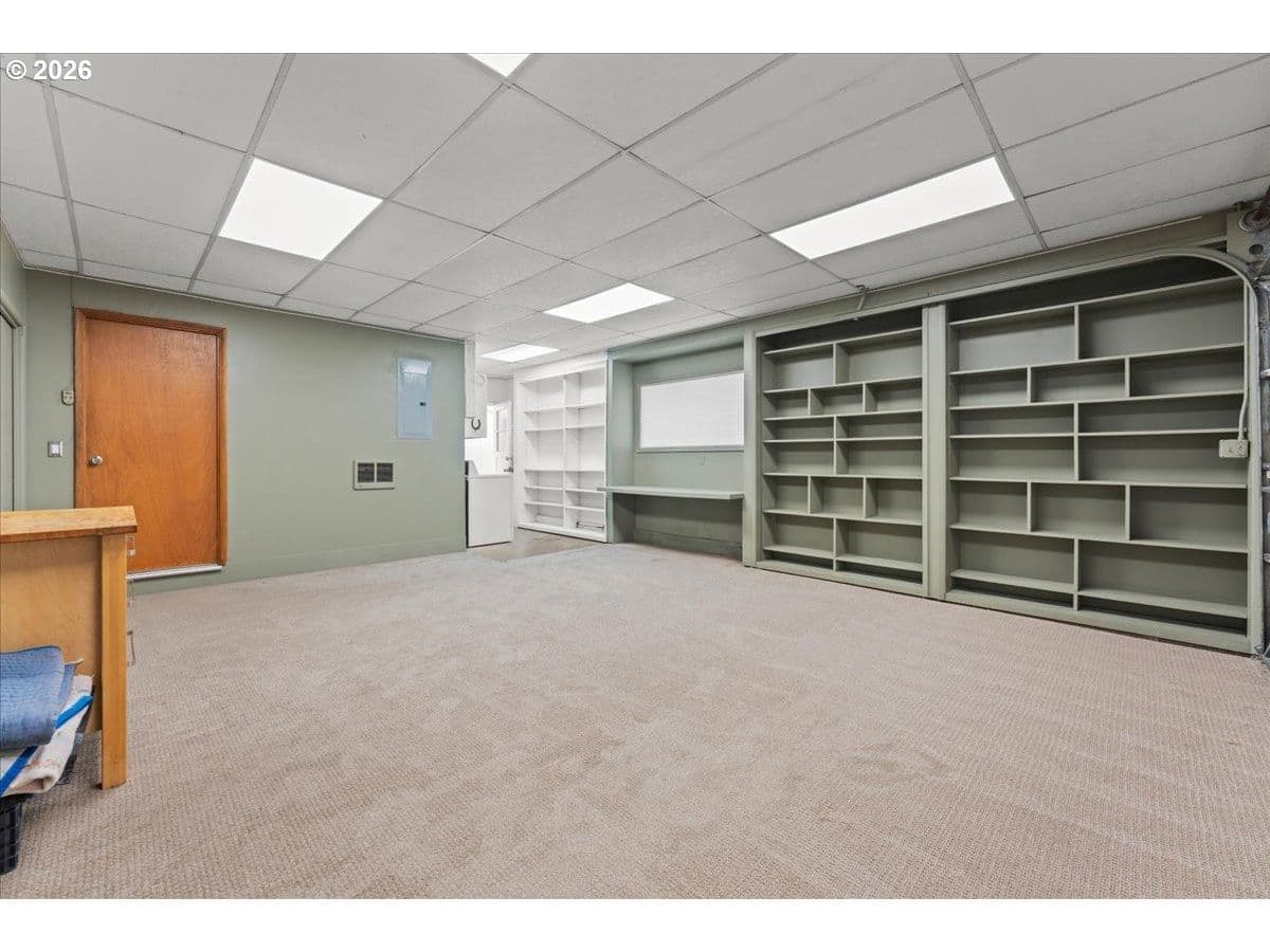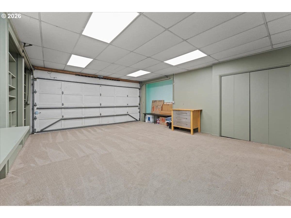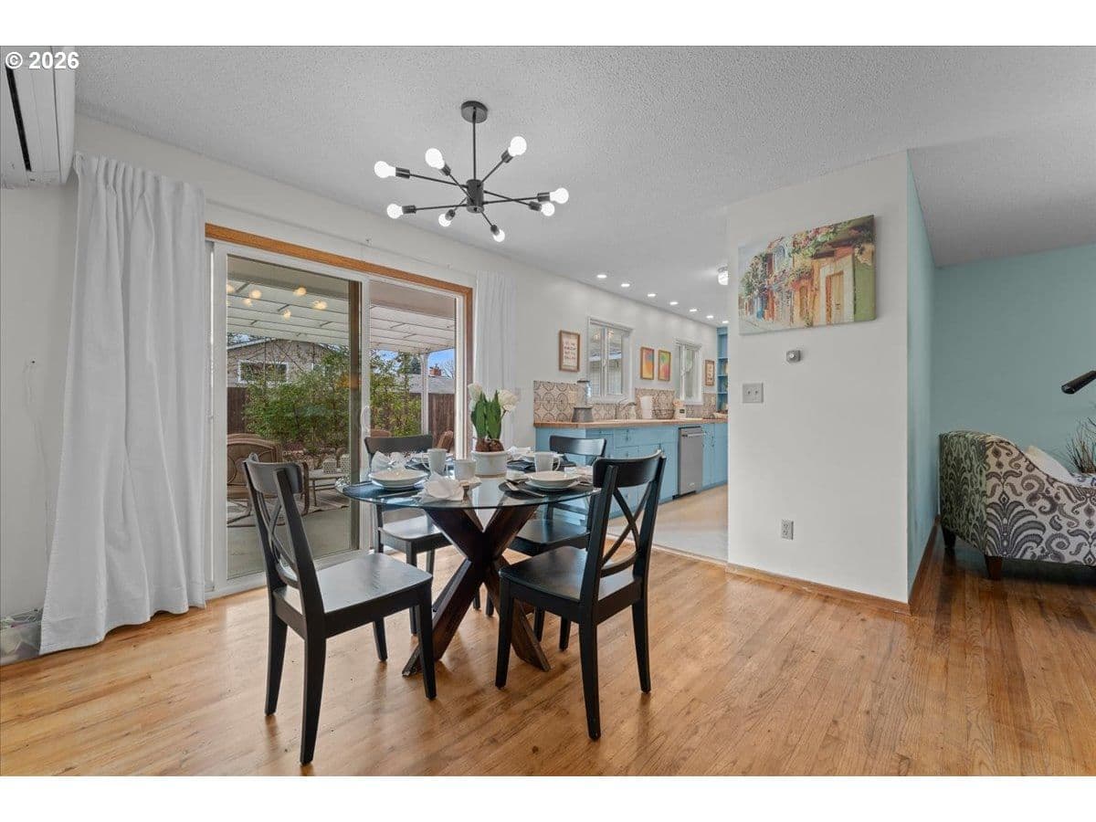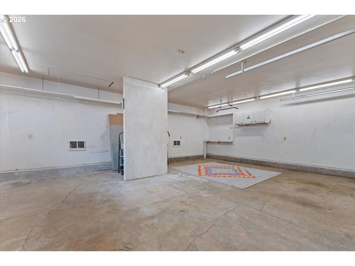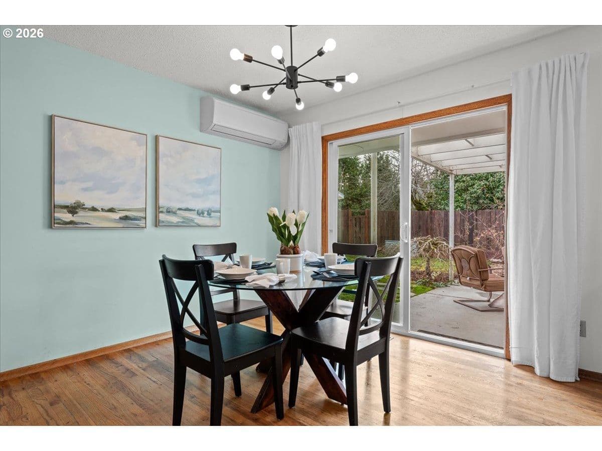 The ideal home for a car enthusiast, maker, or anyone needing serious workspace — paired with the comfort of a bright mid-century modern retreat. Inside, you’ll find hardwood floors, a brick fireplace, remodeled kitchen and bathrooms, a new roof and gutters, and comfortable room sizes throughout. The property offers two garages: a traditional attached two-car garage with built-ins, plus a standout oversized detached garage built for real projects. This impressive shop space includes hard-piped compressed air lines, 240V power, and its own separately metered commercial electrical service — perfect for restoration work, hobby builds, or a home-based workspace.The backyard feels like a private oasis, with a covered patio, extra seating space, and a newly renovated home office with large windows overlooking a fountain where birds love to gather. Raised garden beds and established fruiting plants add color, life, and seasonal beauty.RV parking provides additional flexibility. Conveniently located by David Douglas High School and just a short few minutes to nearby parks. [Home Energy Score = 8. HES Report at https://rpt.greenbuildingregistry.com/hes/OR10244135] The beautiful detached garage offers hard-piped comressed air lines, 240V power, and it's own separately metered commercial electrical service.