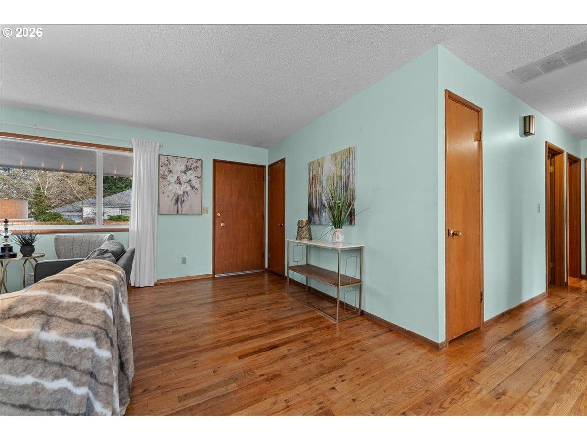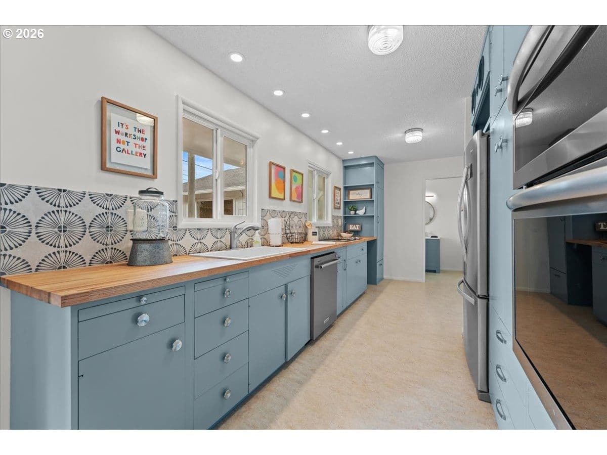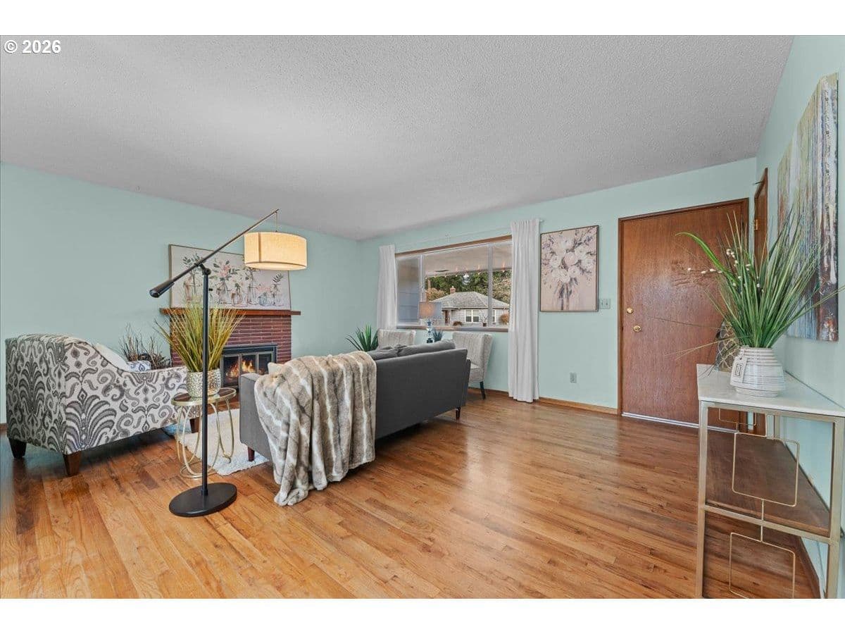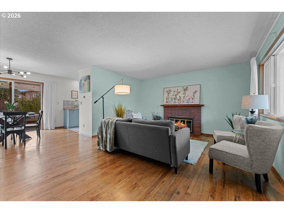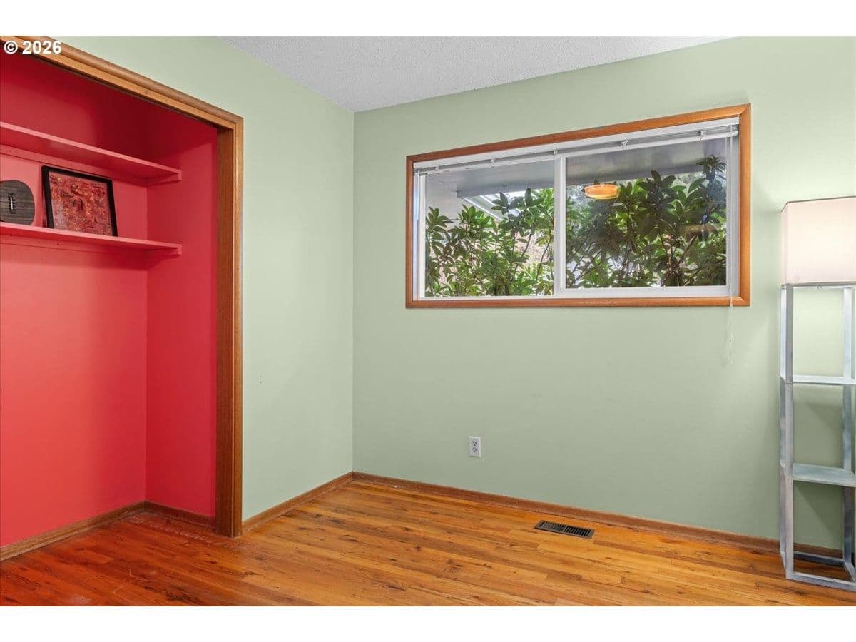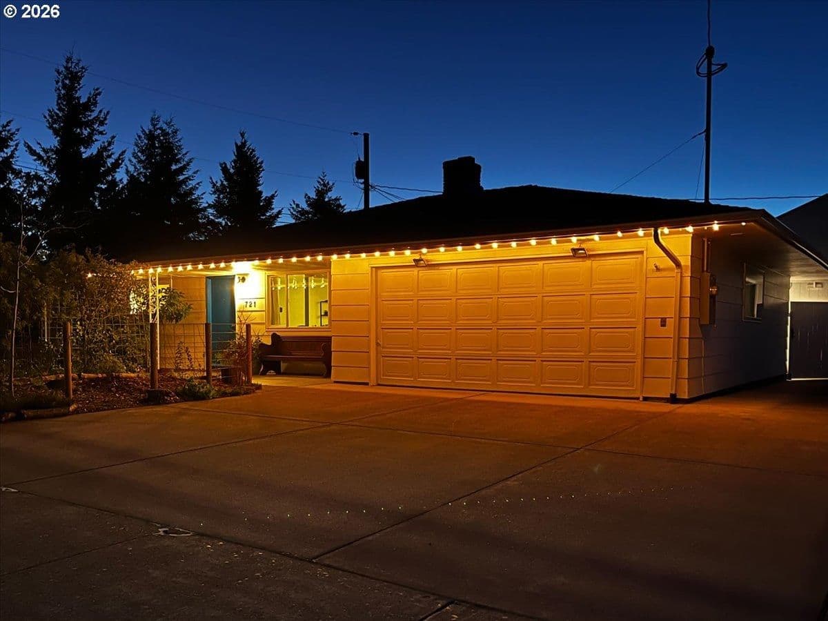 The ideal home for a car enthusiast, maker, or anyone needing serious workspace — paired with the comfort of a bright mid-century modern retreat. Inside, you’ll find hardwood floors, a brick fireplace, remodeled kitchen and bathrooms, a new roof and gutters, and comfortable room sizes throughout. The property offers two garages: a traditional attached two-car garage with built-ins, plus a standout oversized detached garage built for real projects. This impressive shop space includes hard-piped compressed air lines, 240V power, and its own separately metered commercial electrical service — perfect for restoration work, hobby builds, or a home-based workspace.The backyard feels like a private oasis, with a covered patio, extra seating space, and a newly renovated home office with large windows overlooking a fountain where birds love to gather. Raised garden beds and established fruiting plants add color, life, and seasonal beauty.RV parking provides additional flexibility. Conveniently located by David Douglas High School and just a short few minutes to nearby parks. [Home Energy Score = 8. HES Report at https://rpt.greenbuildingregistry.com/hes/OR10244135] The beautiful detached garage offers hard-piped comressed air lines, 240V power, and it's own separately metered commercial electrical service.