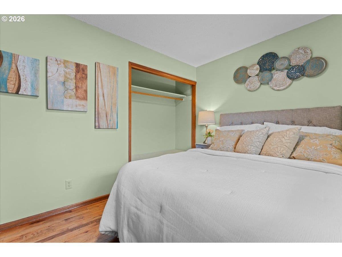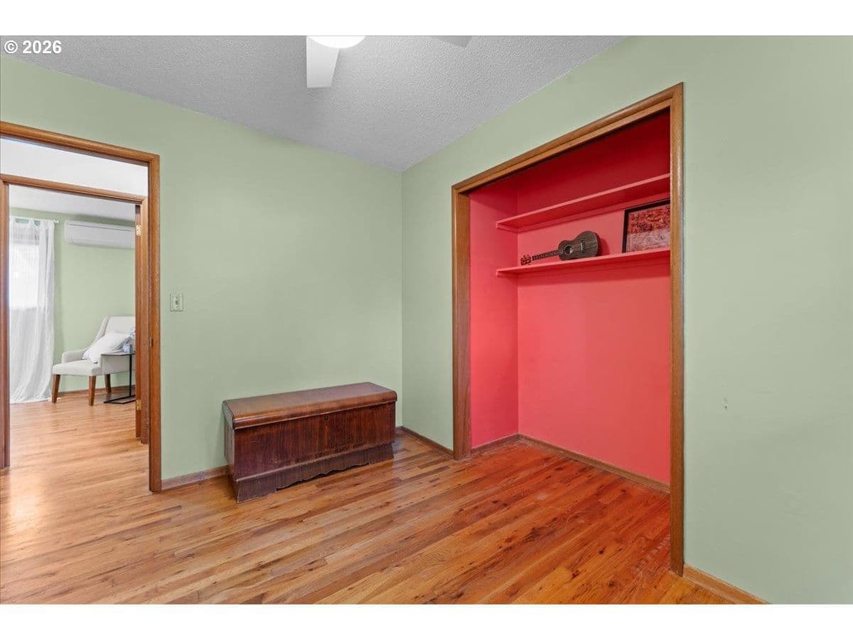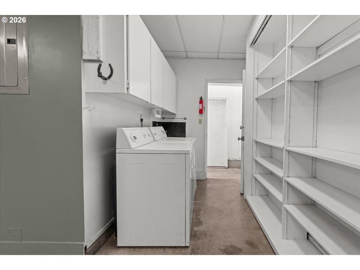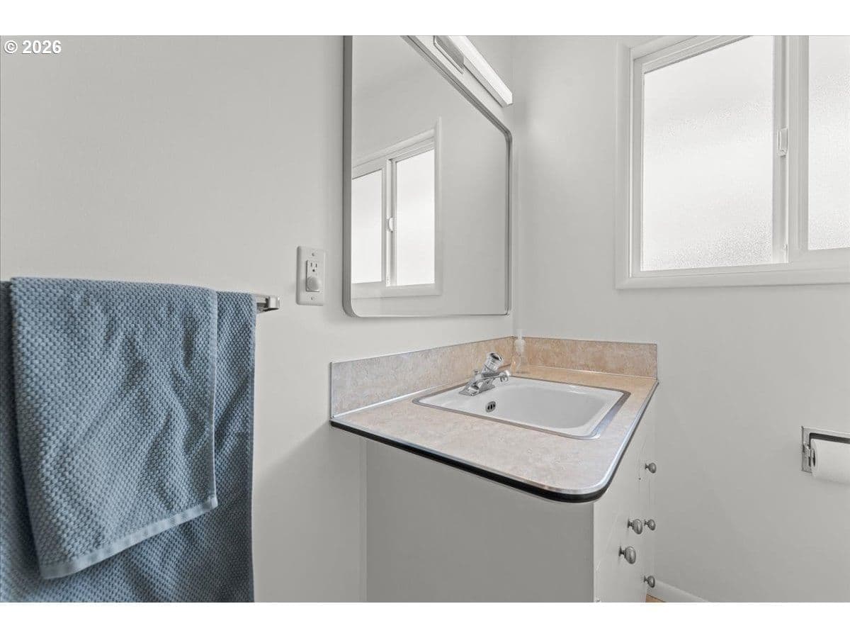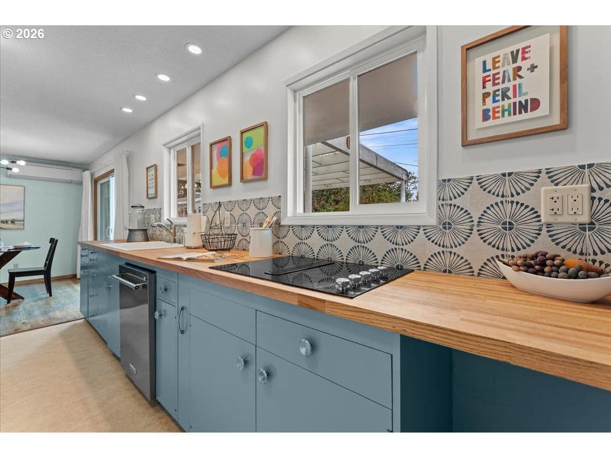 The ideal home for a car enthusiast, maker, or anyone needing serious workspace — paired with the comfort of a bright mid-century modern retreat. Inside, you’ll find hardwood floors, a brick fireplace, remodeled kitchen and bathrooms, a new roof and gutters, and comfortable room sizes throughout. The property offers two garages: a traditional attached two-car garage with built-ins, plus a standout oversized detached garage built for real projects. This impressive shop space includes hard-piped compressed air lines, 240V power, and its own separately metered commercial electrical service — perfect for restoration work, hobby builds, or a home-based workspace.The backyard feels like a private oasis, with a covered patio, extra seating space, and a newly renovated home office with large windows overlooking a fountain where birds love to gather. Raised garden beds and established fruiting plants add color, life, and seasonal beauty.RV parking provides additional flexibility. Conveniently located by David Douglas High School and just a short few minutes to nearby parks. [Home Energy Score = 8. HES Report at https://rpt.greenbuildingregistry.com/hes/OR10244135] The beautiful detached garage offers hard-piped comressed air lines, 240V power, and it's own separately metered commercial electrical service.