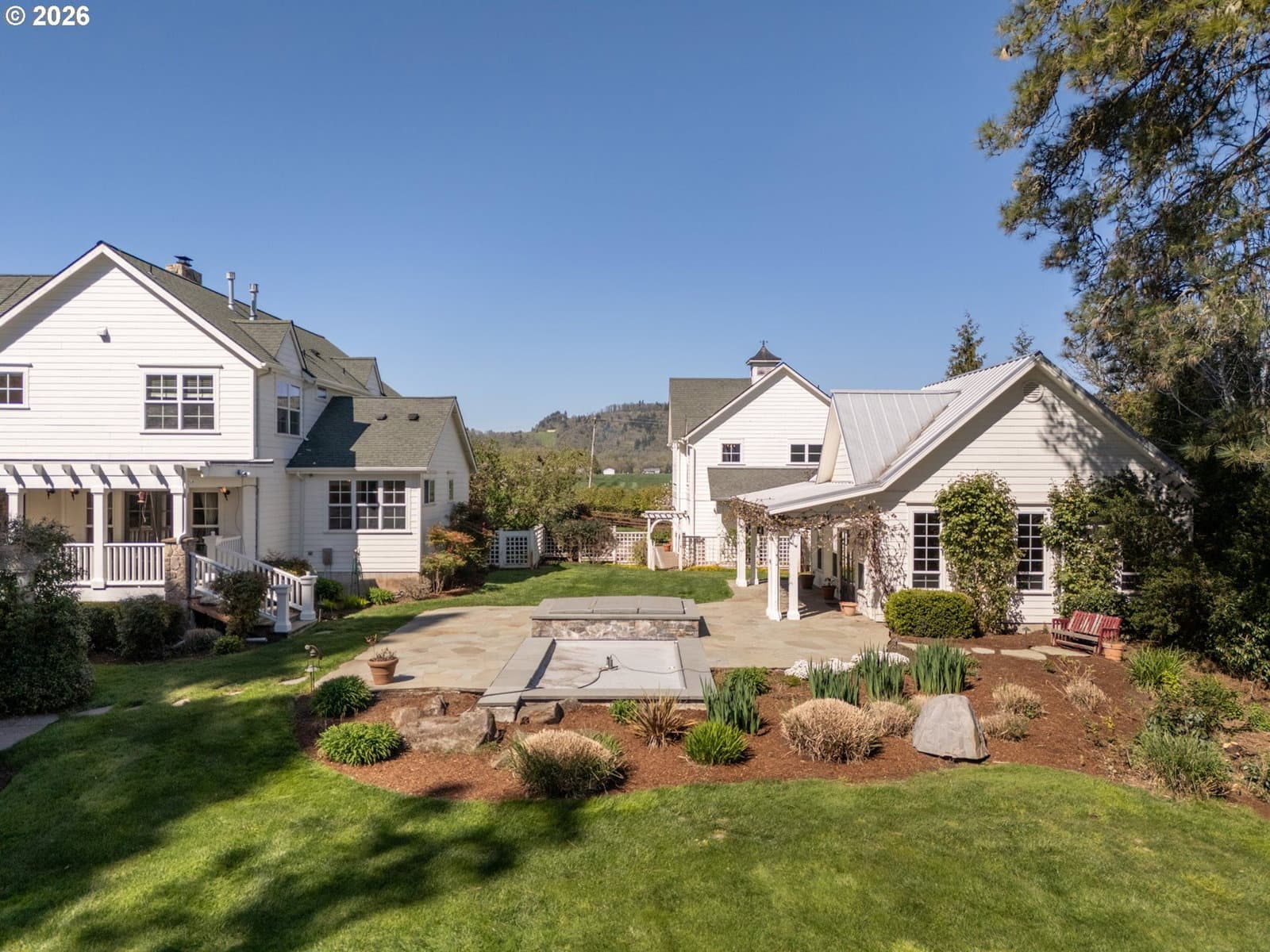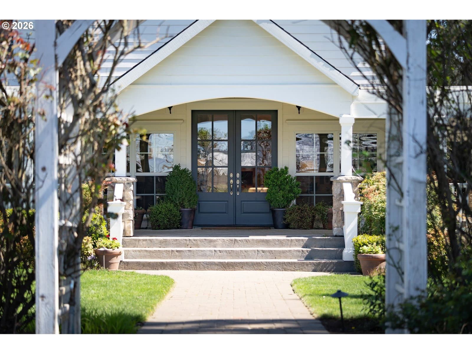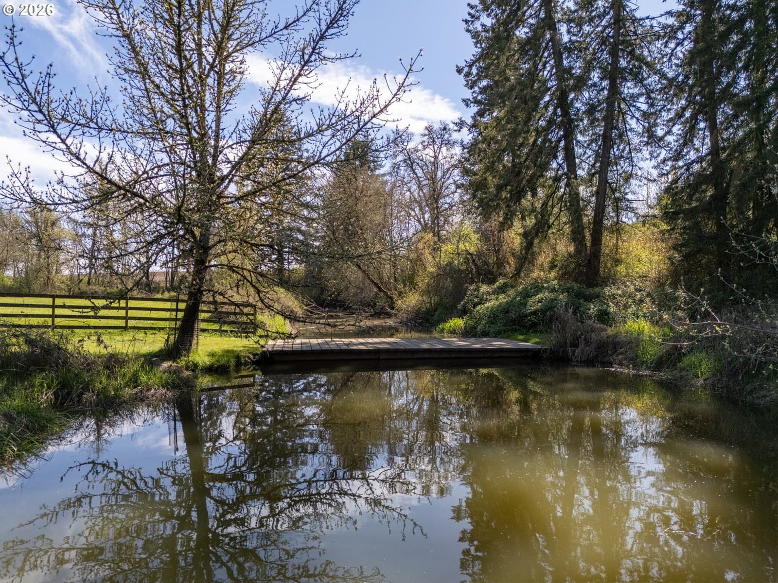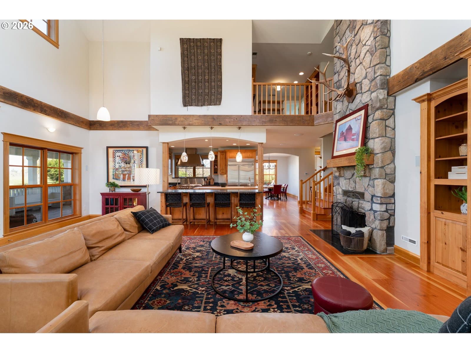 Set on 80 scenic acres in Oregon’s Willamette Valley, this exceptional estate offers a rare blend of luxury living, agricultural value, and privacy. With sweeping valley views, mature landscaping, and rolling pastures, the property is ideal as a private retreat, multigenerational residence, or legacy farm. Approximately 46 acres of prime grass crop ground provide strong agricultural utility and long-term investment potential in one of the region’s most sought-after farming areas. The 4469 sq ft remodeled farmhouse combines timeless craftsmanship with modern comfort, featuring fir wood floors, pine cabinetry, and a dramatic great room with 25-foot ceilings and a stone fireplace. French doors open to a 12-foot-wide covered porch, perfect for indoor-outdoor living. The main level includes a primary suite, laundry, and half bath, while upstairs offers three bedrooms, two bathrooms, and a built-in office. Designed for entertaining, the property includes a guest space with three-car garage, a pool house, and a resort-style swim-jet pool and spa, all positioned to take in the natural surroundings. The land includes productive acreage currently shared with a local farmer, offering income potential and flexibility. Additional features include orchard trees with 100-year-old apple trees and a notable English walnut tree, water features, a bridge, fenced pastures, irrigated garden beds, a workshop with 220V power, and a chicken coop. With Robinson Reservoir, Ash Swale, and extensive hardscaping, the property reflects exceptional care and stewardship, an outstanding opportunity to own a premier Willamette Valley estate.