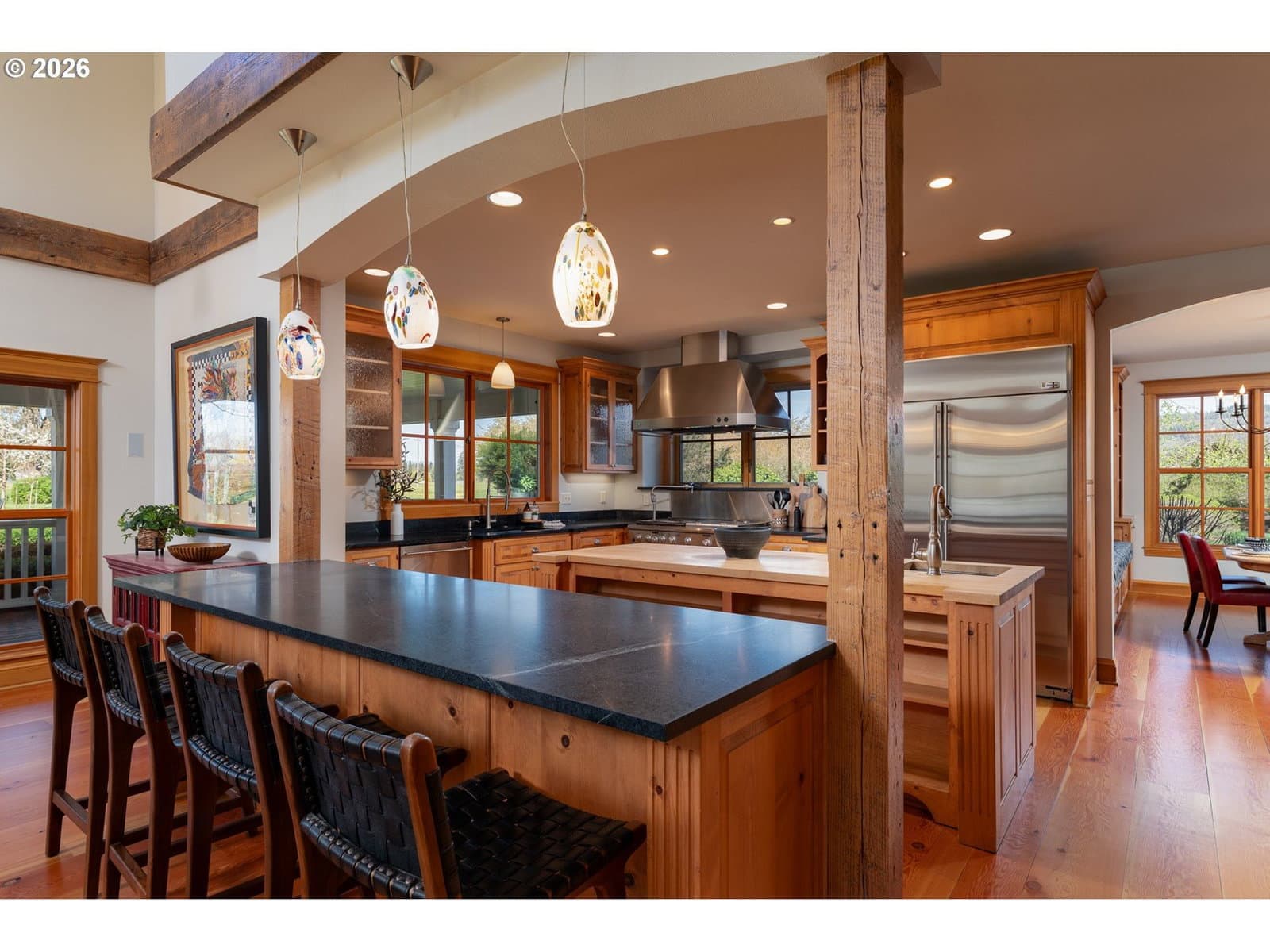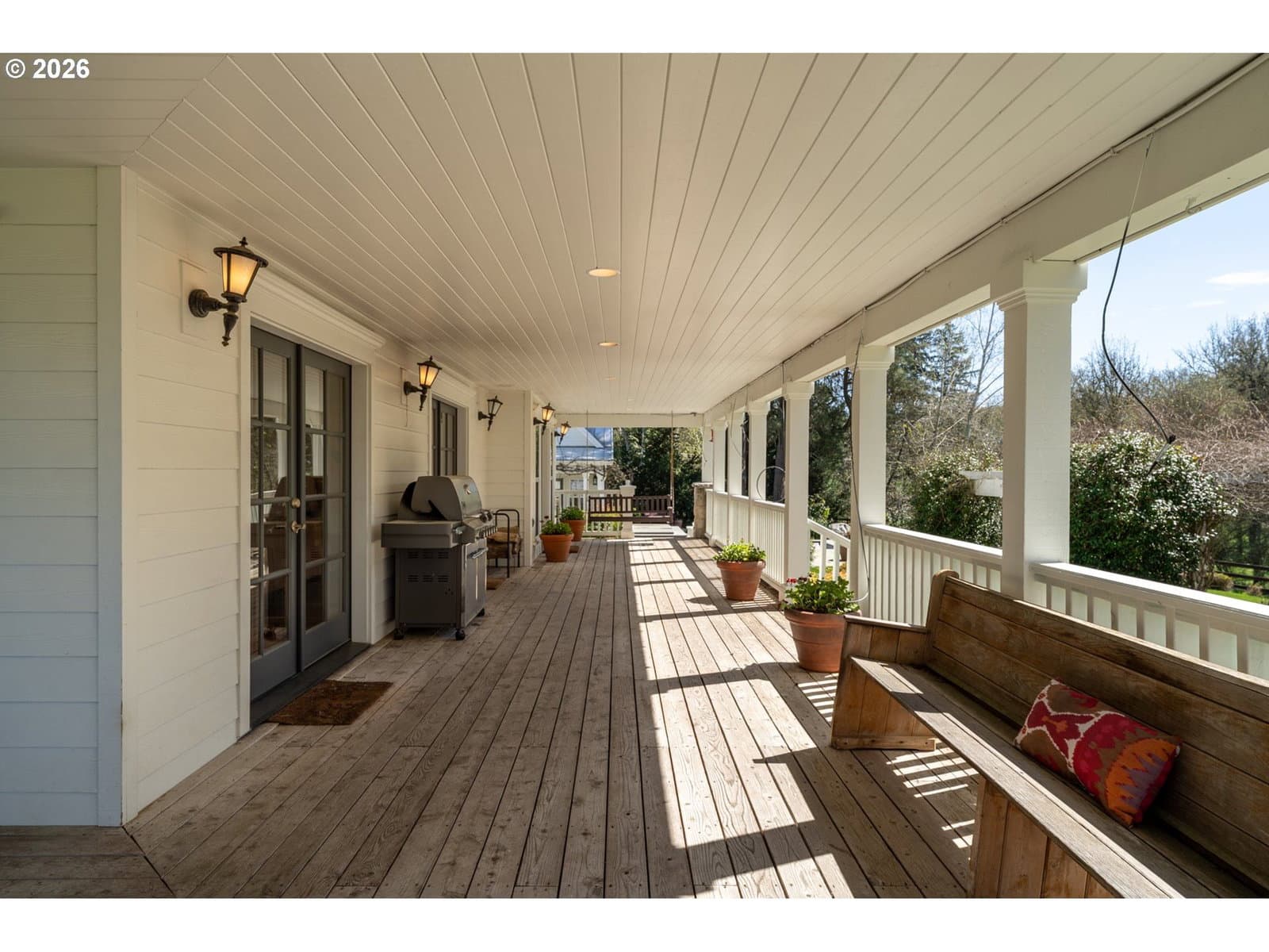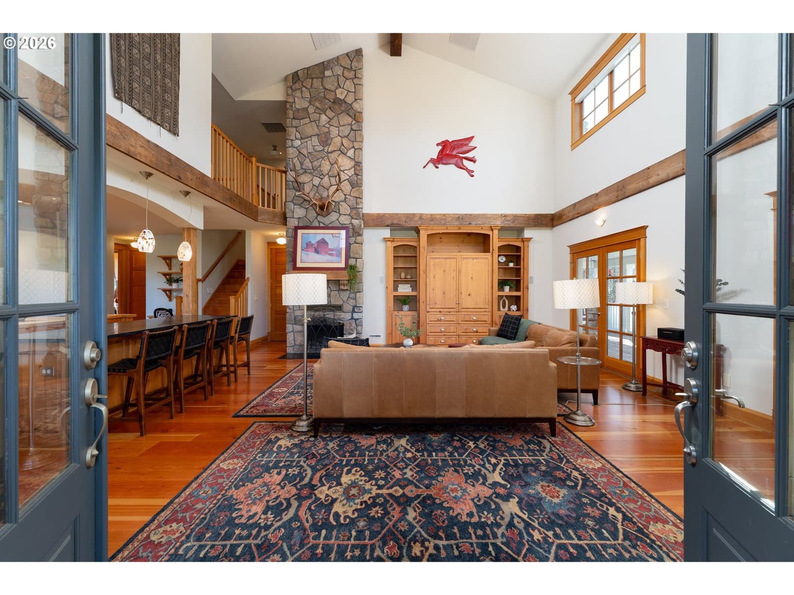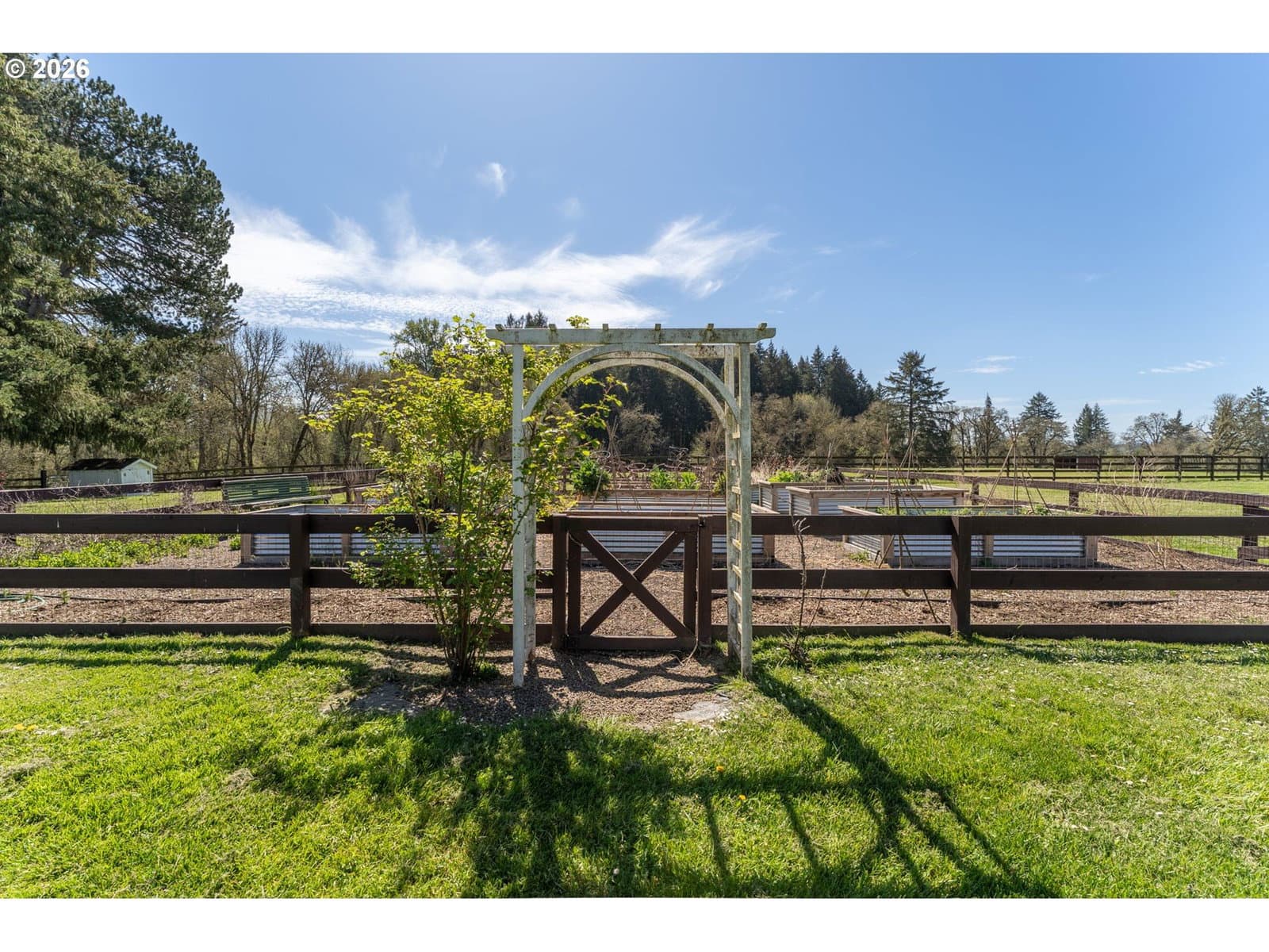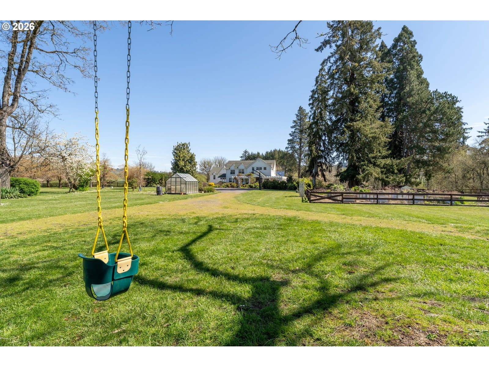 Set on 80 scenic acres in Oregon’s Willamette Valley, this exceptional estate offers a rare blend of luxury living, agricultural value, and privacy. With sweeping valley views, mature landscaping, and rolling pastures, the property is ideal as a private retreat, multigenerational residence, or legacy farm. Approximately 46 acres of prime grass crop ground provide strong agricultural utility and long-term investment potential in one of the region’s most sought-after farming areas. The 4469 sq ft remodeled farmhouse combines timeless craftsmanship with modern comfort, featuring fir wood floors, pine cabinetry, and a dramatic great room with 25-foot ceilings and a stone fireplace. French doors open to a 12-foot-wide covered porch, perfect for indoor-outdoor living. The main level includes a primary suite, laundry, and half bath, while upstairs offers three bedrooms, two bathrooms, and a built-in office. Designed for entertaining, the property includes a guest space with three-car garage, a pool house, and a resort-style swim-jet pool and spa, all positioned to take in the natural surroundings. The land includes productive acreage currently shared with a local farmer, offering income potential and flexibility. Additional features include orchard trees with 100-year-old apple trees and a notable English walnut tree, water features, a bridge, fenced pastures, irrigated garden beds, a workshop with 220V power, and a chicken coop. With Robinson Reservoir, Ash Swale, and extensive hardscaping, the property reflects exceptional care and stewardship, an outstanding opportunity to own a premier Willamette Valley estate.