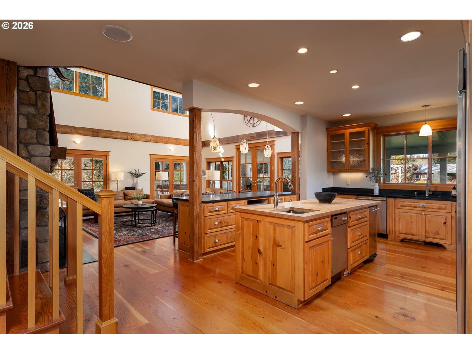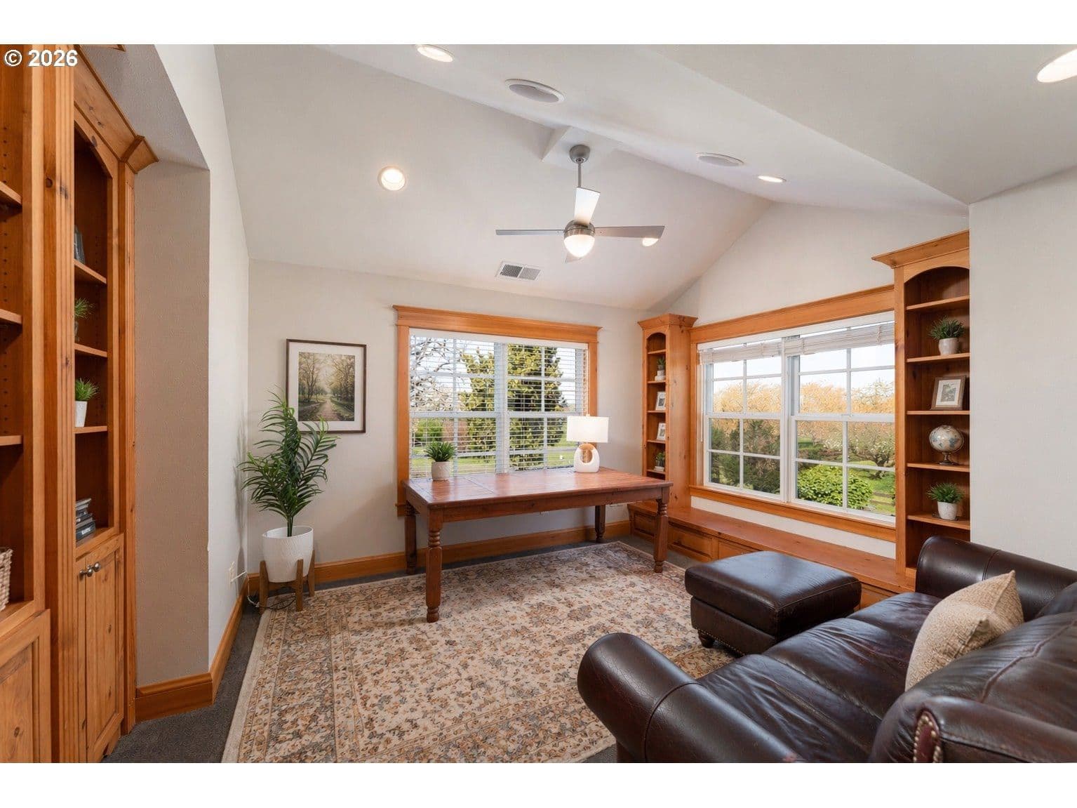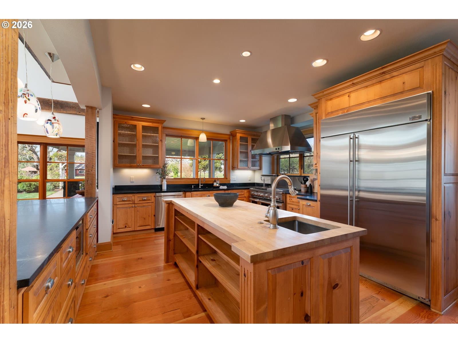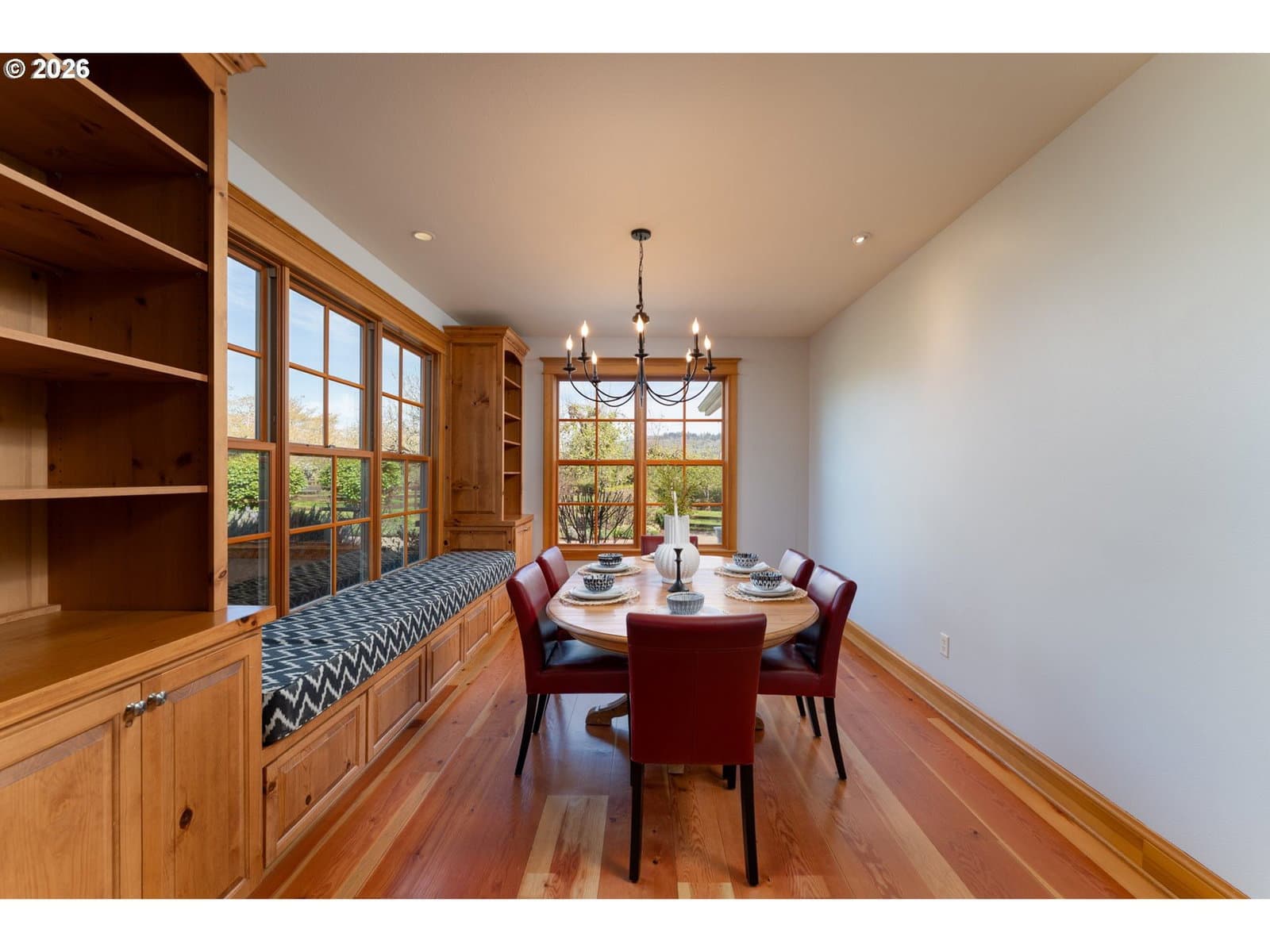 Set on 80 scenic acres in Oregon’s Willamette Valley, this exceptional estate offers a rare blend of luxury living, agricultural value, and privacy. With sweeping valley views, mature landscaping, and rolling pastures, the property is ideal as a private retreat, multigenerational residence, or legacy farm. Approximately 46 acres of prime grass crop ground provide strong agricultural utility and long-term investment potential in one of the region’s most sought-after farming areas. The 4469 sq ft remodeled farmhouse combines timeless craftsmanship with modern comfort, featuring fir wood floors, pine cabinetry, and a dramatic great room with 25-foot ceilings and a stone fireplace. French doors open to a 12-foot-wide covered porch, perfect for indoor-outdoor living. The main level includes a primary suite, laundry, and half bath, while upstairs offers three bedrooms, two bathrooms, and a built-in office. Designed for entertaining, the property includes a guest space with three-car garage, a pool house, and a resort-style swim-jet pool and spa, all positioned to take in the natural surroundings. The land includes productive acreage currently shared with a local farmer, offering income potential and flexibility. Additional features include orchard trees with 100-year-old apple trees and a notable English walnut tree, water features, a bridge, fenced pastures, irrigated garden beds, a workshop with 220V power, and a chicken coop. With Robinson Reservoir, Ash Swale, and extensive hardscaping, the property reflects exceptional care and stewardship, an outstanding opportunity to own a premier Willamette Valley estate.
